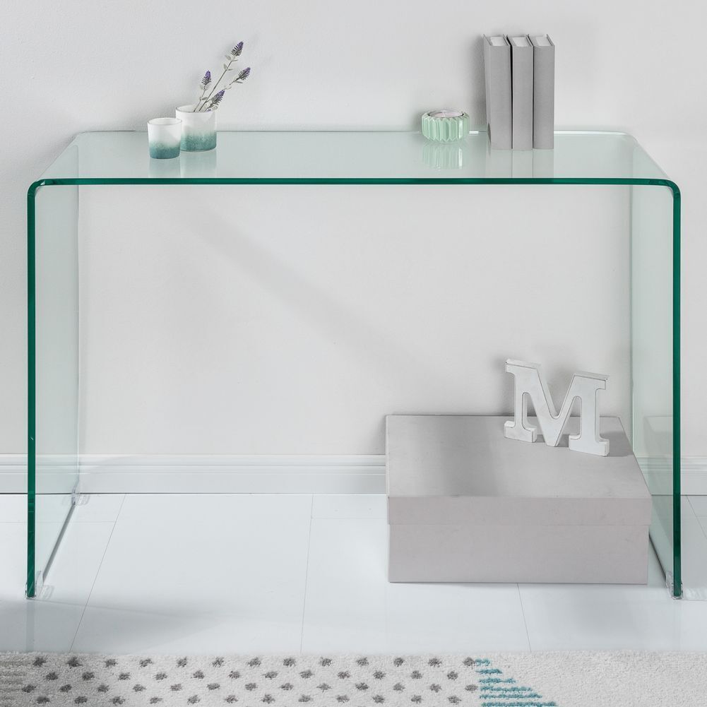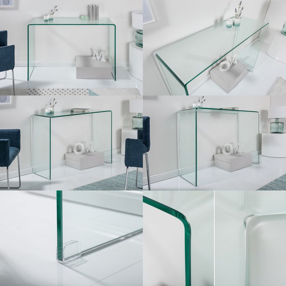 Lampen Sitzen Tische Möbel Accessoires Büro Bilder Navigation X Lampen Sitzen Tische Möbel Accessoires Büro Bilder cagü: Design Glas-Konsole MAYFAIR transparent aus einem Guss 100cm x 35cm Artikelmermale Farbe: Transparent grünlich Material: 12mm Sicherheitsglas Maße (ca.): 100cm x 35cm x 75cm (B x