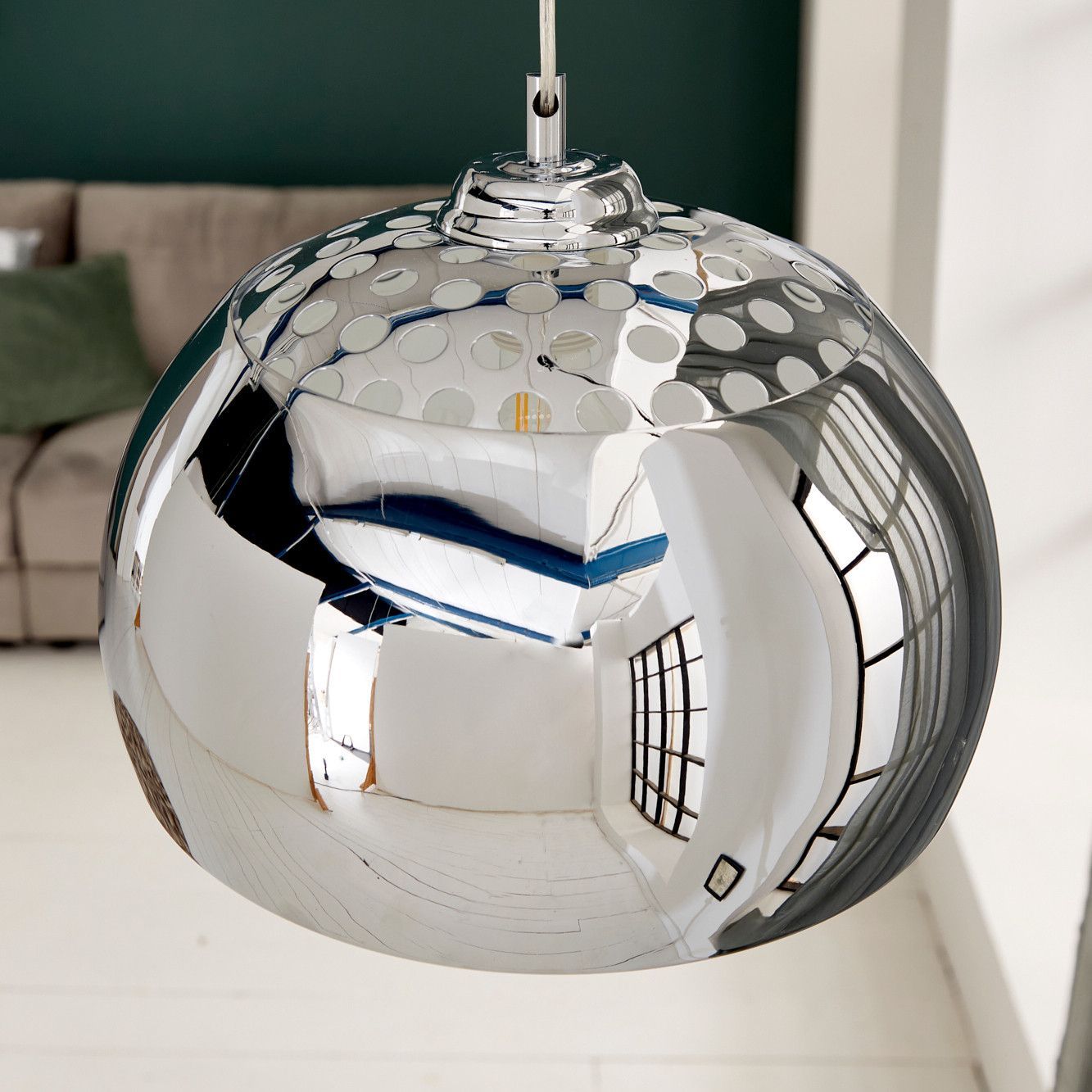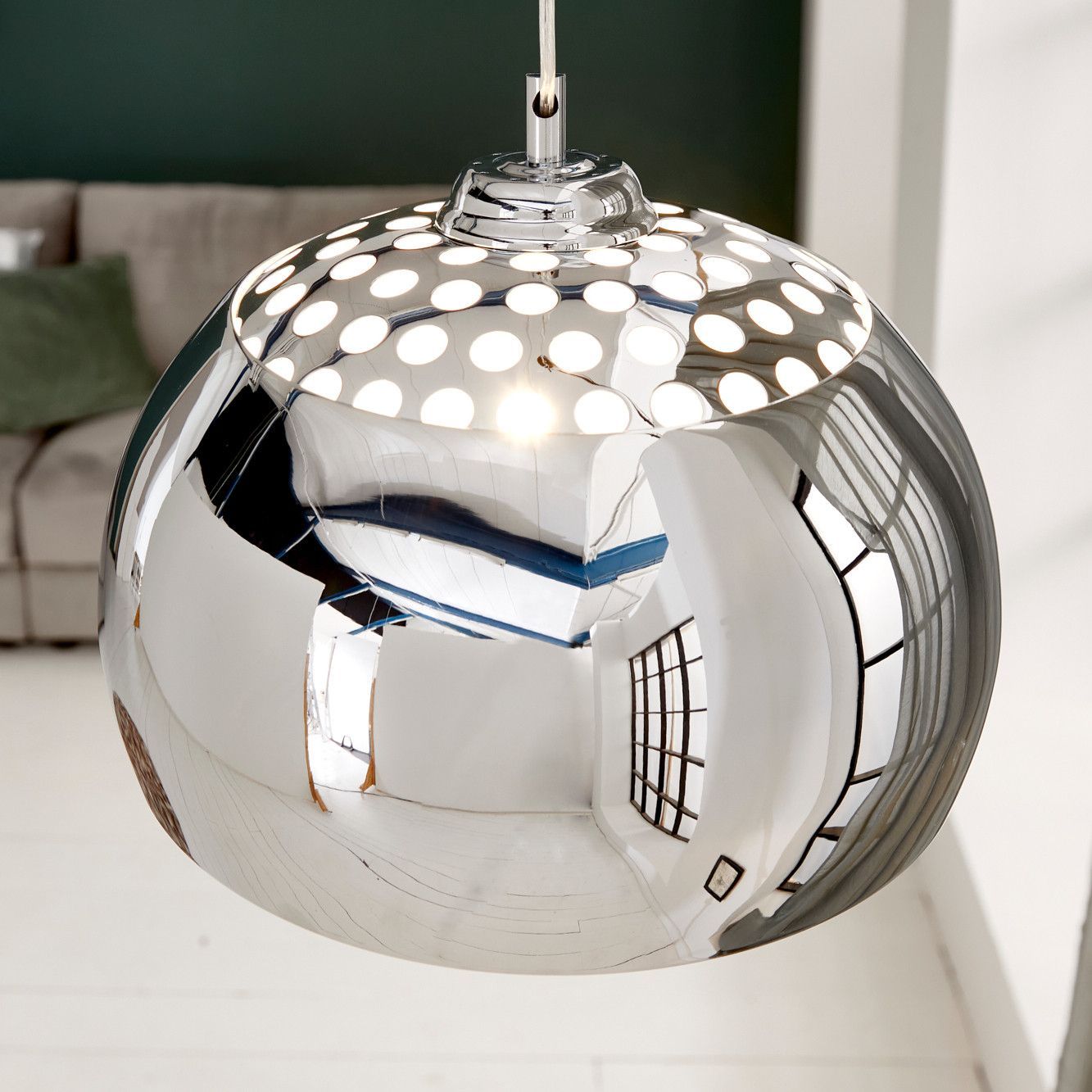 cagü: Design Hängelampe Hängeleuchte GLOBUS Chrom 34cm Ø Industrielampe