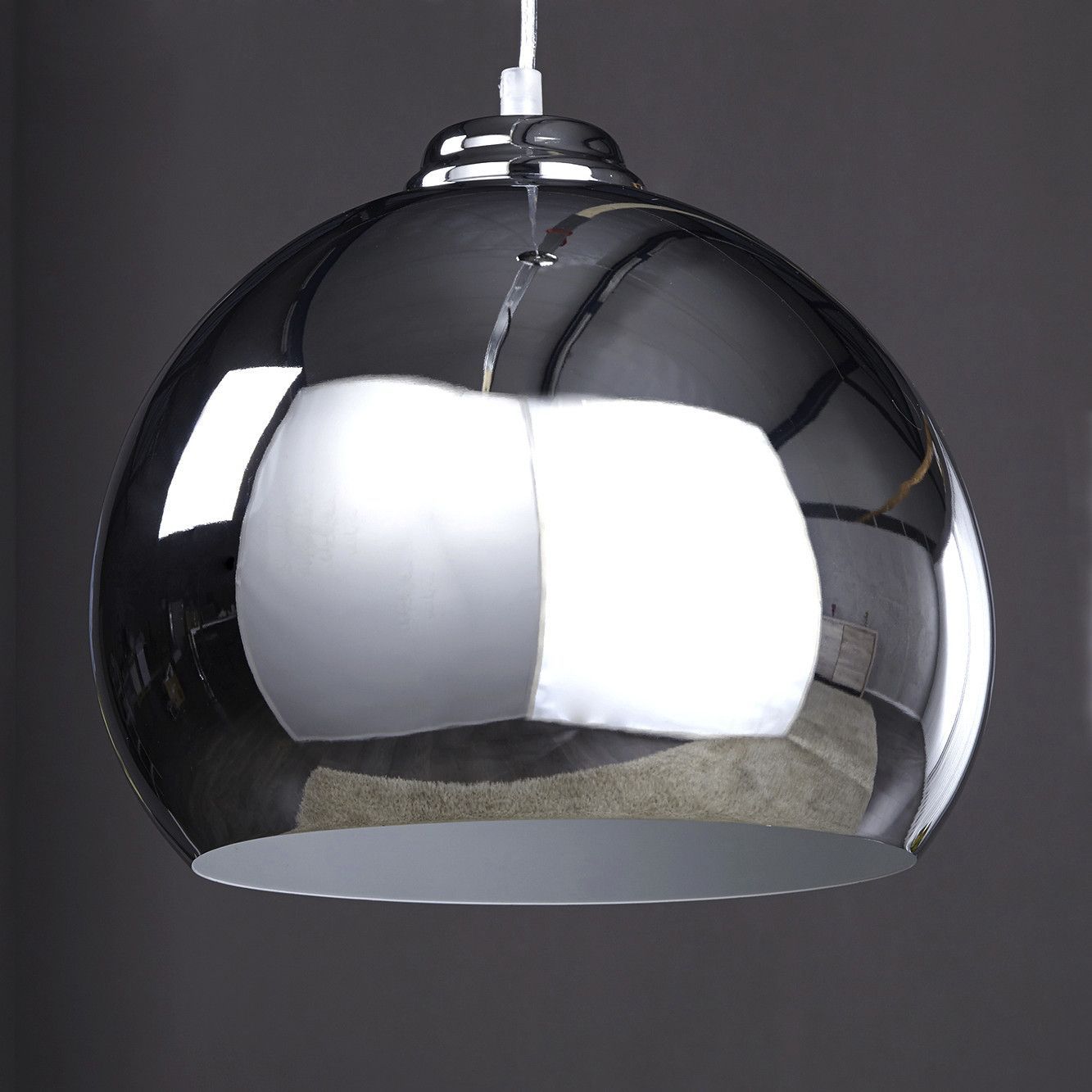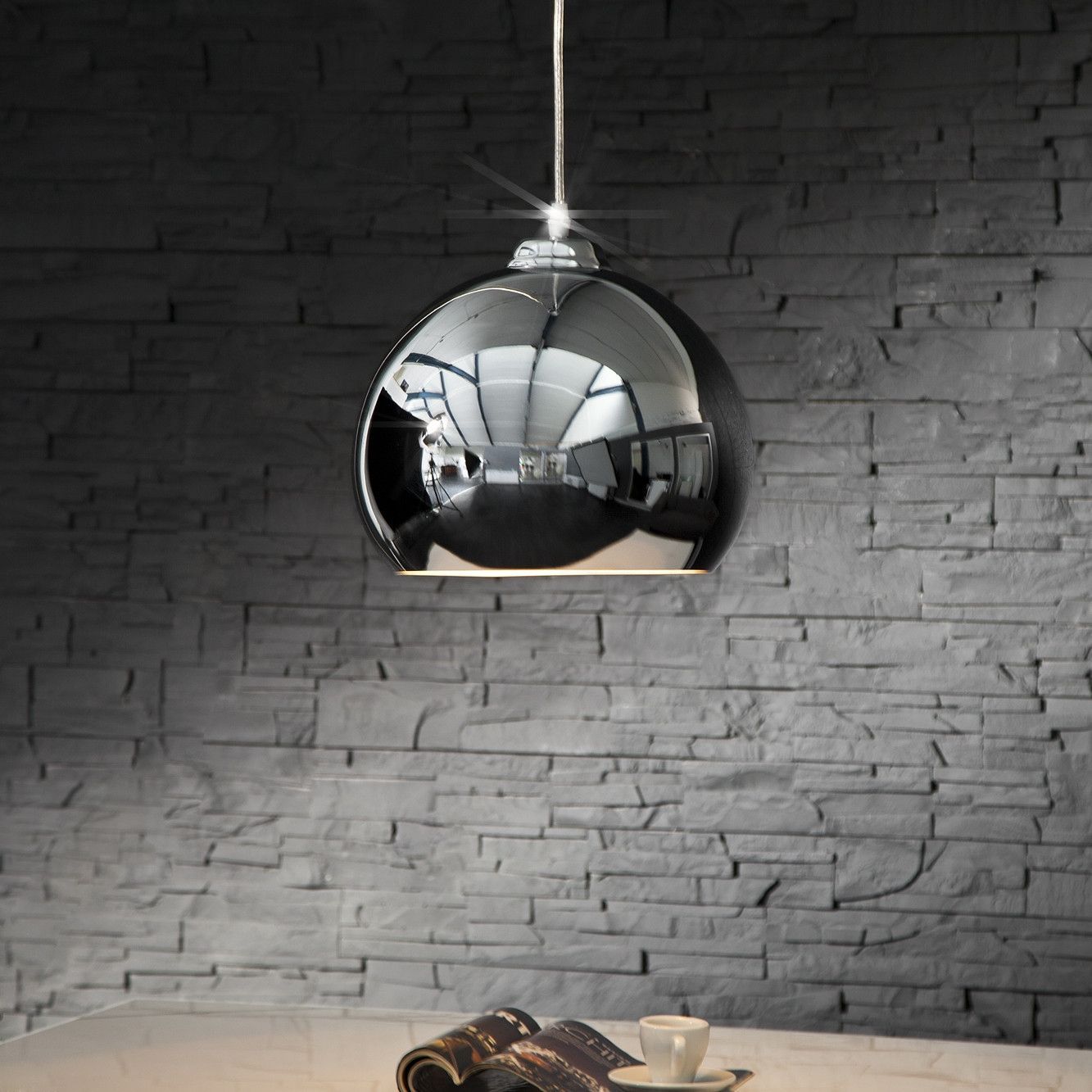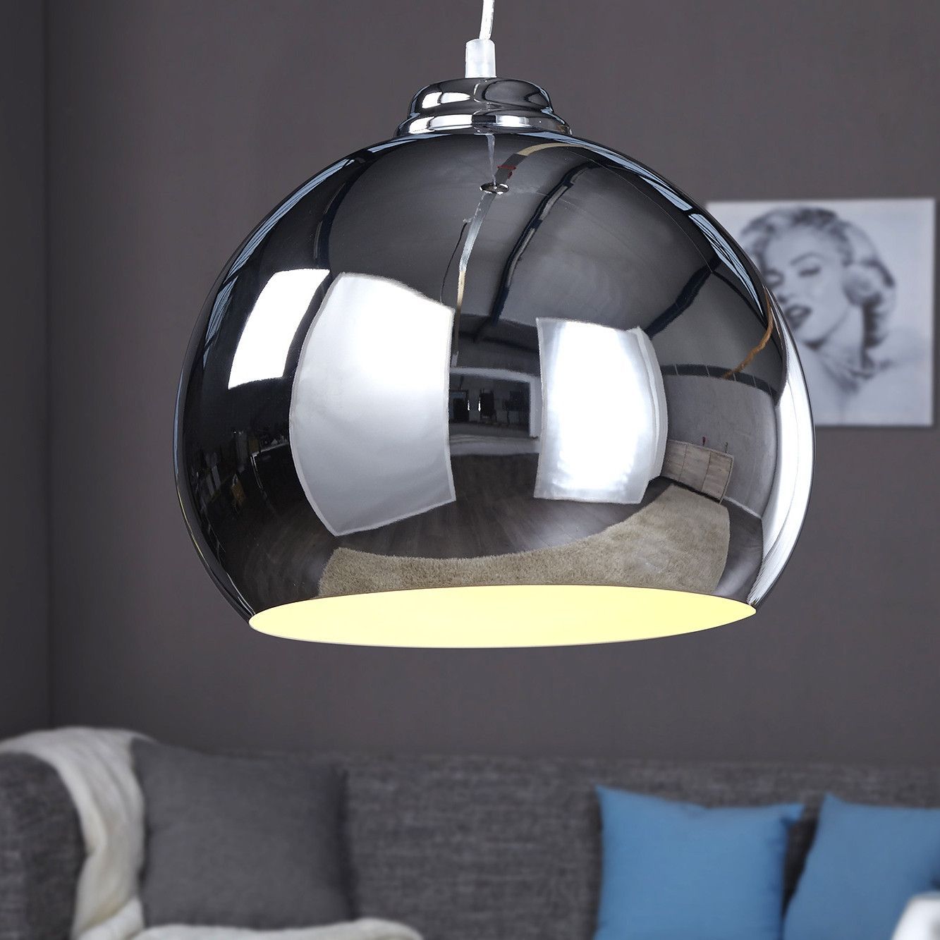 Lampen Sitzen Tische Möbel Accessoires Büro Bilder Navigation Lampen Sitzen Tische Möbel Accessoires Büro Bilder cagü: Design Hängelampe Pendelleuchte GLOBUS Kupfer 30cm Industrielampe Artikelmermale Farbe: Lampenschirm: Chromfarbig Material: Lampenschirm: Metall verchromt Maße (ca.): 30cm x 22cm (D