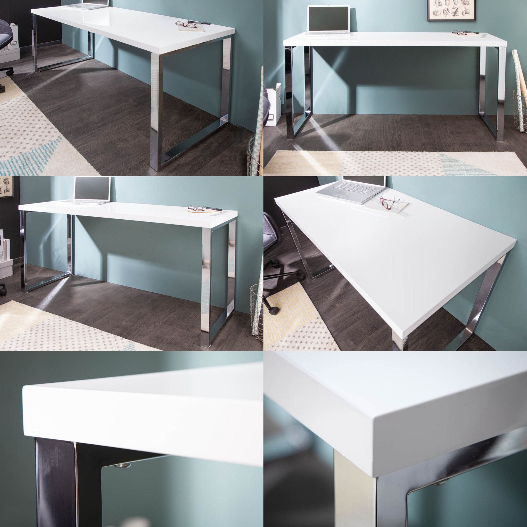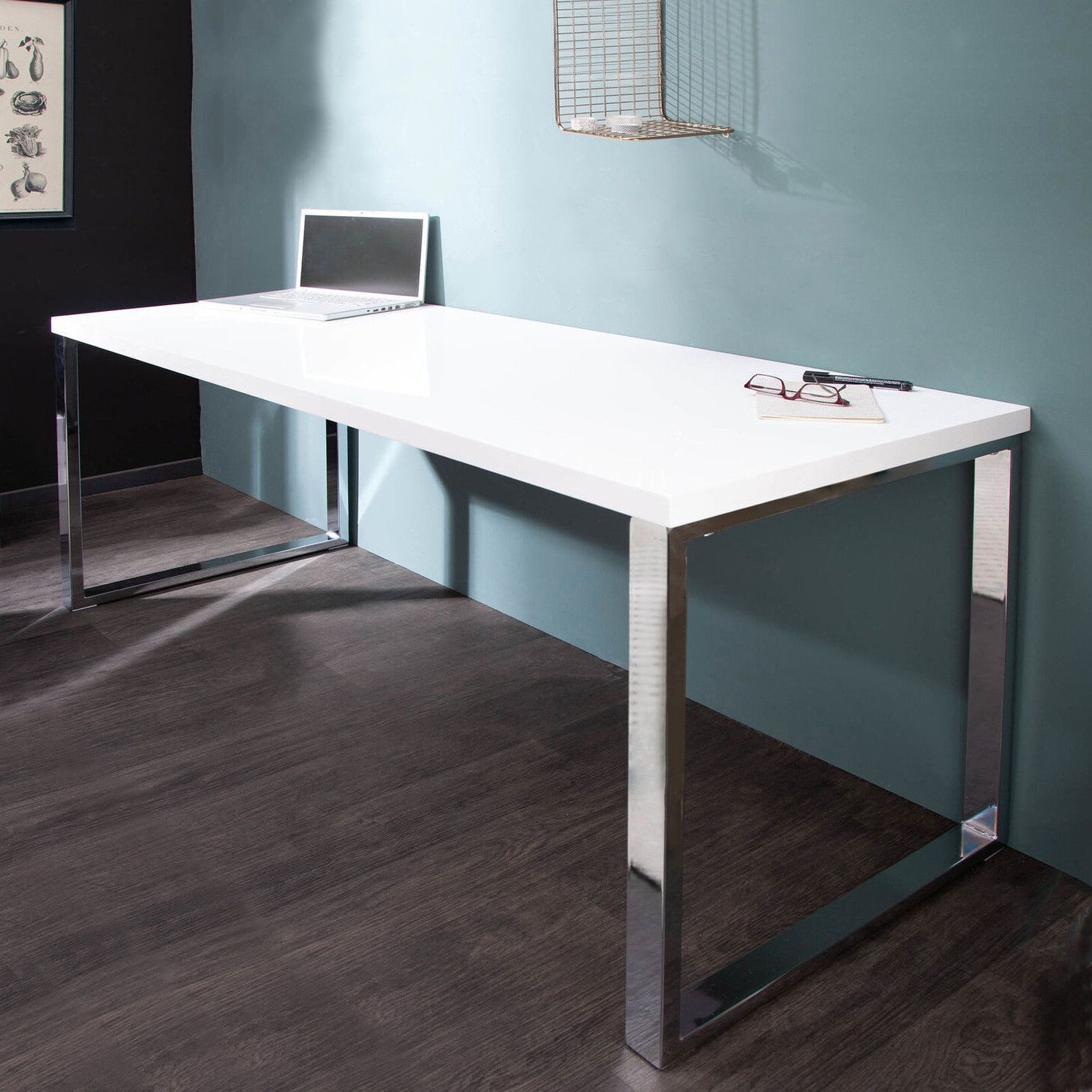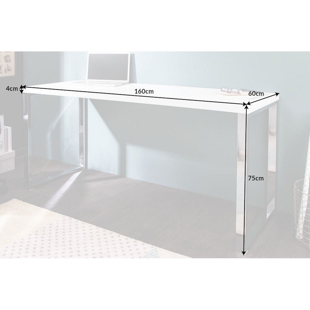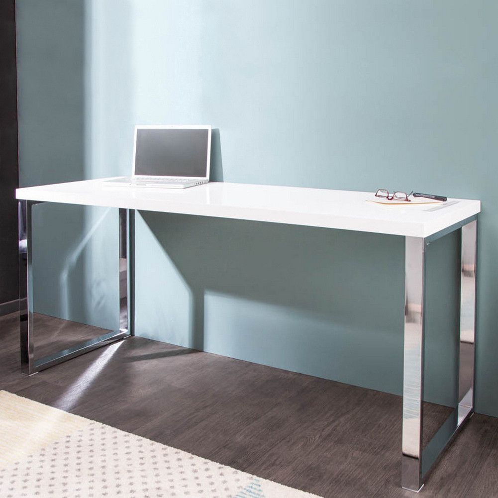 cagü: Design Retro Lounge Schreibtisch Laptoptisch (OXFORD] Weiss Hochglanz 160cm
