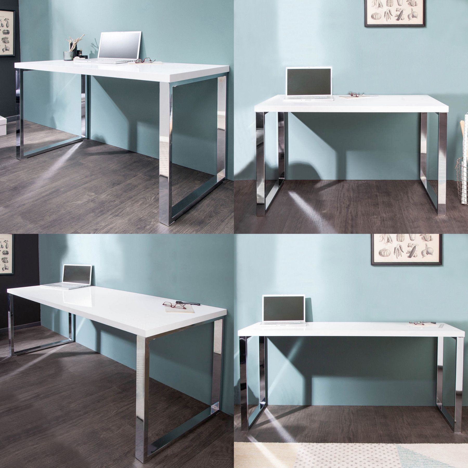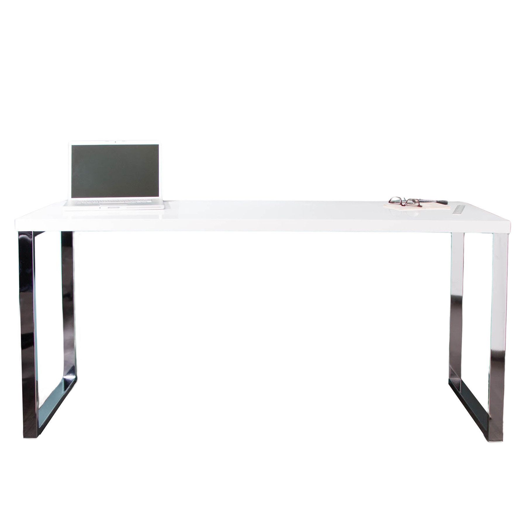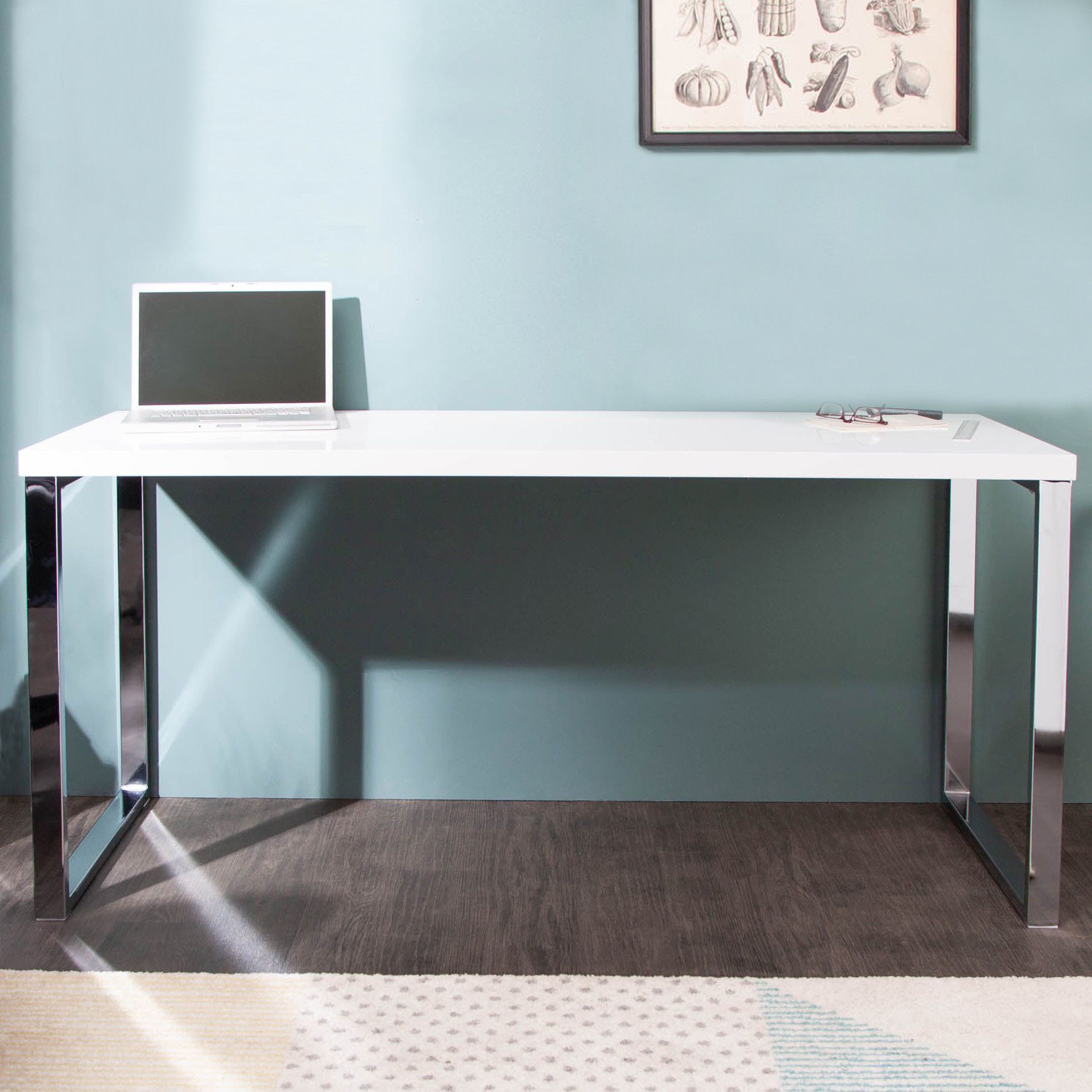 cagü: Design Retro Lounge Schreibtisch Laptoptisch (OXFORD] Weiss Hochglanz 160cm