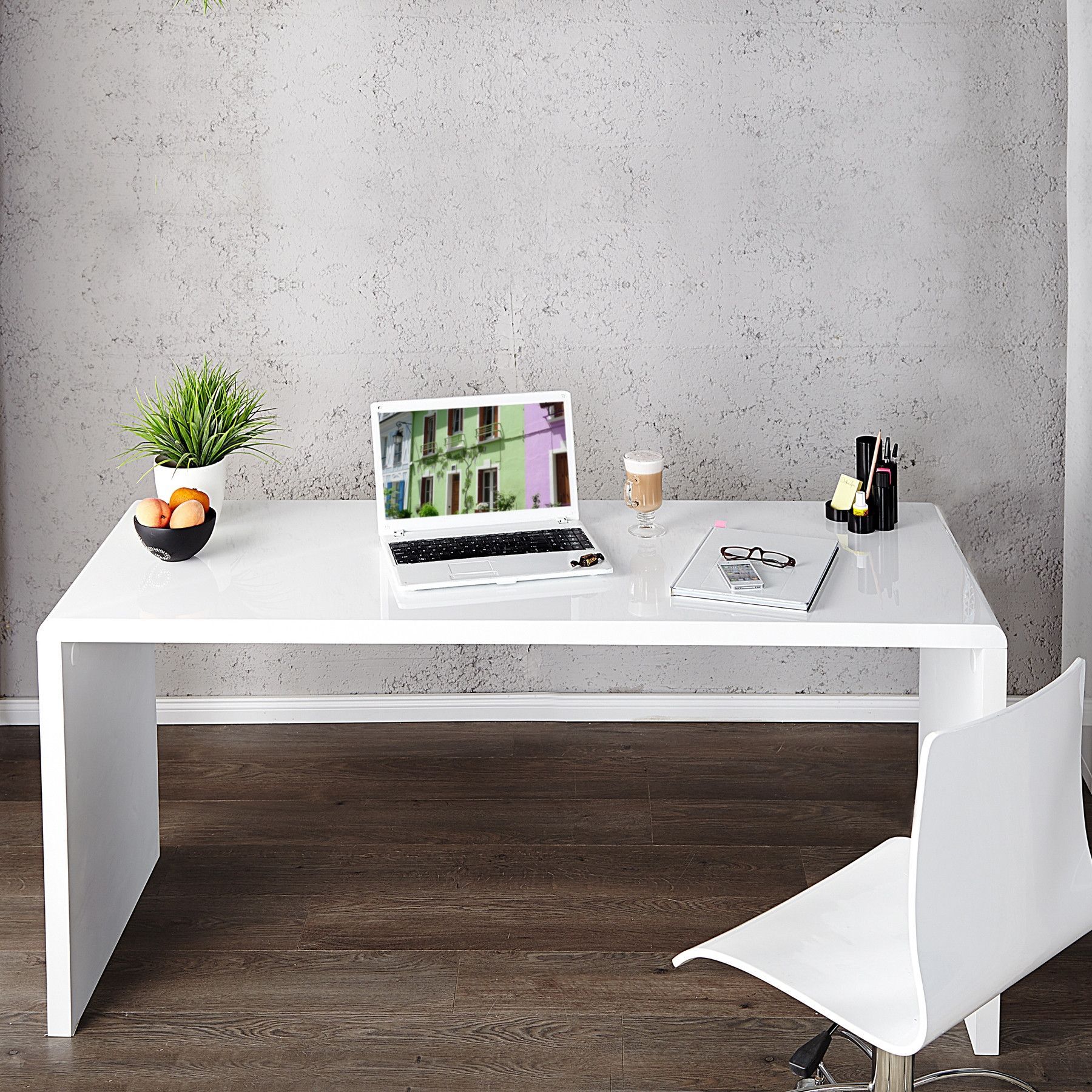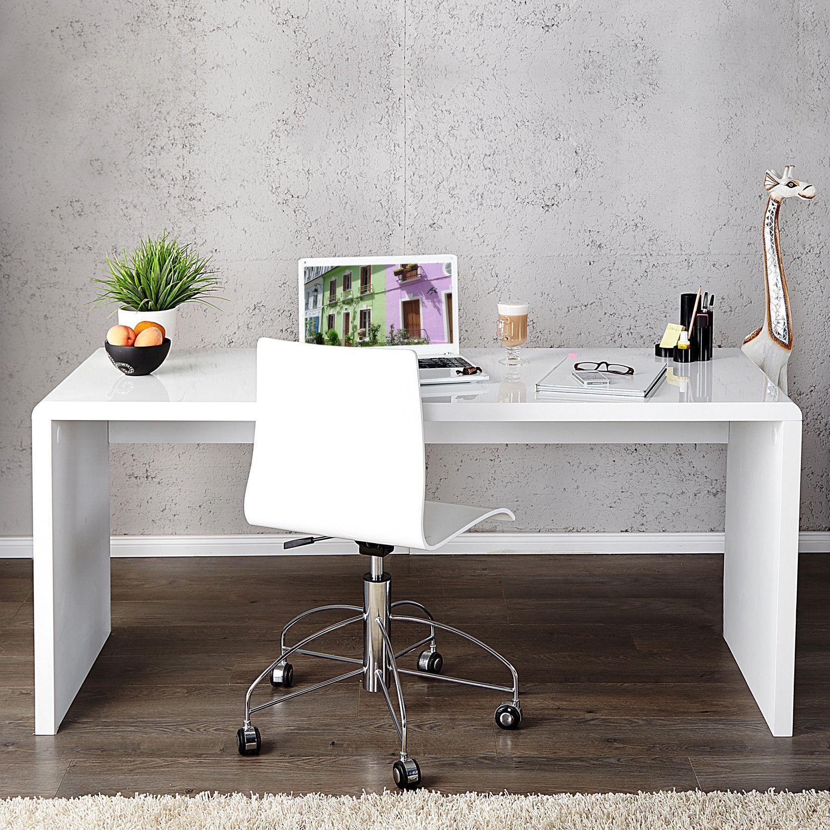cagü: Design Retro Lounge Schreibtisch Laptoptisch (SOHO] Weiss Hochglanz 120cm, NEU!