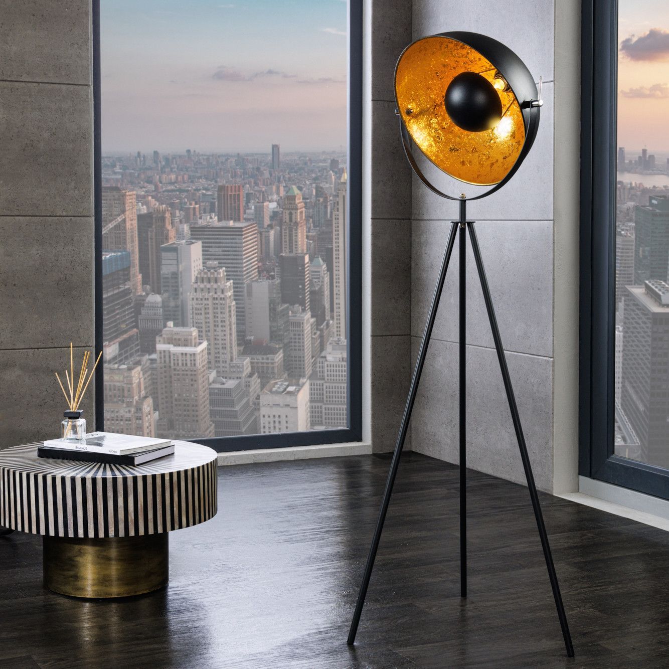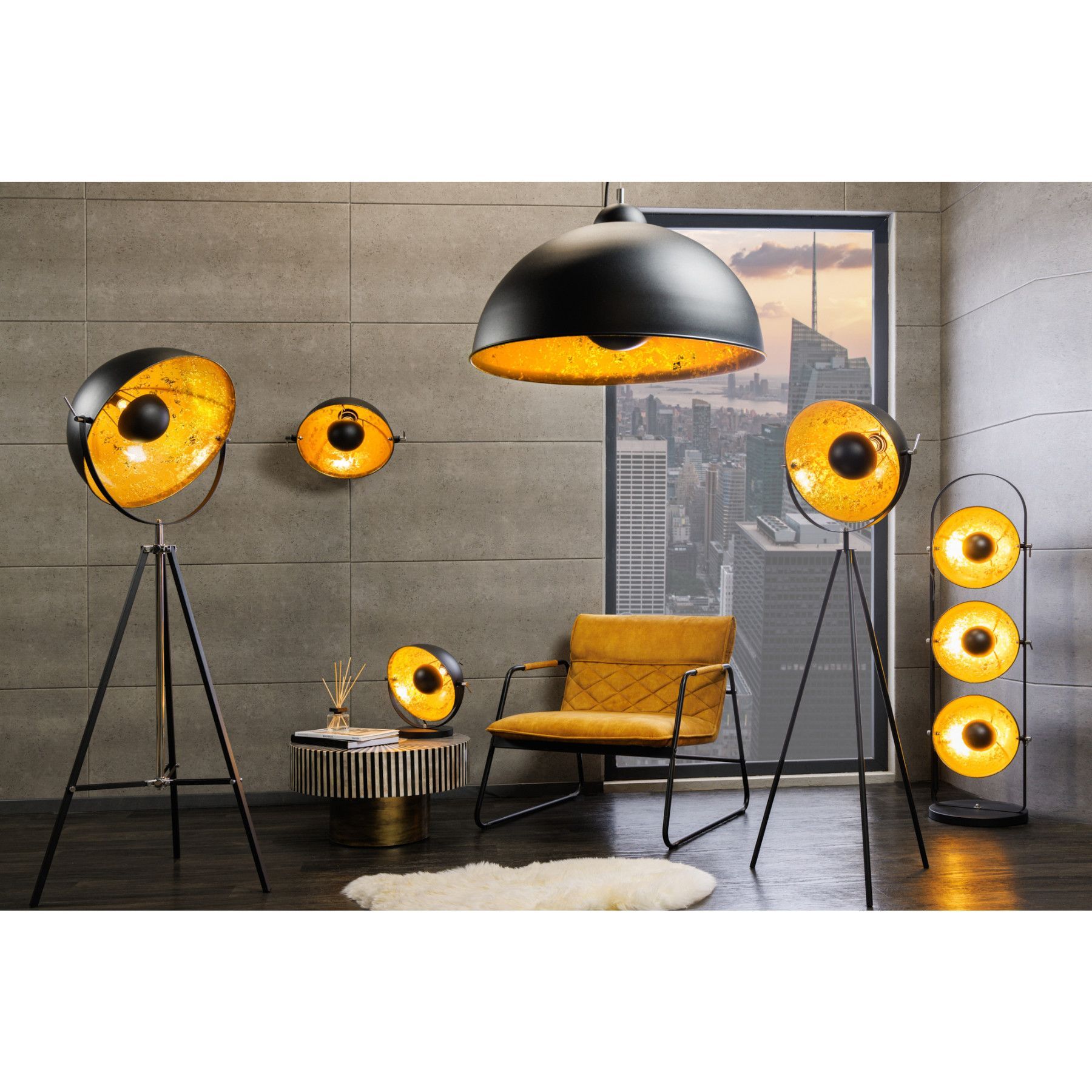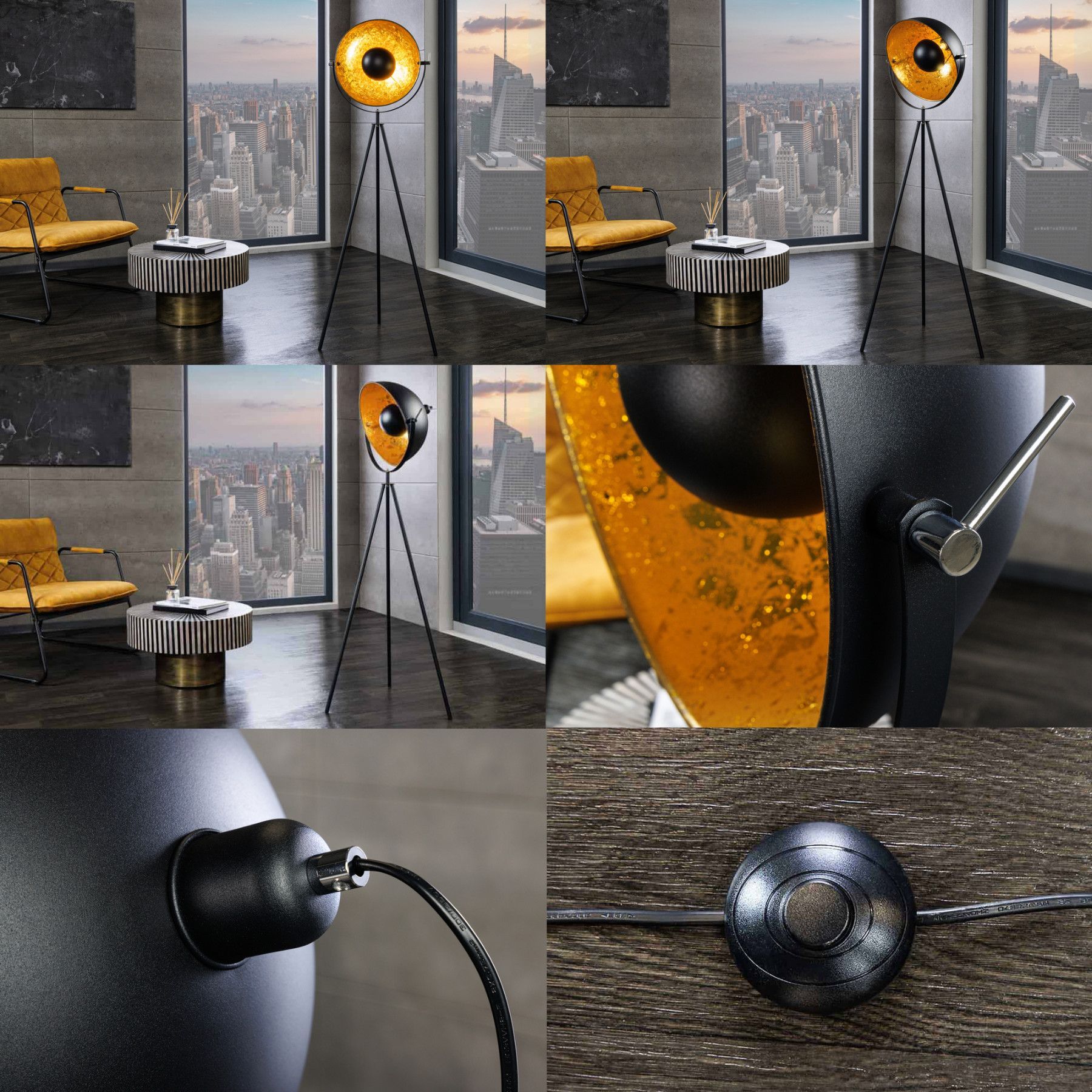 Lampen Sitzen Tische Möbel Accessoires Büro Bilder Navigation X Lampen Sitzen Tische Möbel Accessoires Büro Bilder cagü: DESIGN STEHLAMPE INDUSTRIELAMPE STEHLEUCHTE [SPOT] SCHWARZ-GOLD 140cm NEU Artikelmermale Farbe: Lampenschirm: Schwarz-Gold Lampengestell: Schwarz & Chrom Material: Lampenschir
