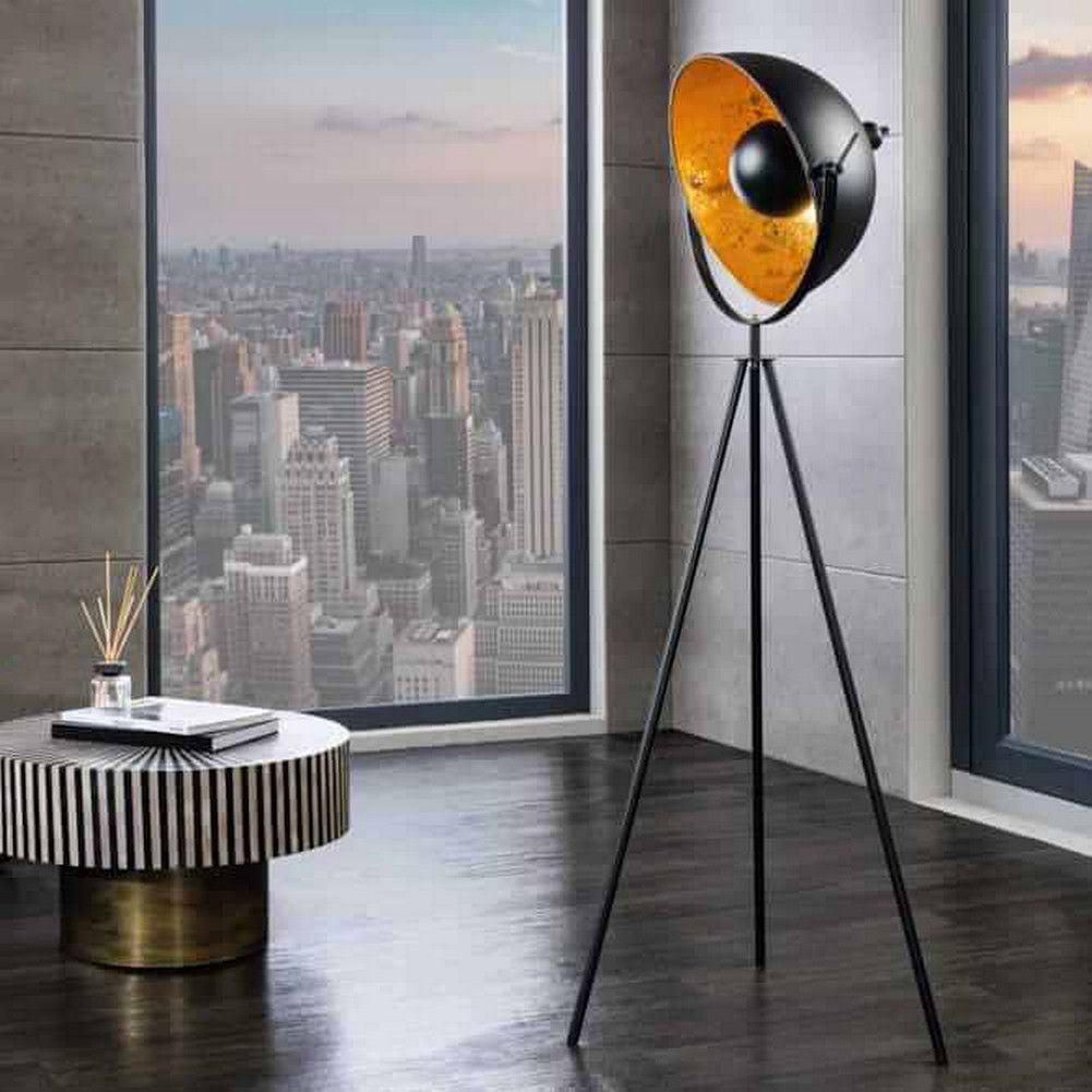 cagü: Design Retro Lounge Stehlampe Stehleuchte (SPOT] Schwarz-Gold 140cm Höhe, NEU!