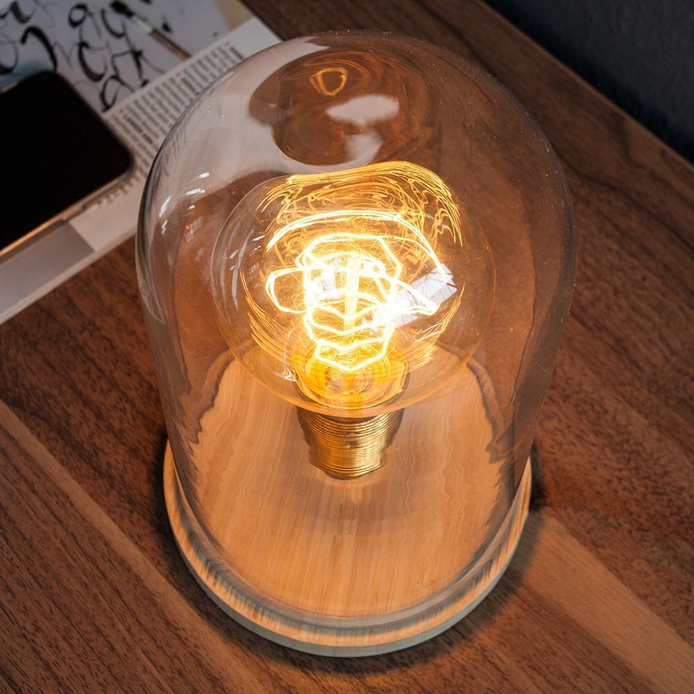 cagü: Design Retro Lounge Tischlampe Electro aus Glas & Holz 20cm Tischleuchte