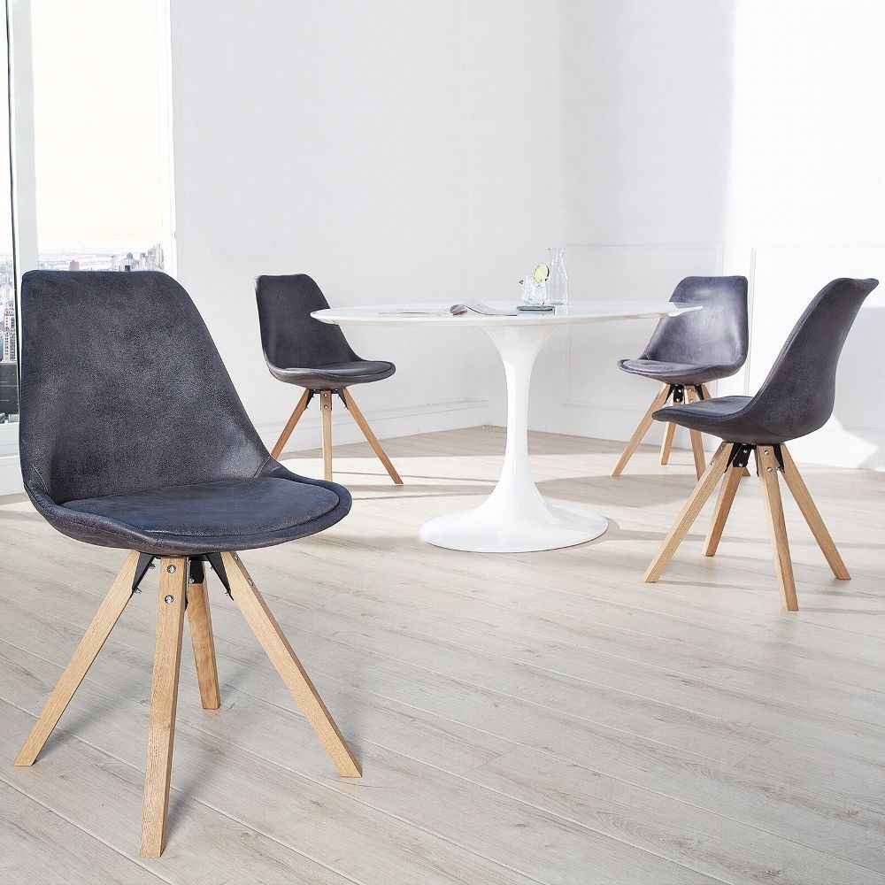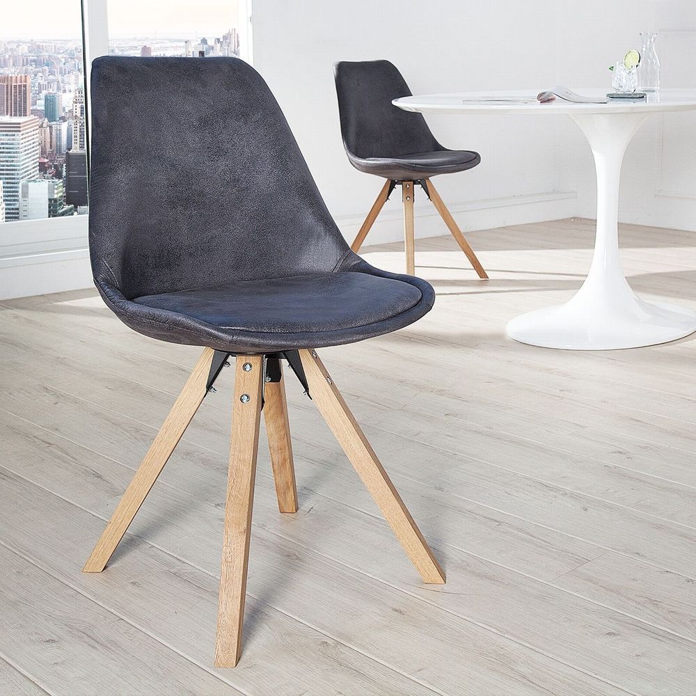 cagü: Design Retro Stuhl [GÖTEBORG] Grau-Antik-Eiche Kunstleder Skandinavischen STIL