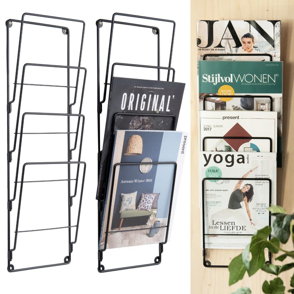 cagü: Design Retro Zeitungsständer Magazinhalter (MATS] Schwarz Hängend 60cm Höhe