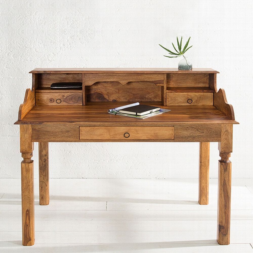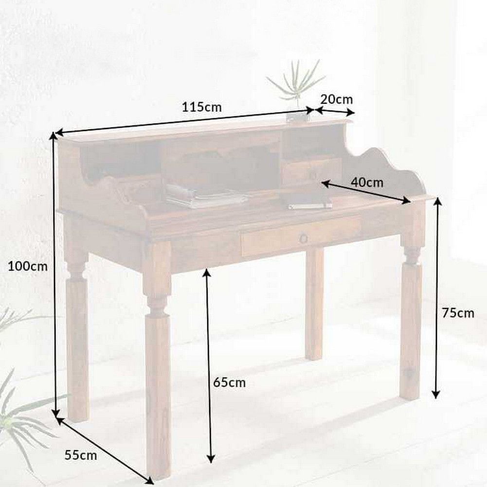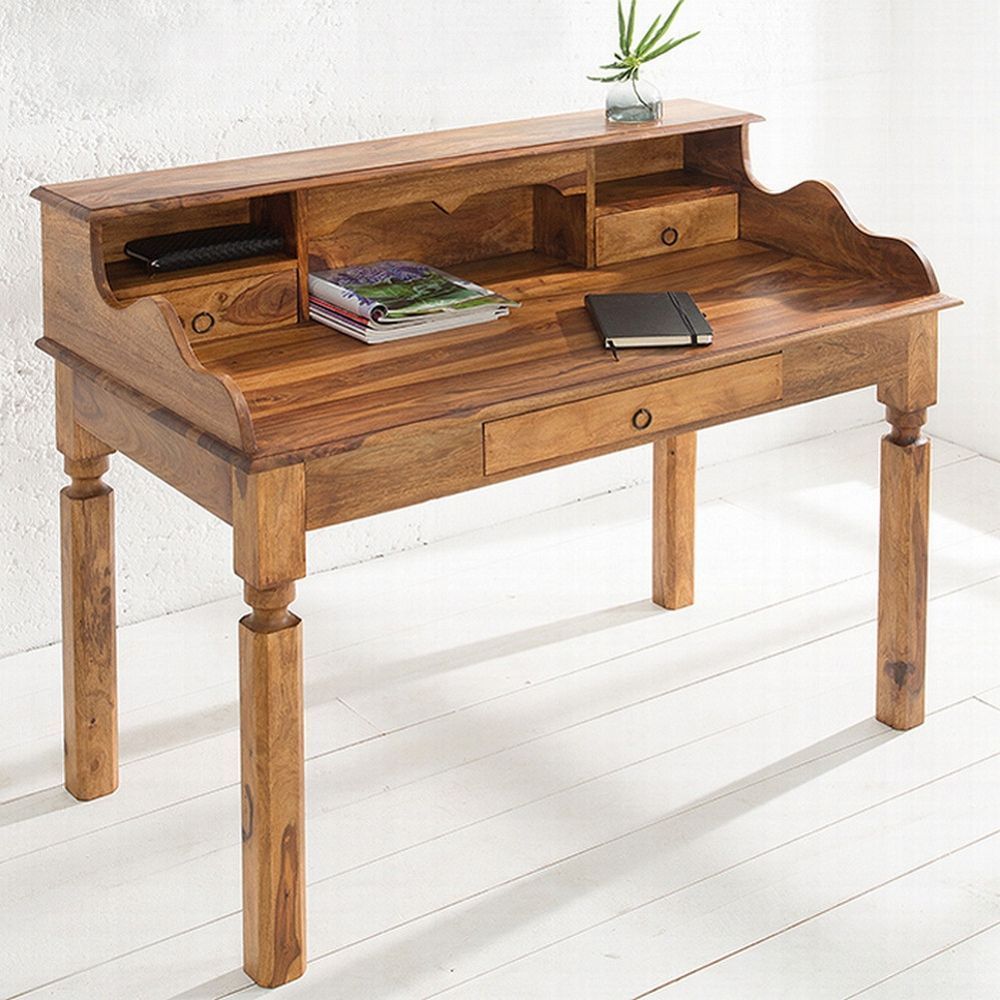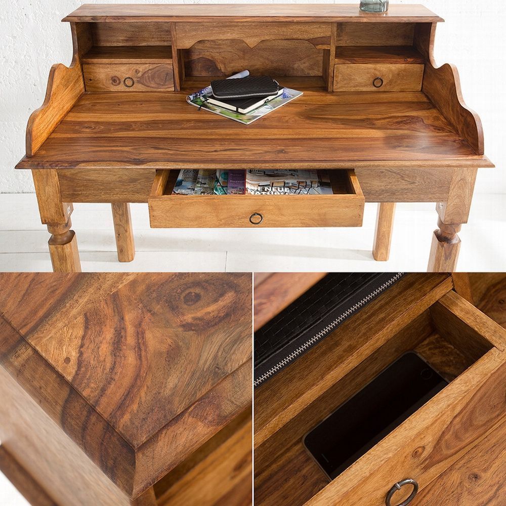 cagü: Design Sekretär Schreibtisch (SALEM] aus Sheesham MASSIV HOLZ Gewachst 115cm