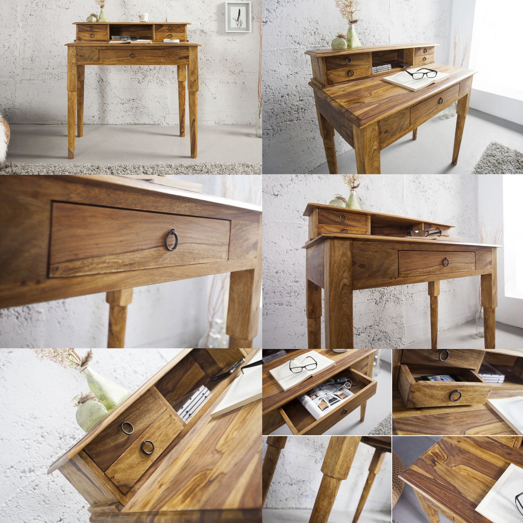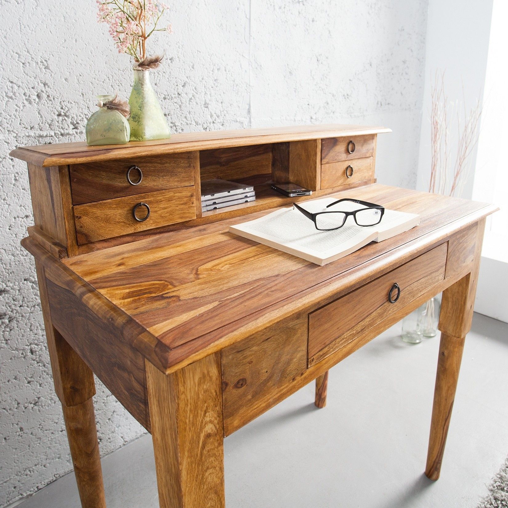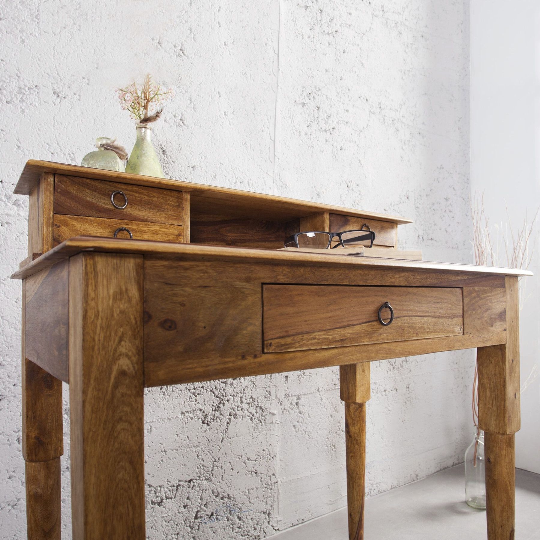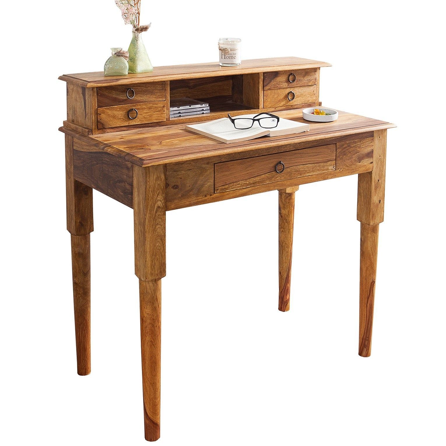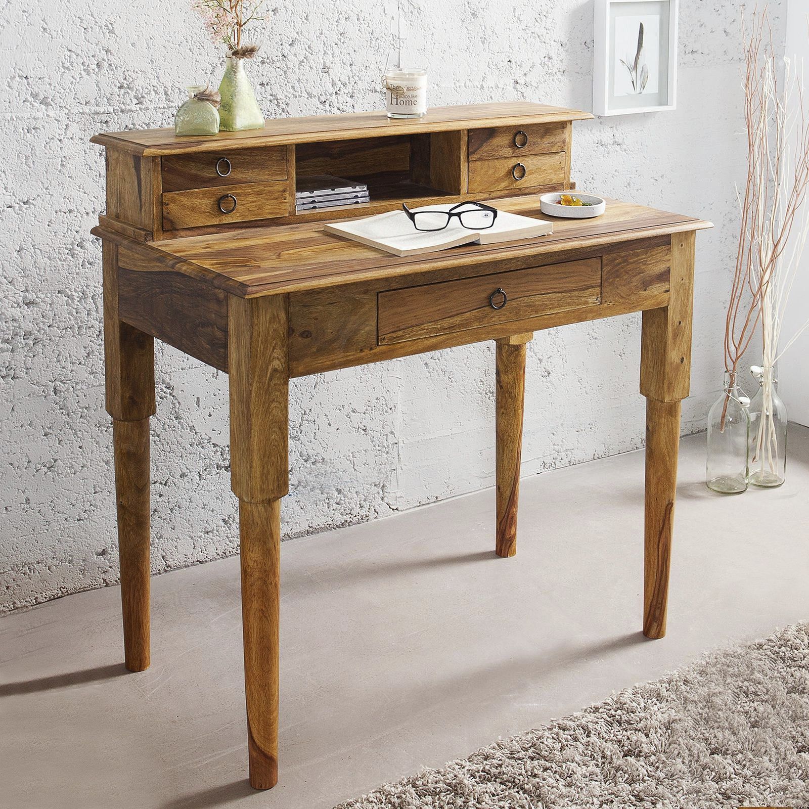 cagü: Design Sekretär Schreibtisch (SATNA] aus Sheesham MASSIV HOLZ Gewachst 90cm NEU
