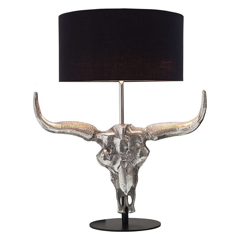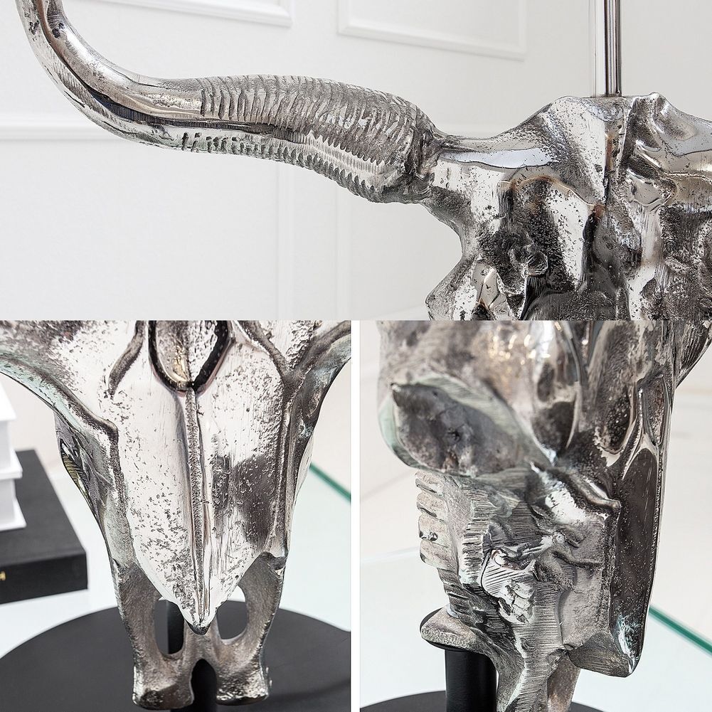cagü: Design Tischlampe Stierkopf RODEO Schwarz Silber Aluminium 68cm