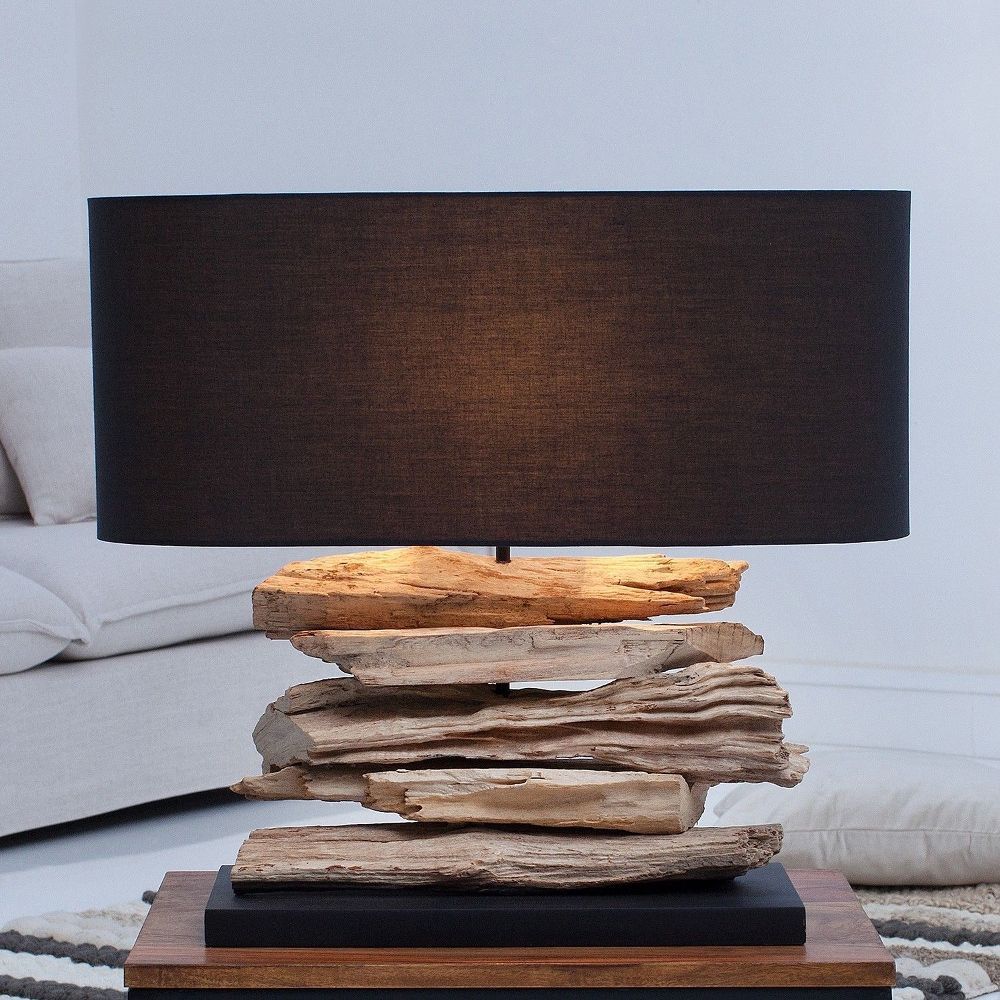 cagü: Design Tischlampe Tischleuchte (TIMOR] Schwarz aus Treibholz Handgefertigt 55cm