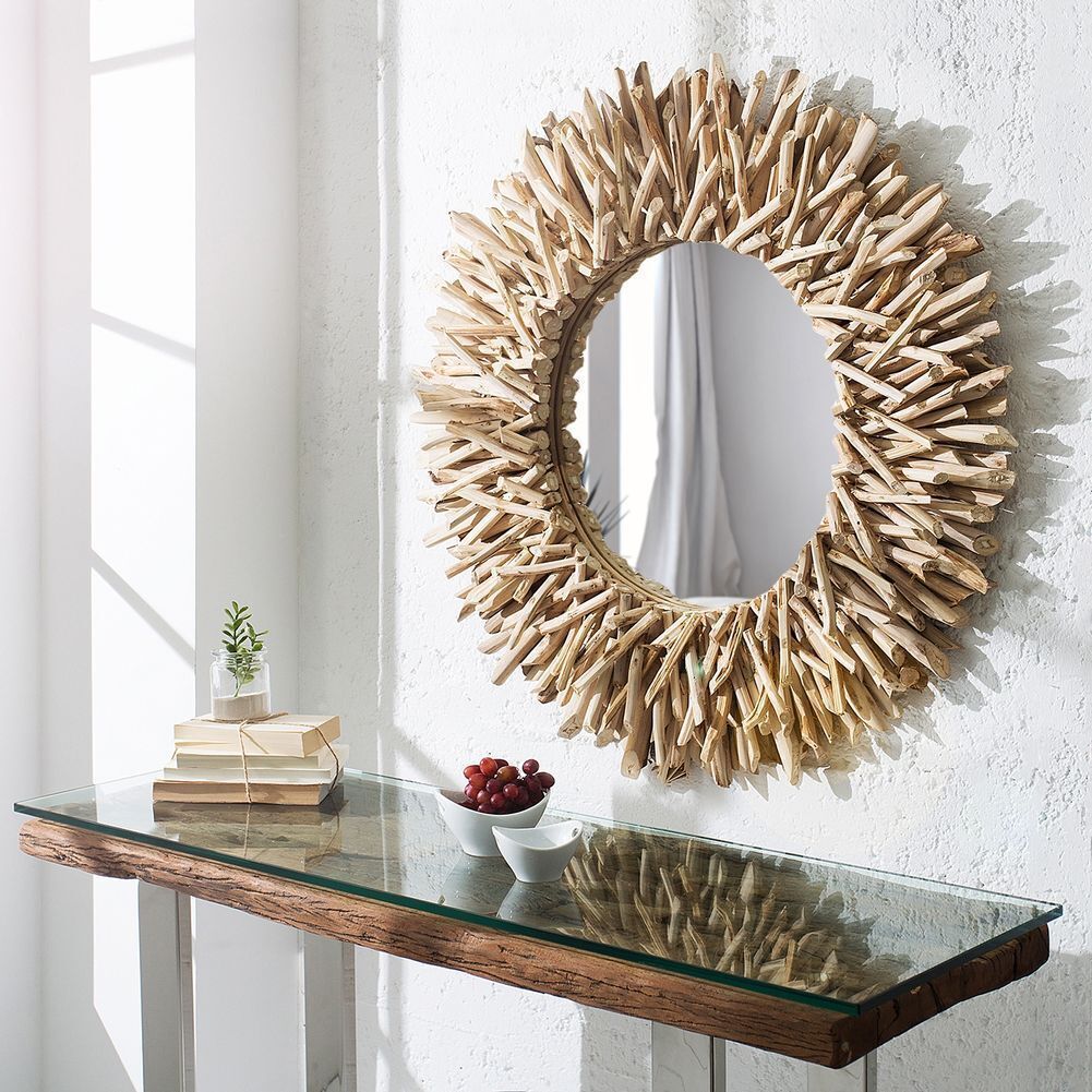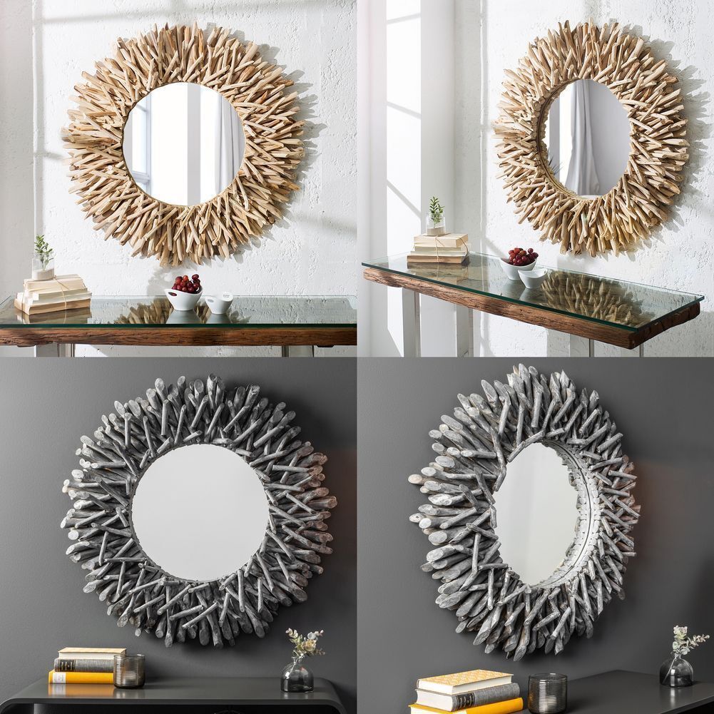 cagü: Design Wandspiegel Spiegel SIBU Natur Treibholz handgefertigt 80cm Ø