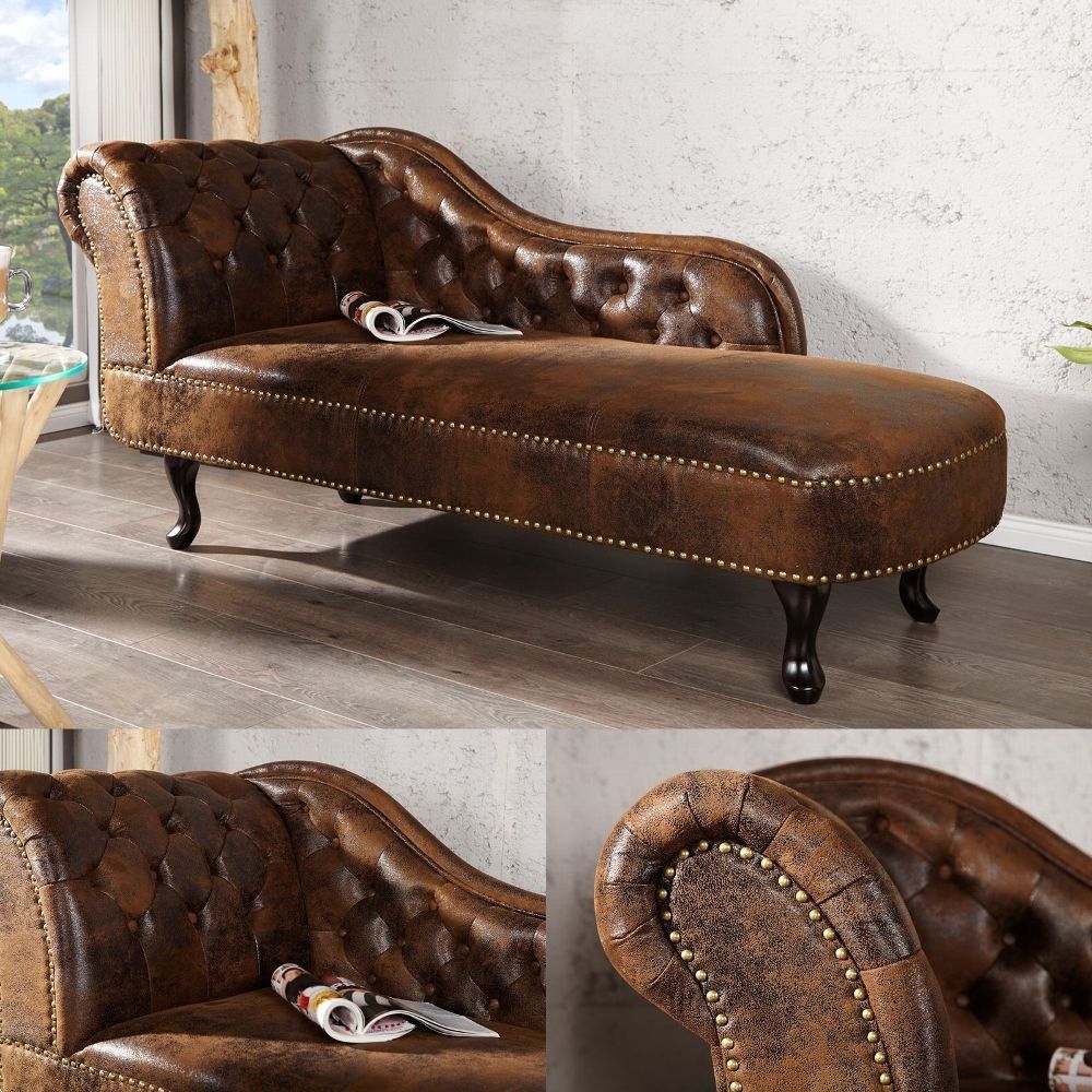 cagü: Edle Chesterfield Recamiere (WINCHESTER] Braun Kunstleder Chaiselounge, NEU!