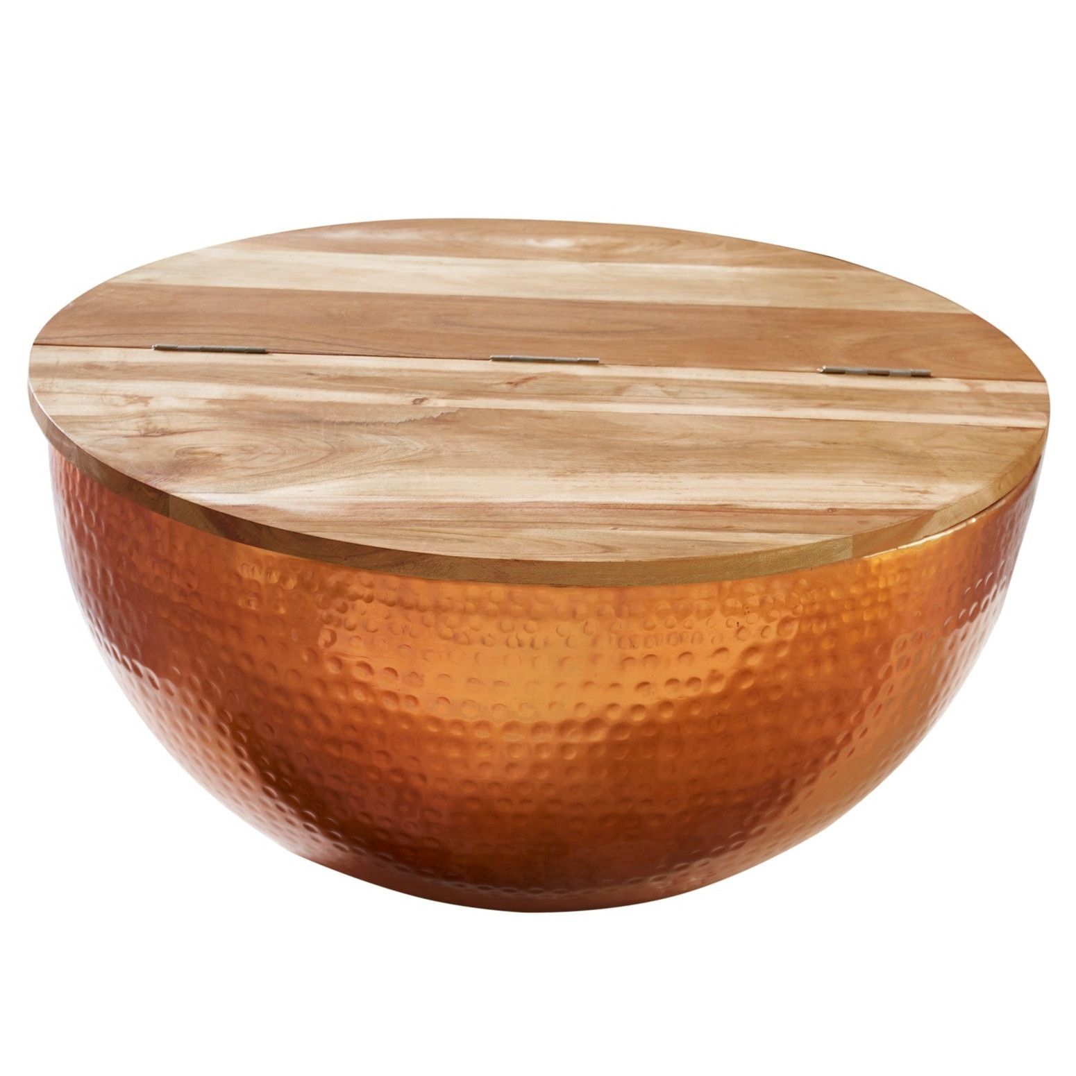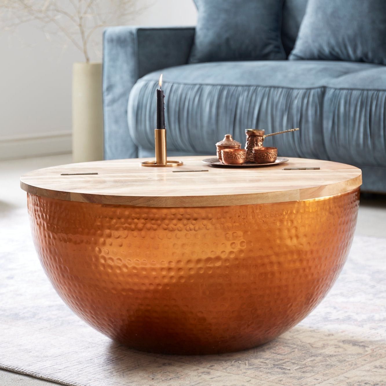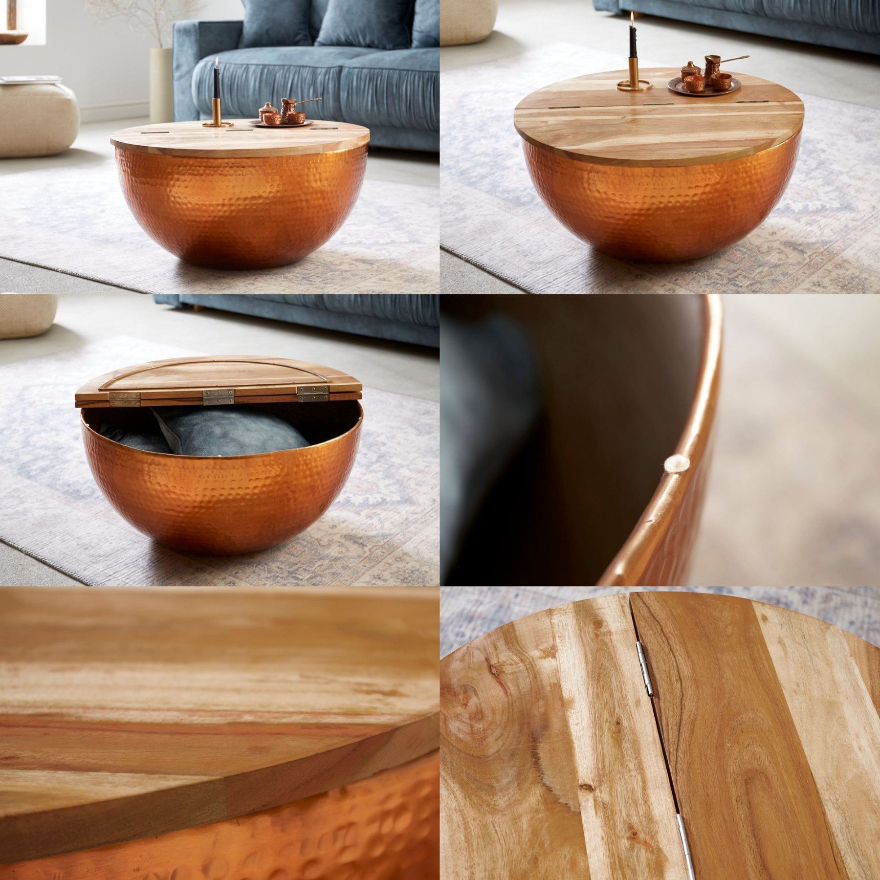 cagü: Industrie-Design Couchtisch (PULIM] Natur Akazienholz Kupfer 60cm Ø