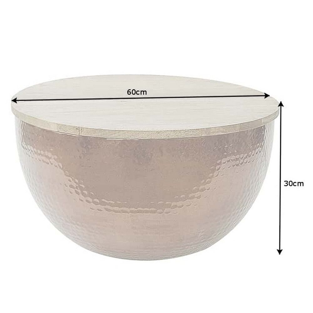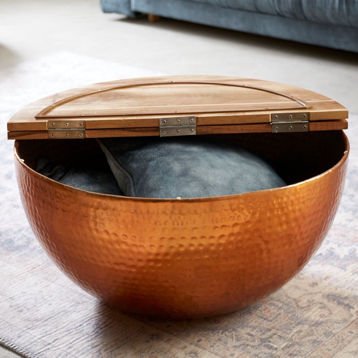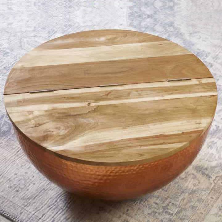 cagü: Industrie-Design Couchtisch (PULIM] Natur Akazienholz Kupfer 60cm Ø