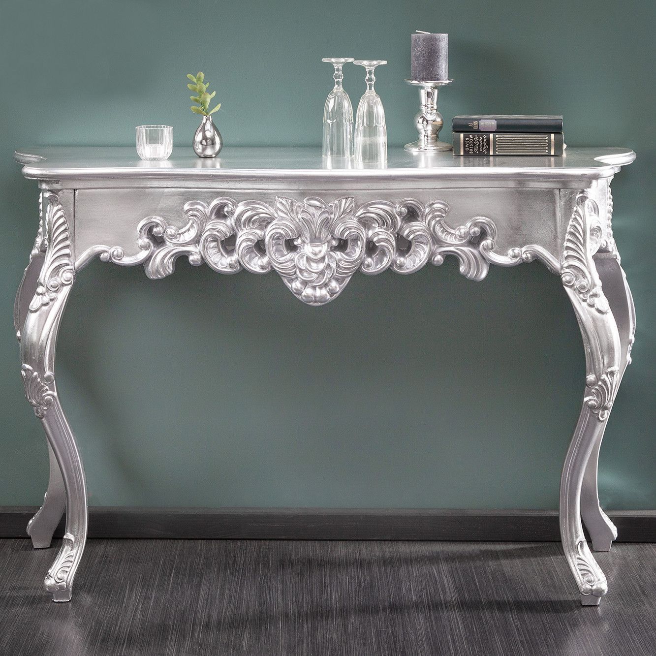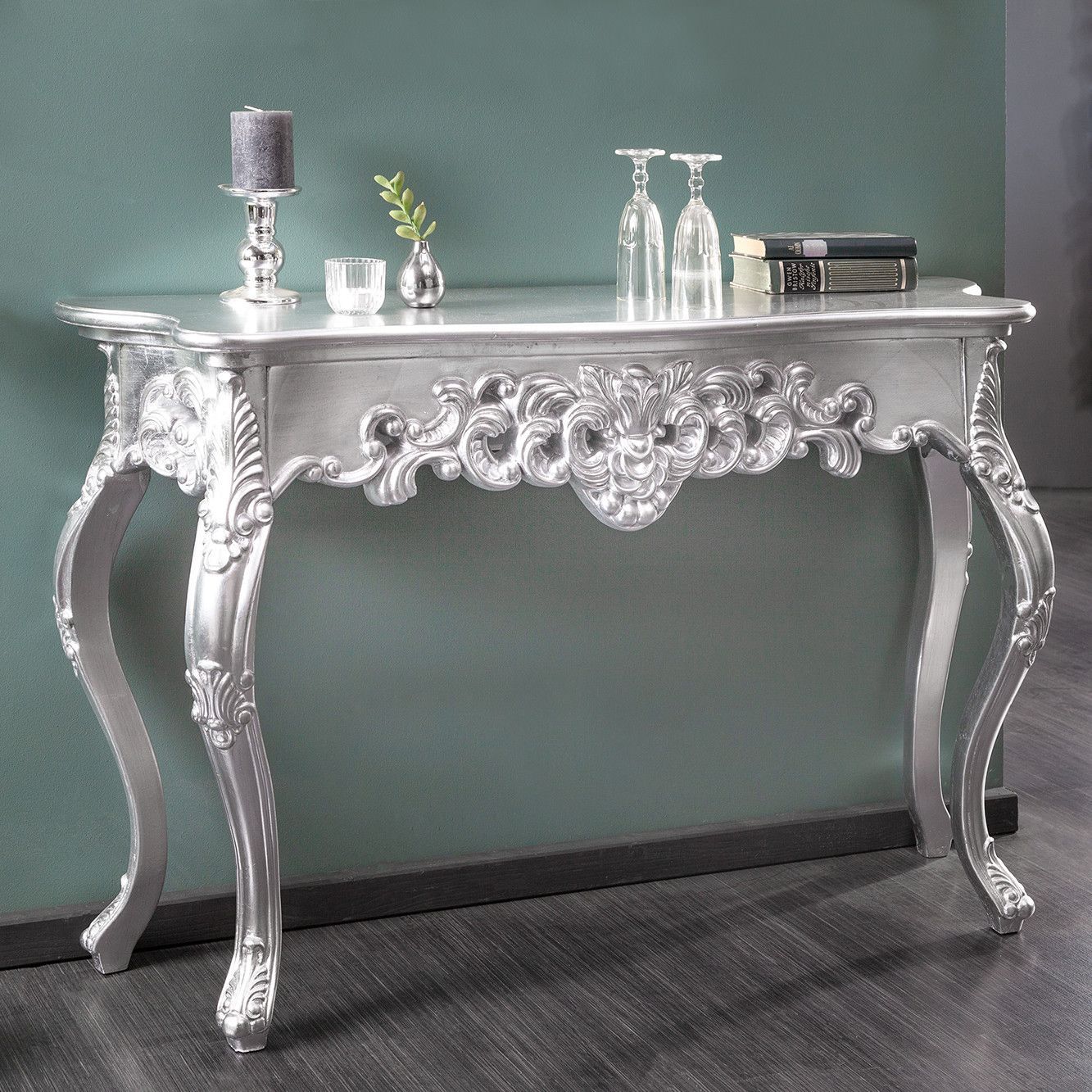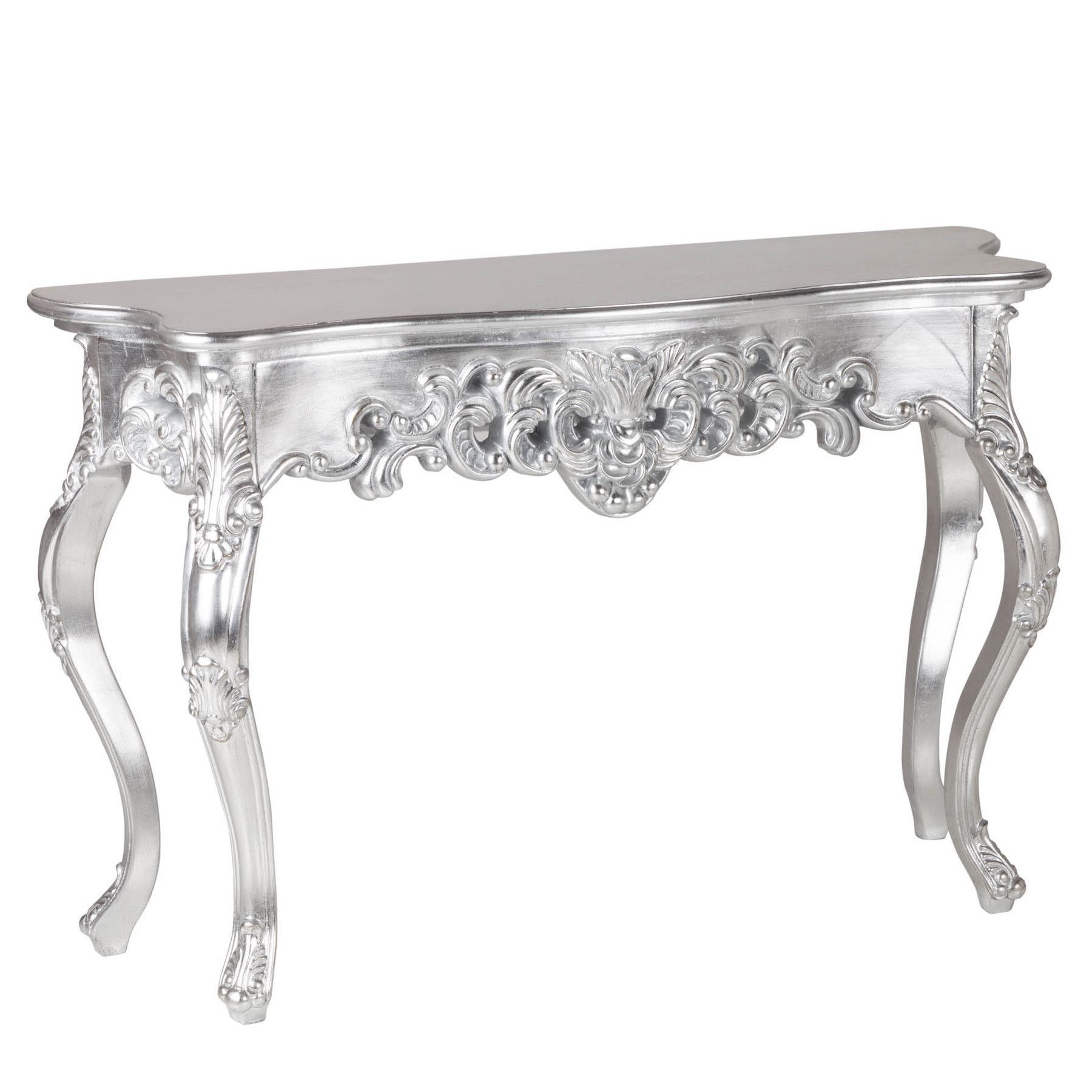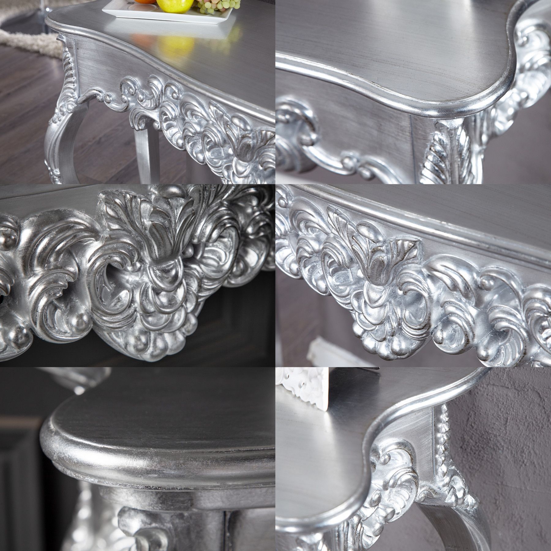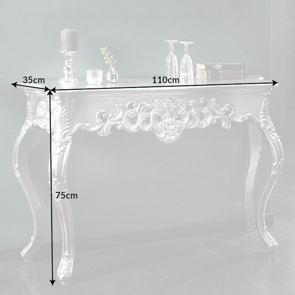 cagü Romantische Konsole Konsolentisch (FLORENCE] Silber-Antik in BAROCK-DESIGN 110cm