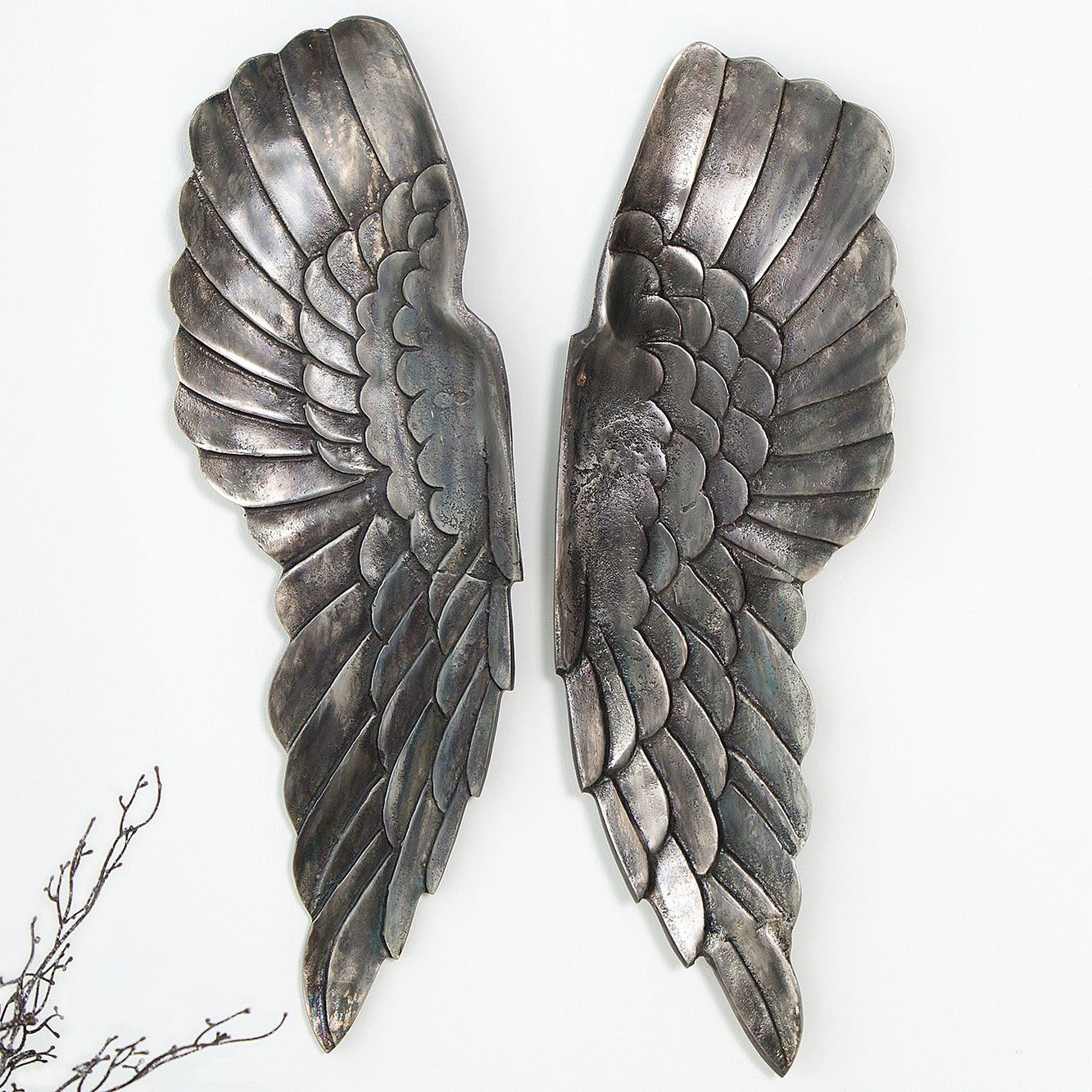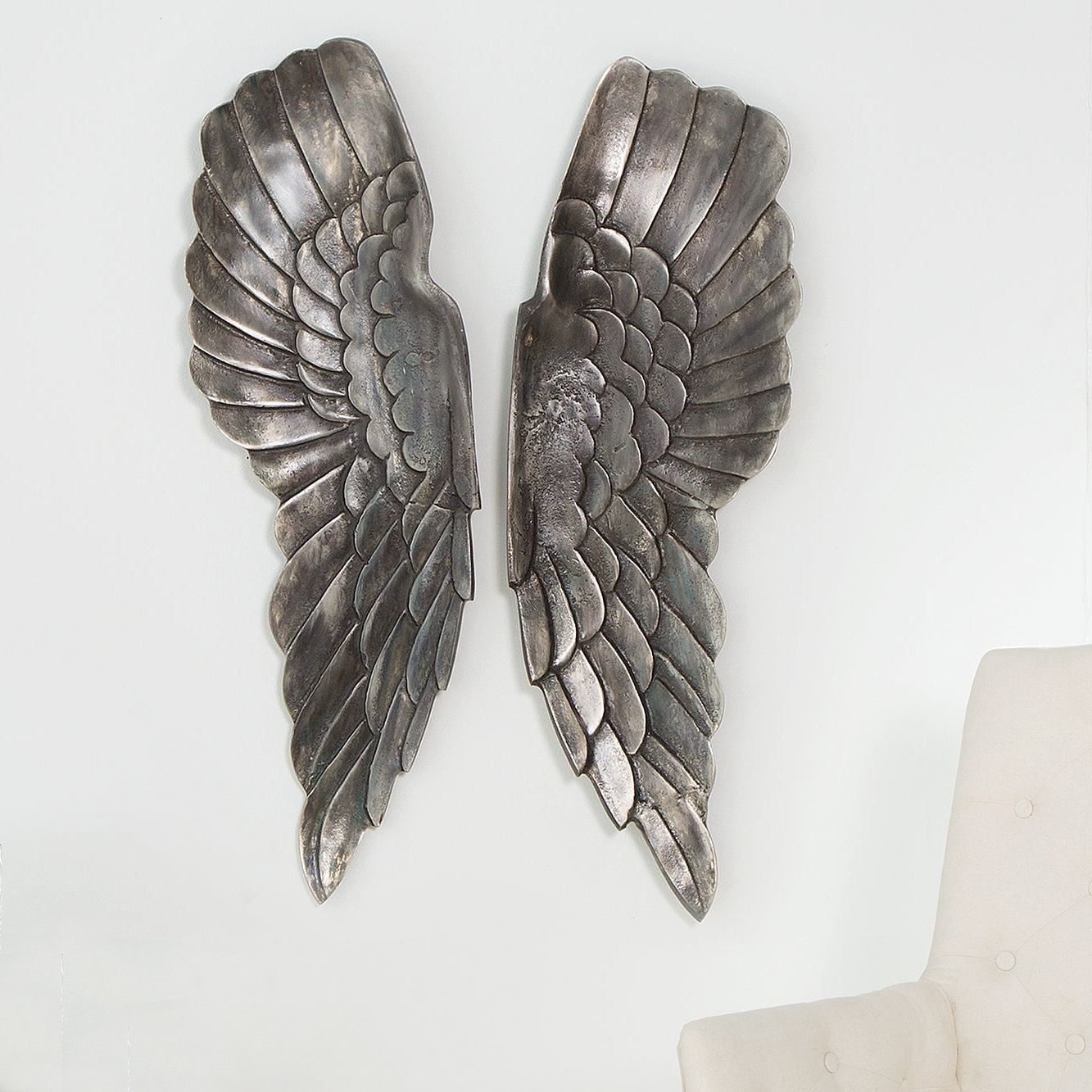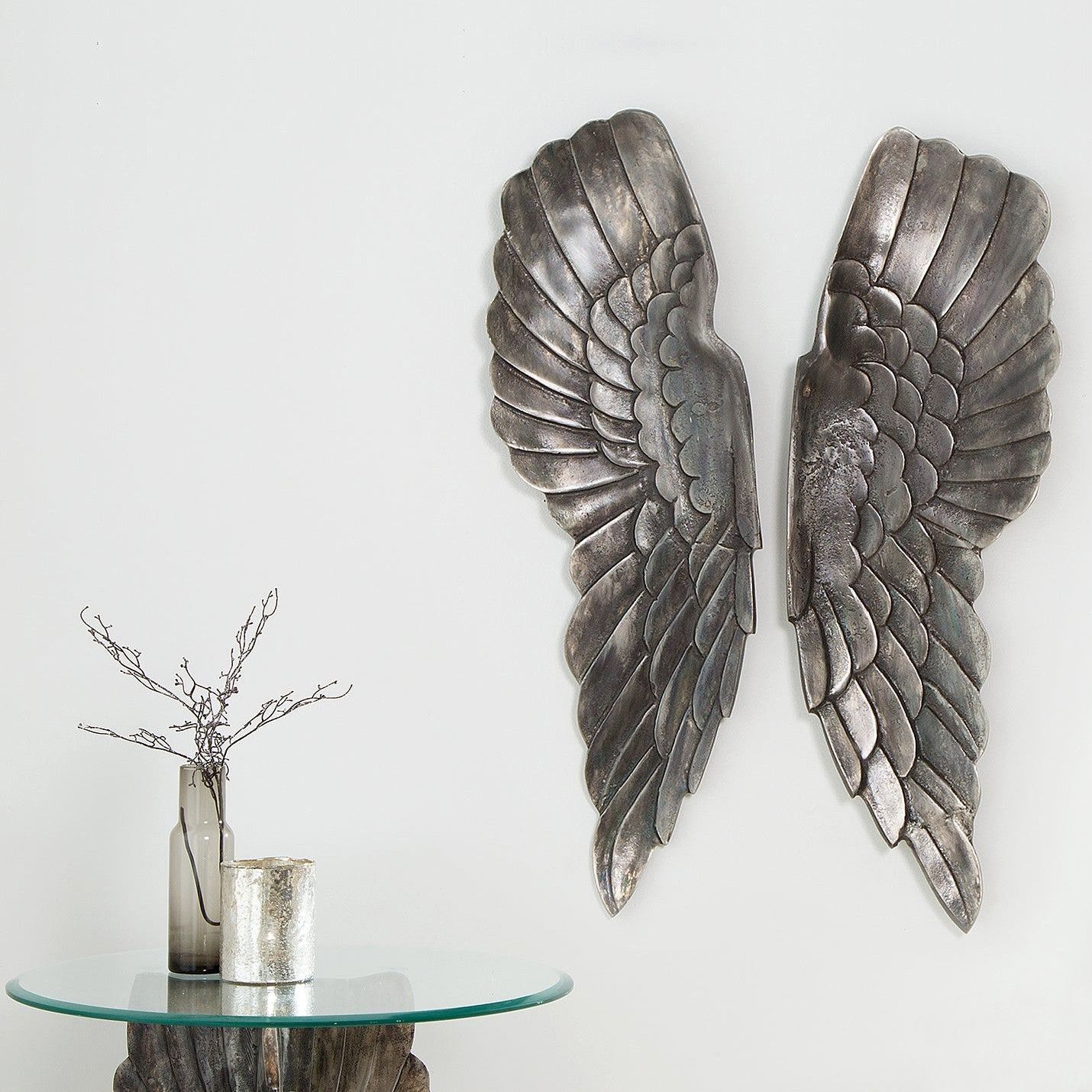 cagü: XL Design Wanddeko Flügelpaar Flügel WINGS Bronze-Silber Aluminium 65cm