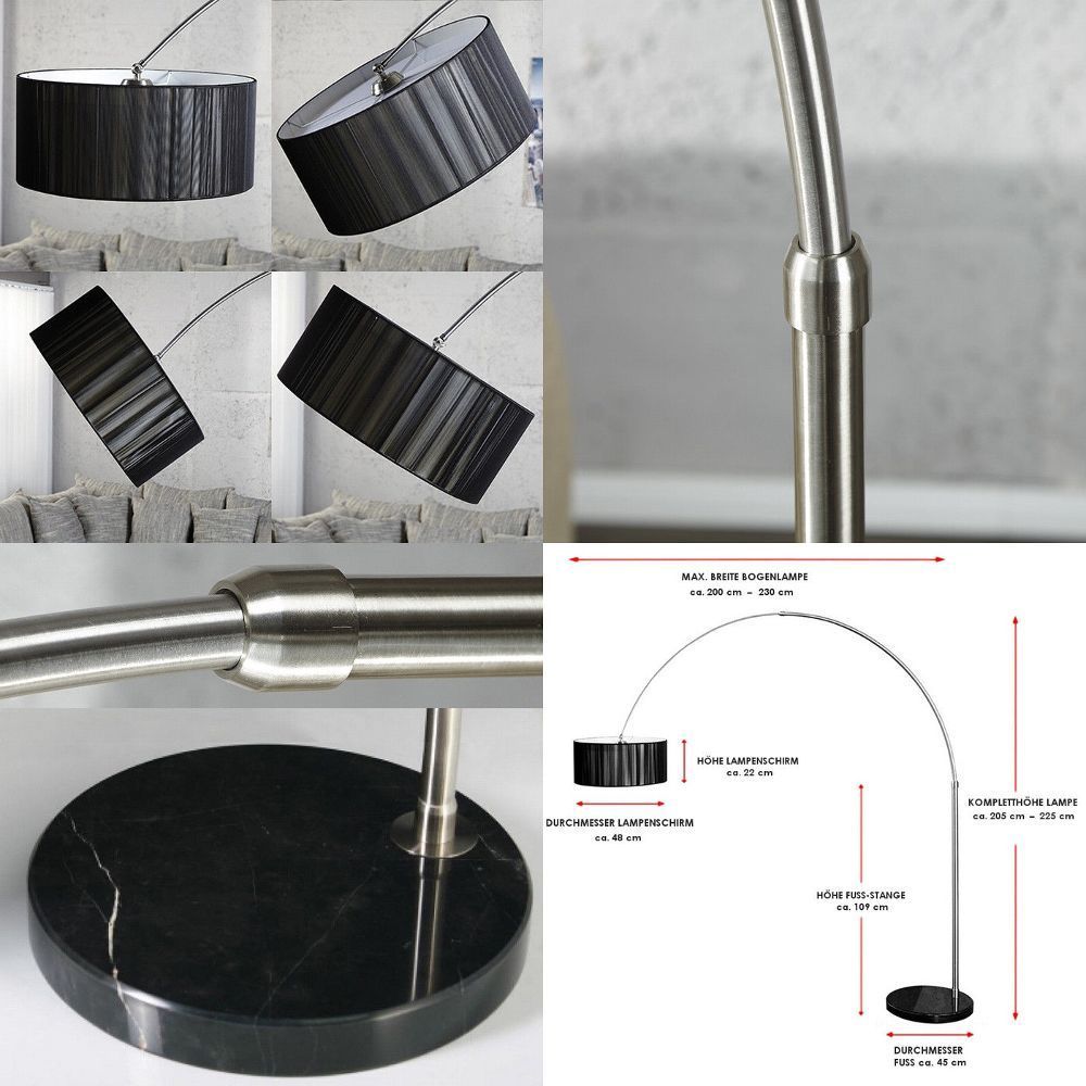 Lampen Sitzen Tische Möbel Accessoires Büro Bilder Navigation X Lampen Sitzen Tische Möbel Accessoires Büro Bilder cagü XXL DESIGN RETRO BOGENLAMPE STEHLAMPE [LUMA] SCHWARZ & MARMORFUSS 205-225cm Artikelmermale Farbe: Lampenfuß: Schwarz Lampenschirm: Schwarz Lampengestell: Chrom Matt Material: L