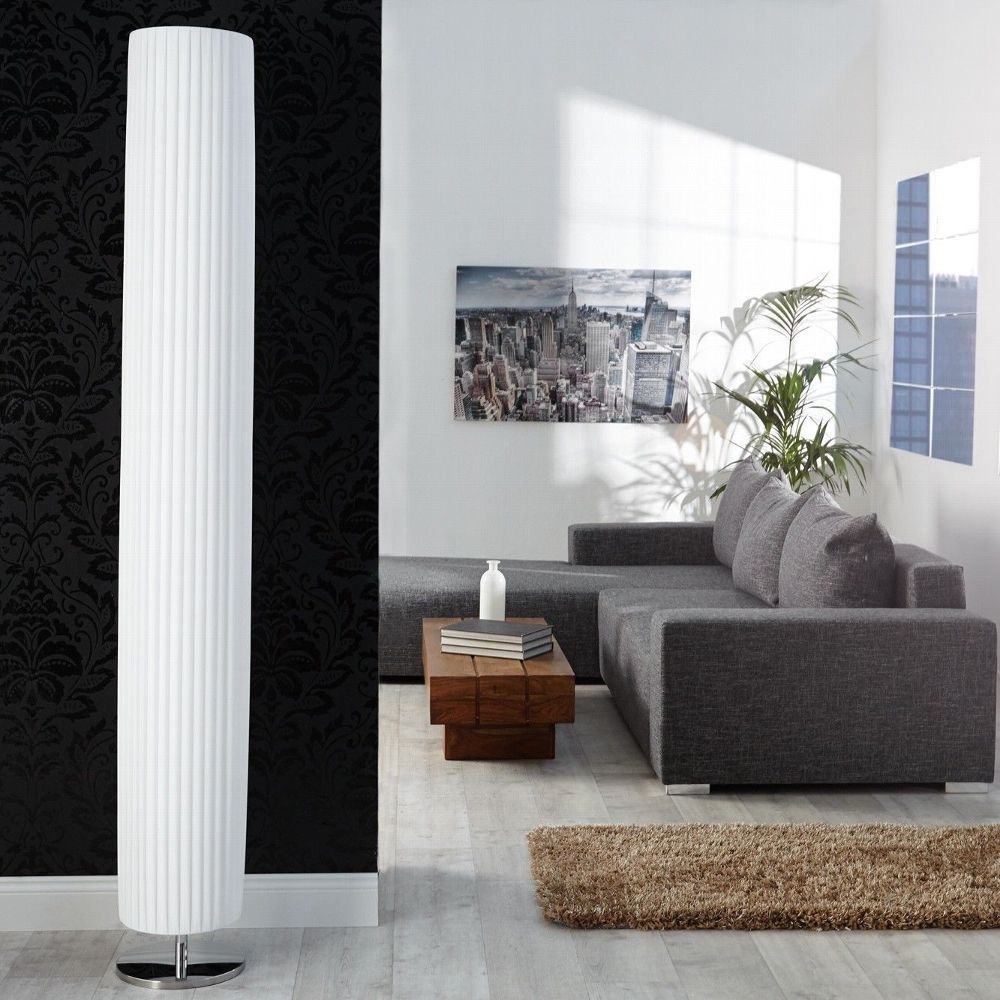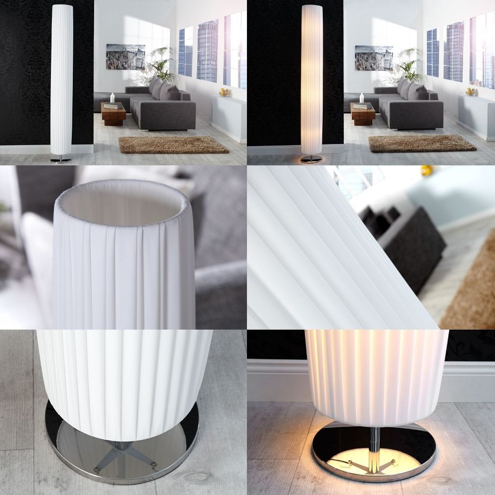 cagü: XXL Design Retro Plissee Stehlampe Stehleuchte (LOOP] Weiß Rund 195cm