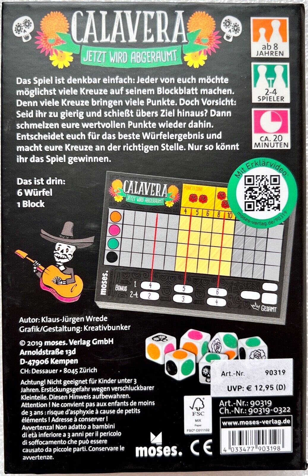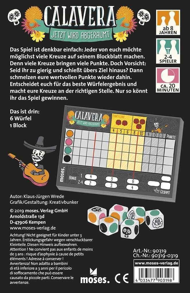 Calavera Moses Familienspiel Würfelspiel Strategiespiel Roll & Write Glücksspiel
