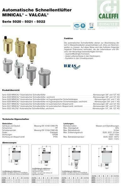 Caleffi Caleffi automatischer Schnellentlüfter 3/8" Heizung Entlüfter mit Absperrung