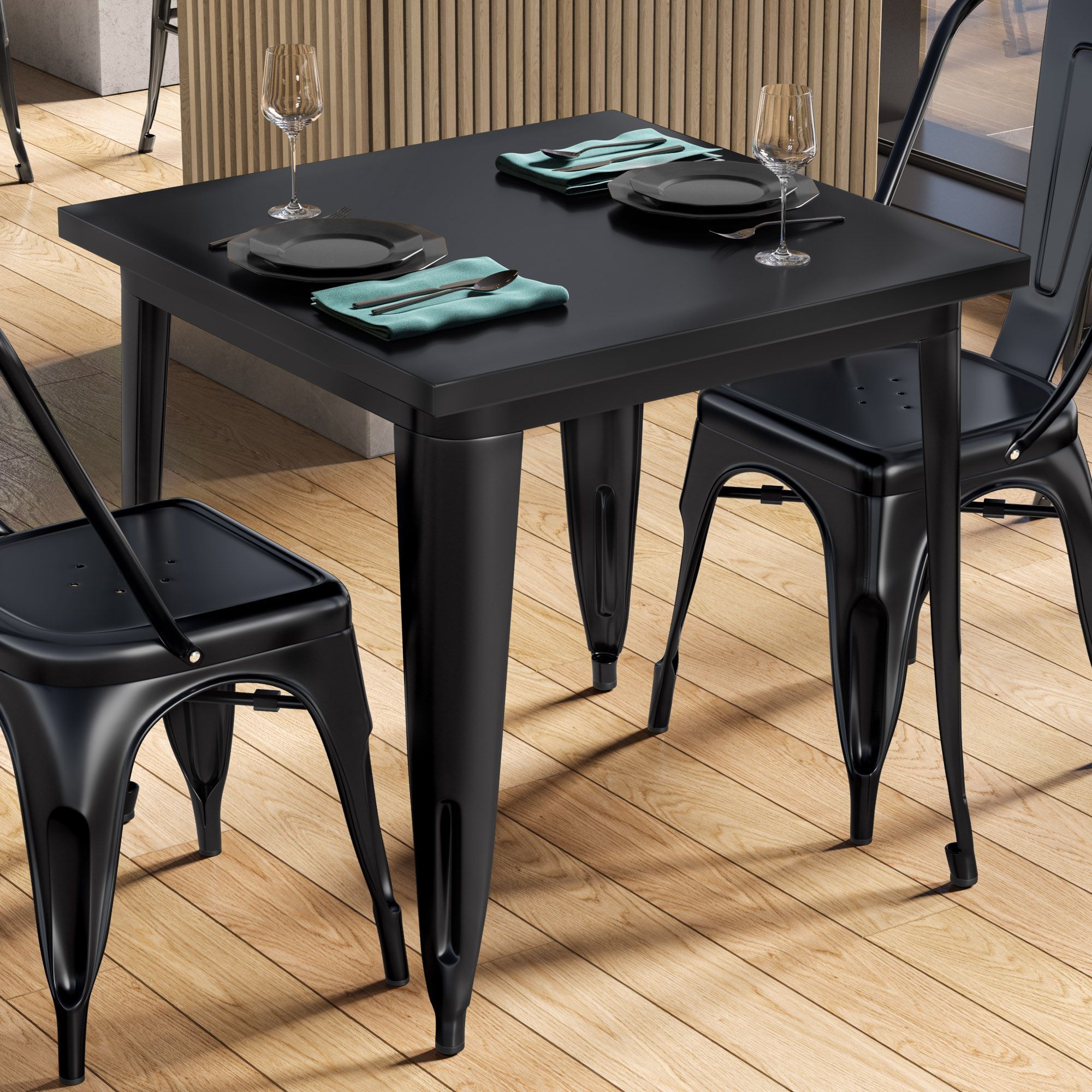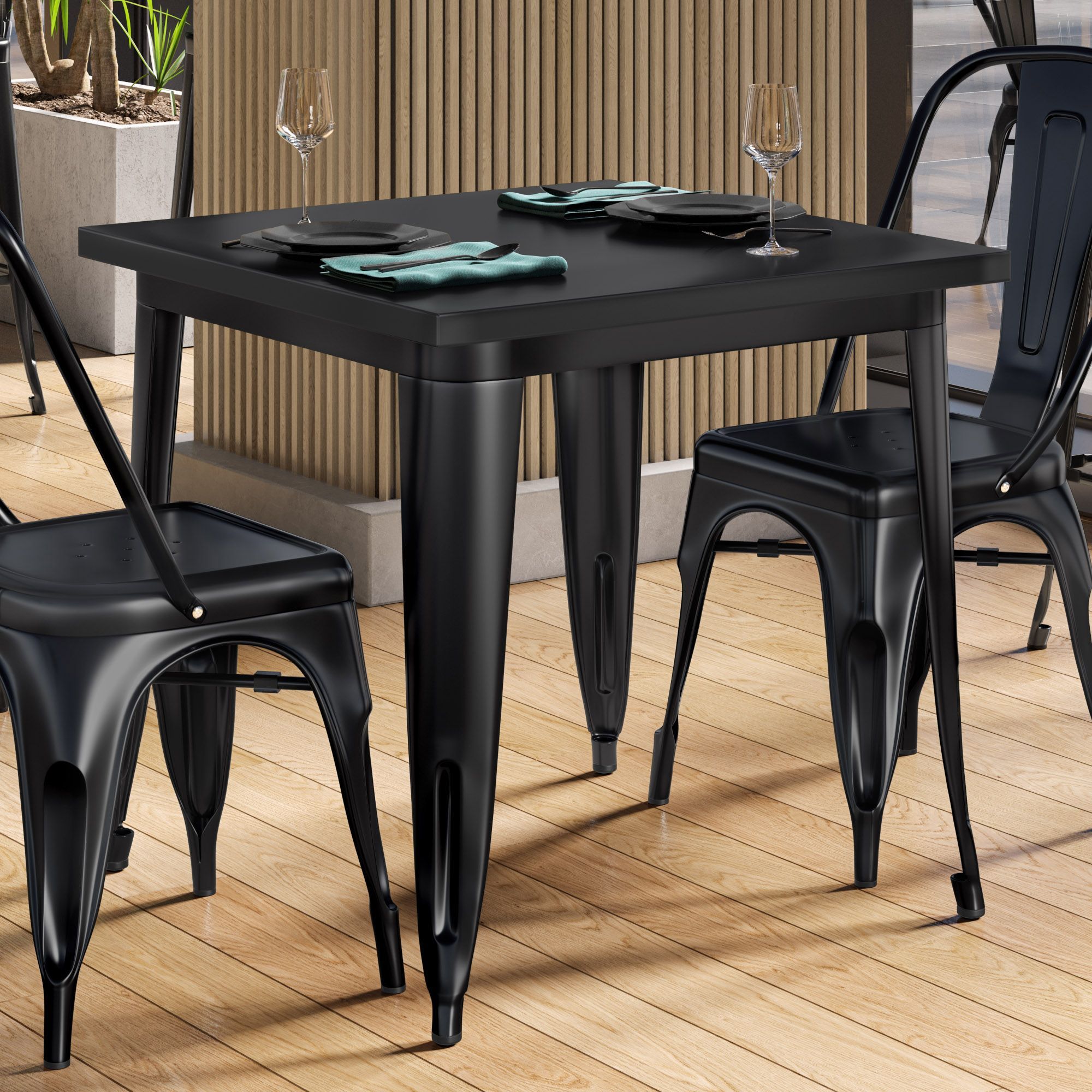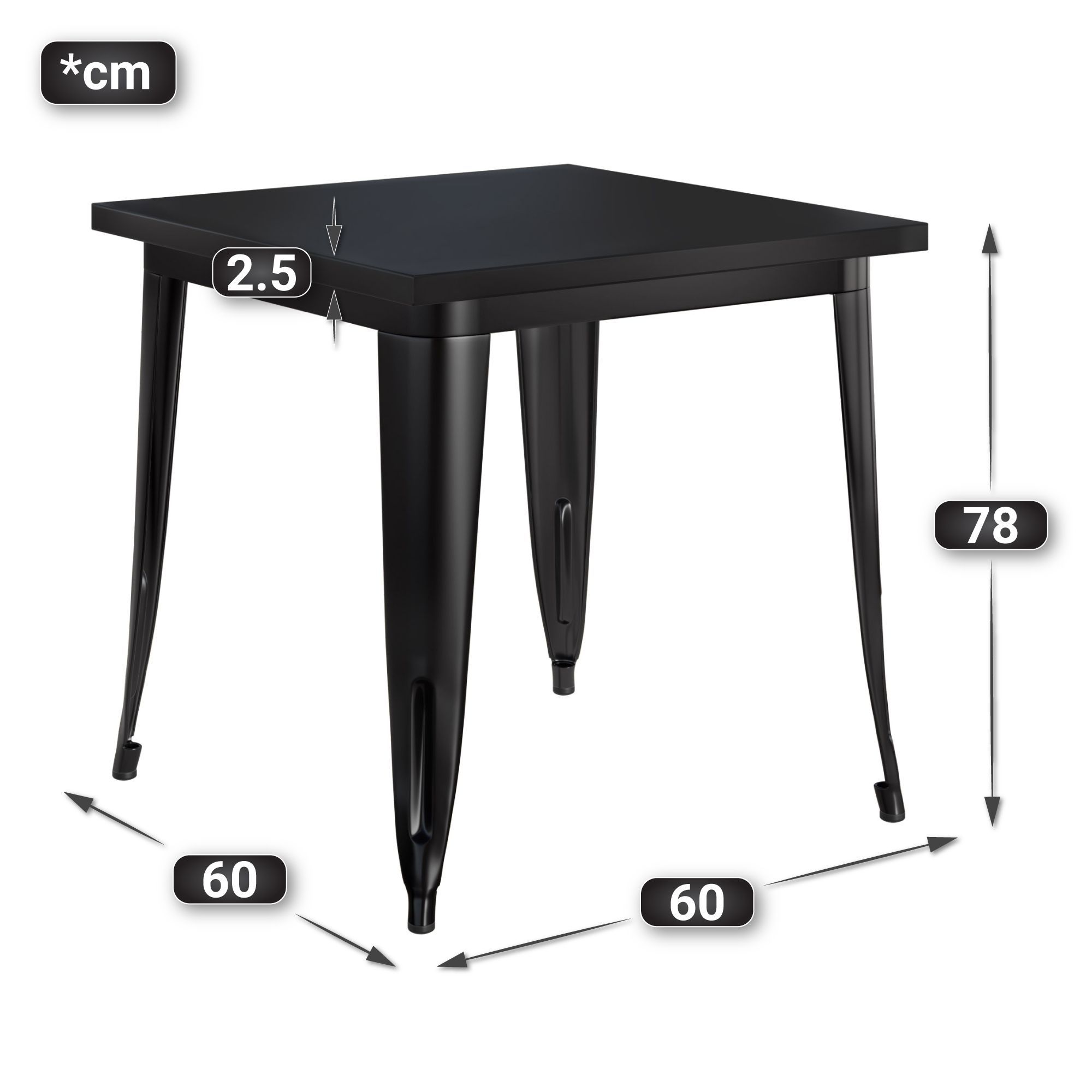 California | Tolix Stil Tisch | B: : 60 x 60 x 78 cm | Schwarz | Quadratisch | Indu