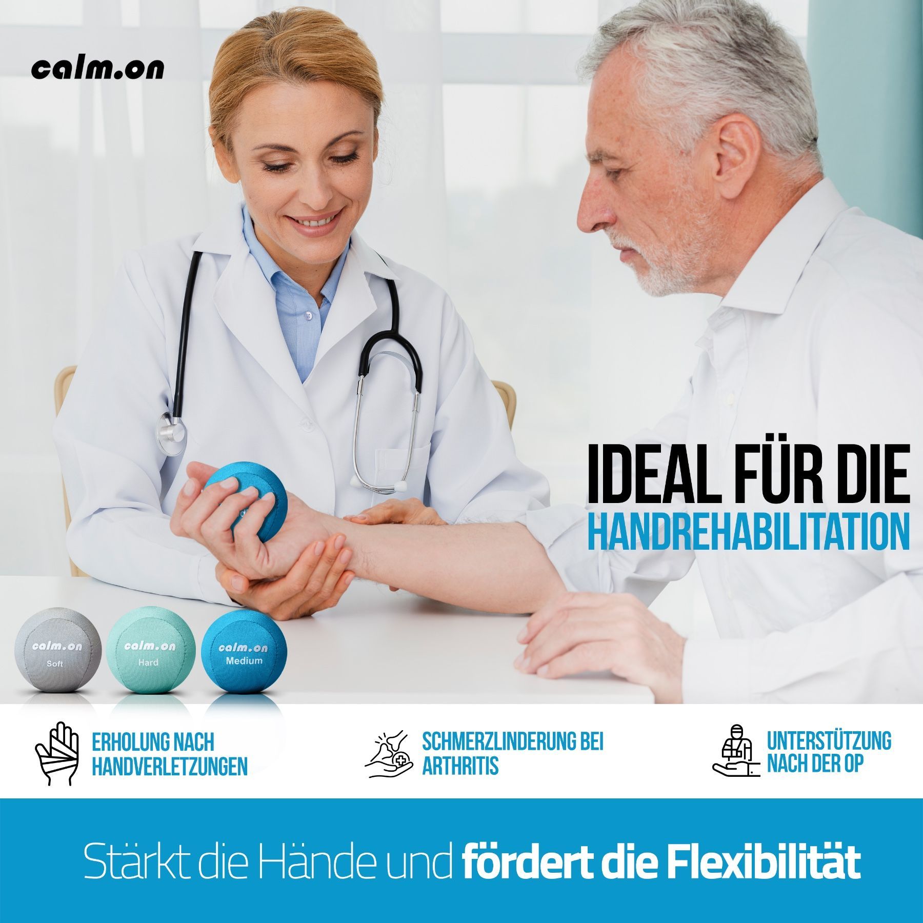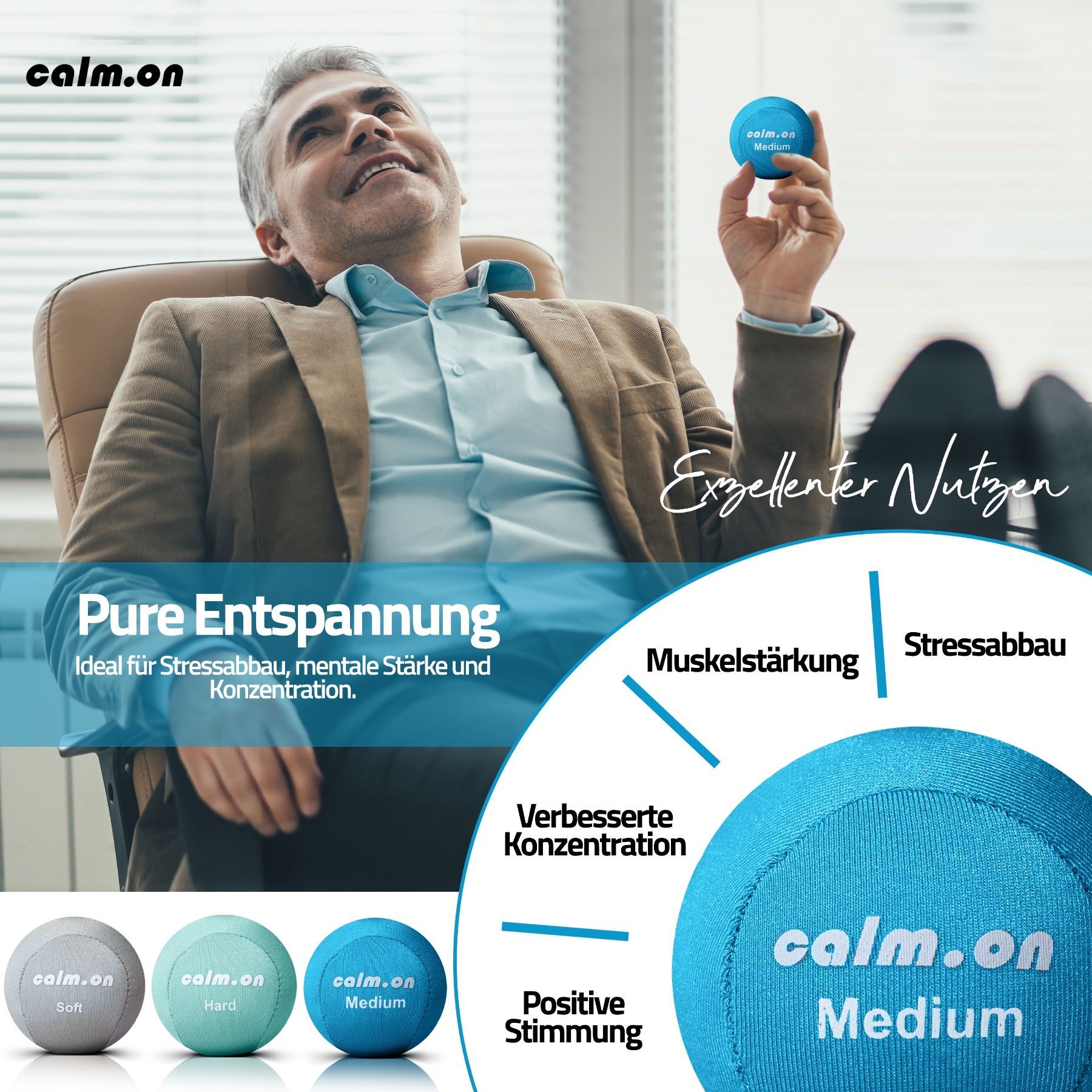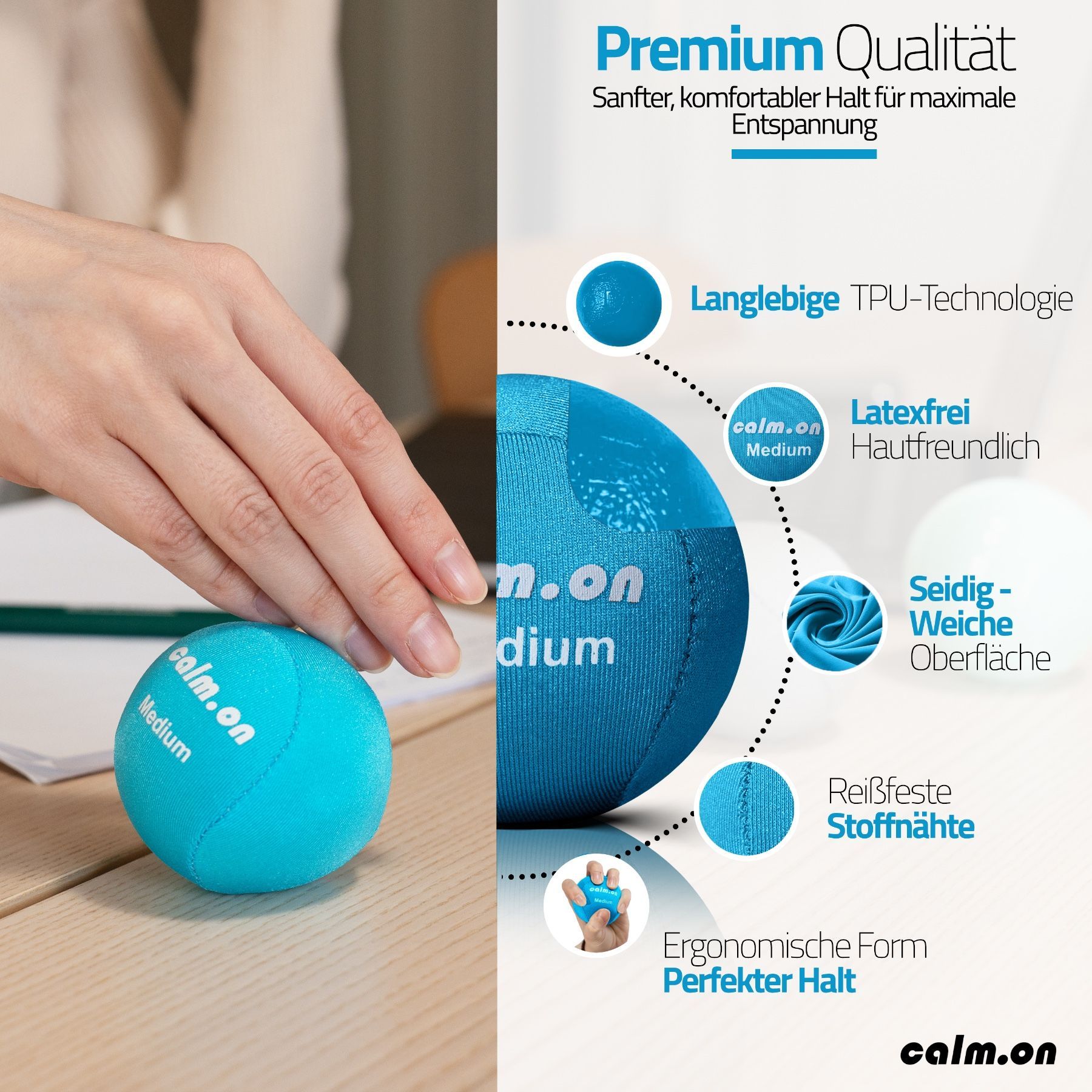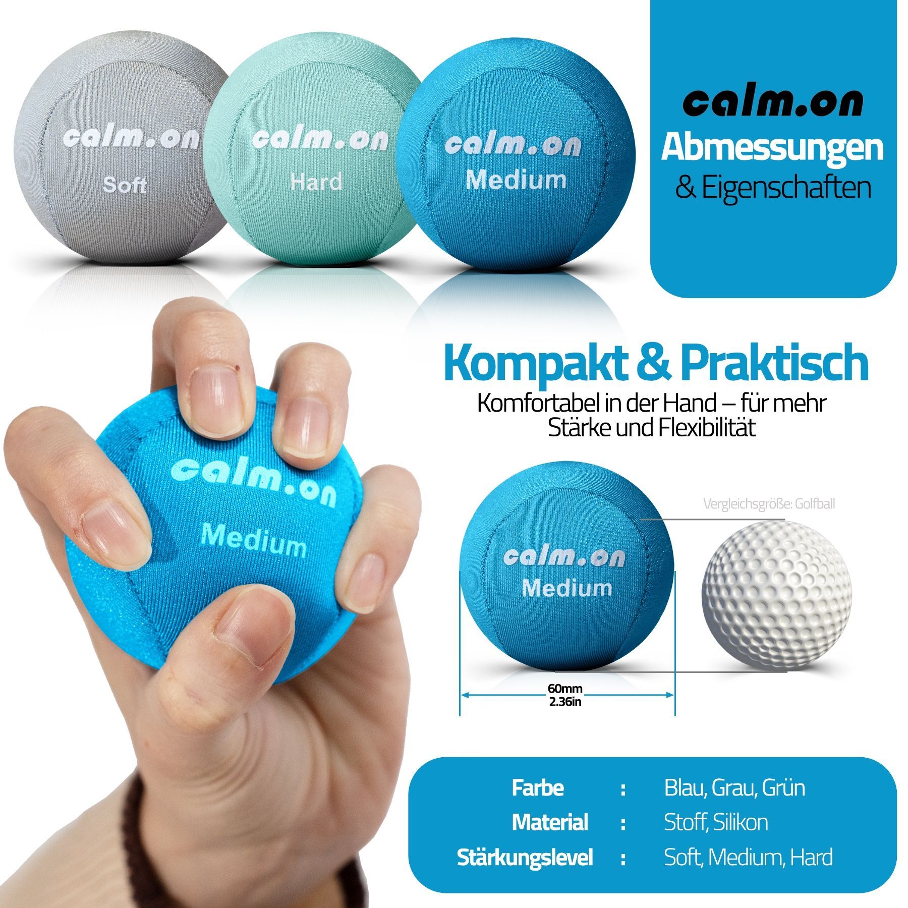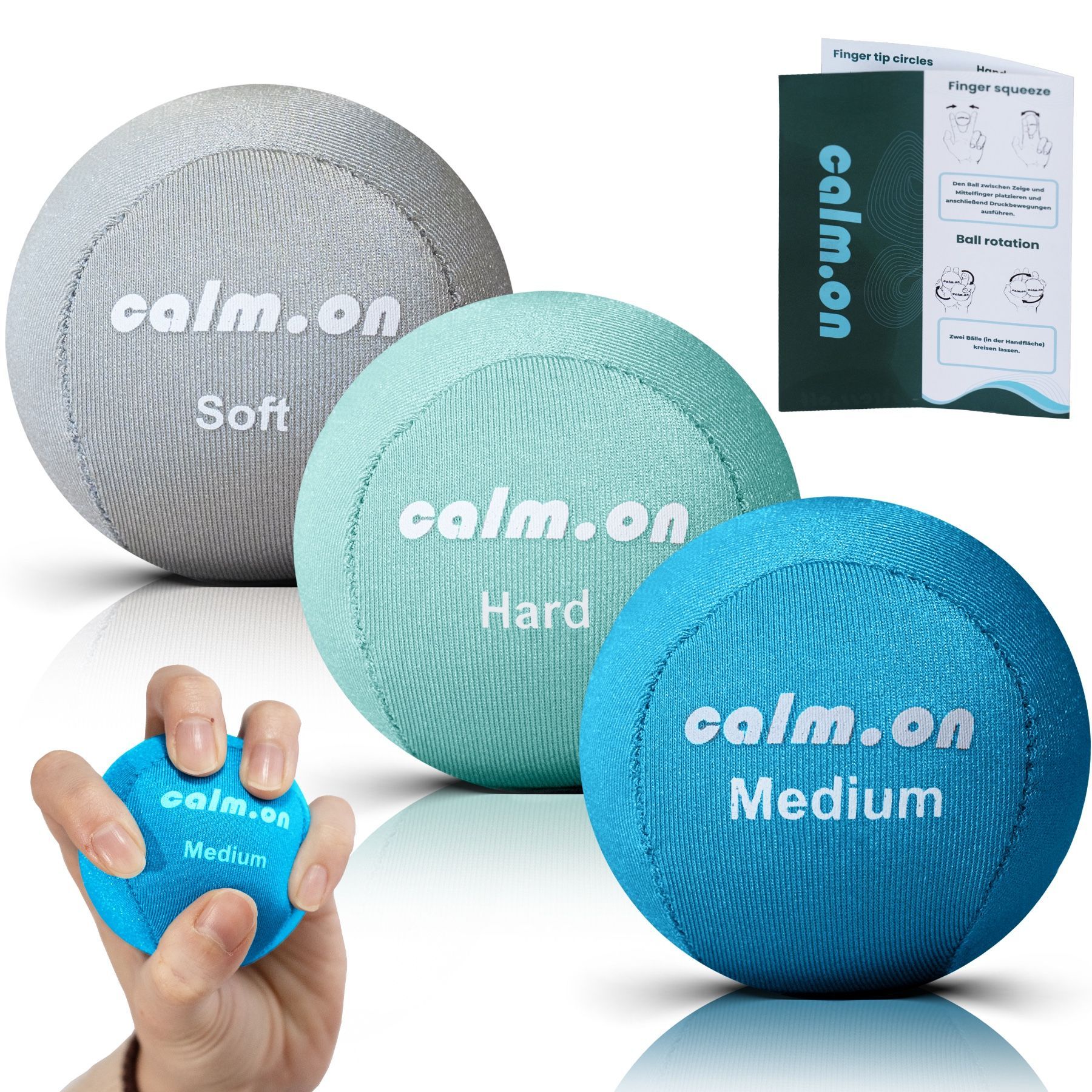 Calm. on, Anti Stress Bälle, Stressball, Handtrainer und Fingertrainer