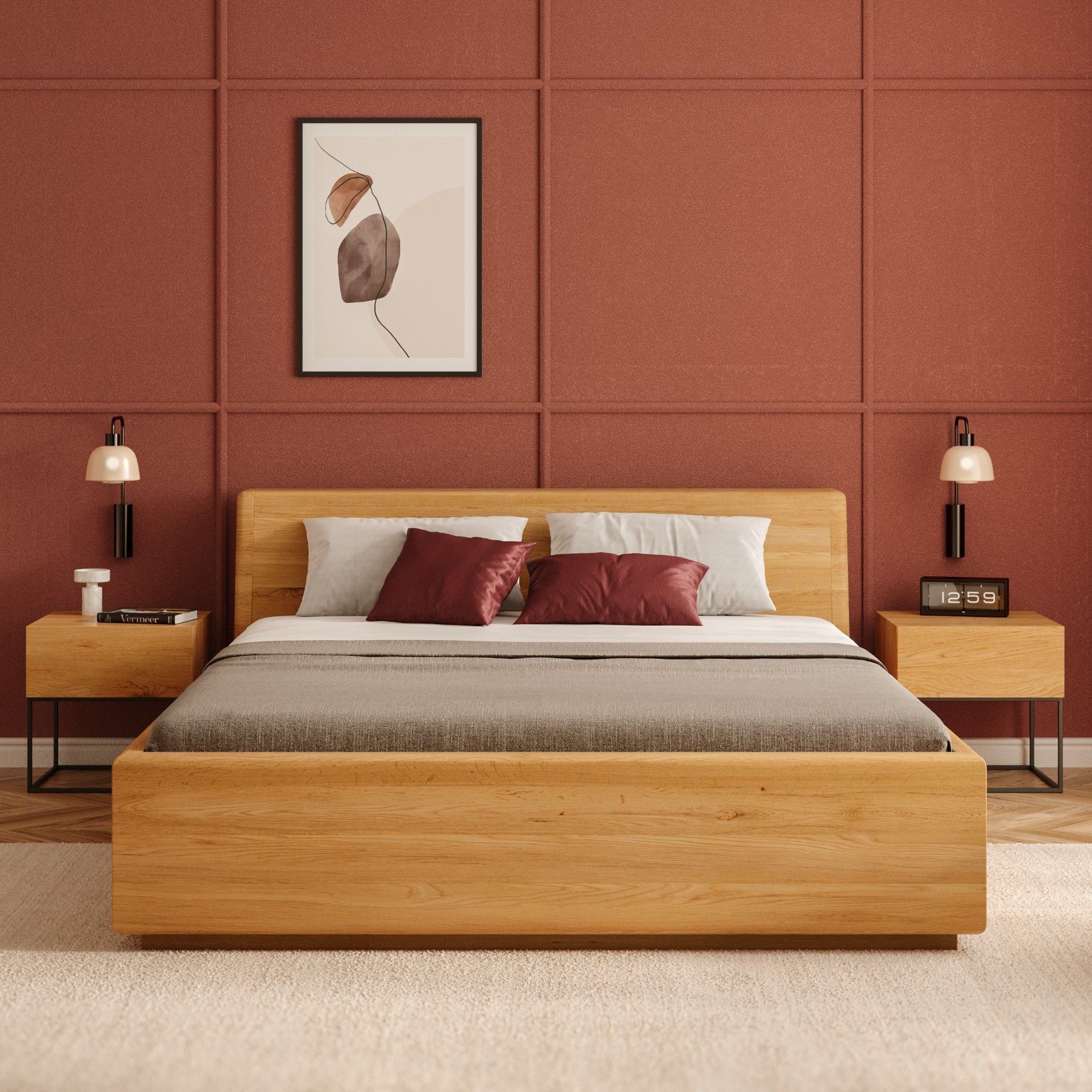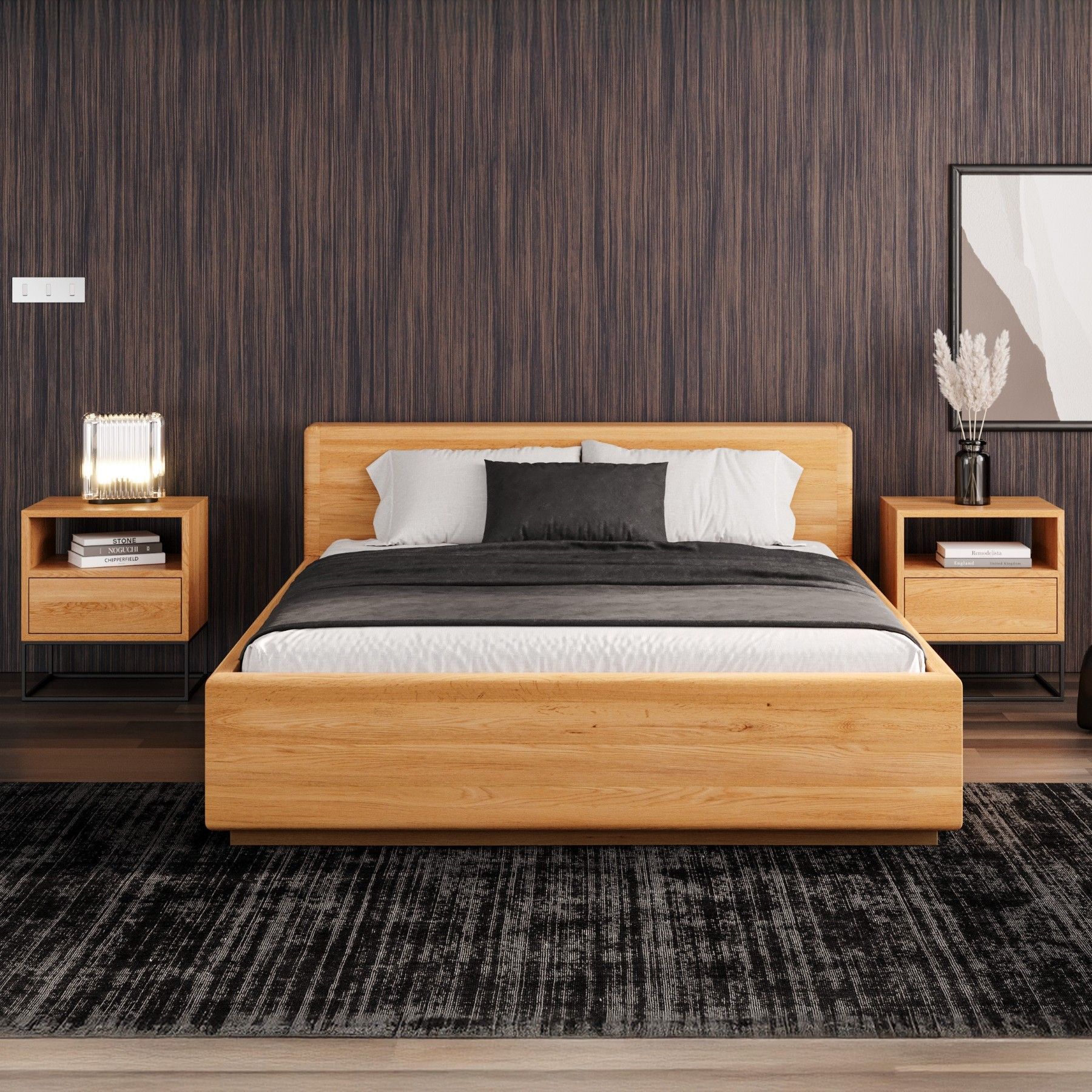 Calma Bett mit Stauraum aus massivem Eichenholz