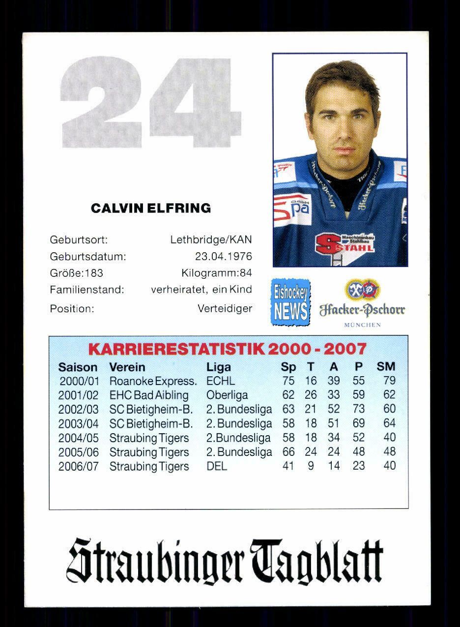 Calvin Elfring Straubing Tigers 2007-08 Original Signiert + A 221989