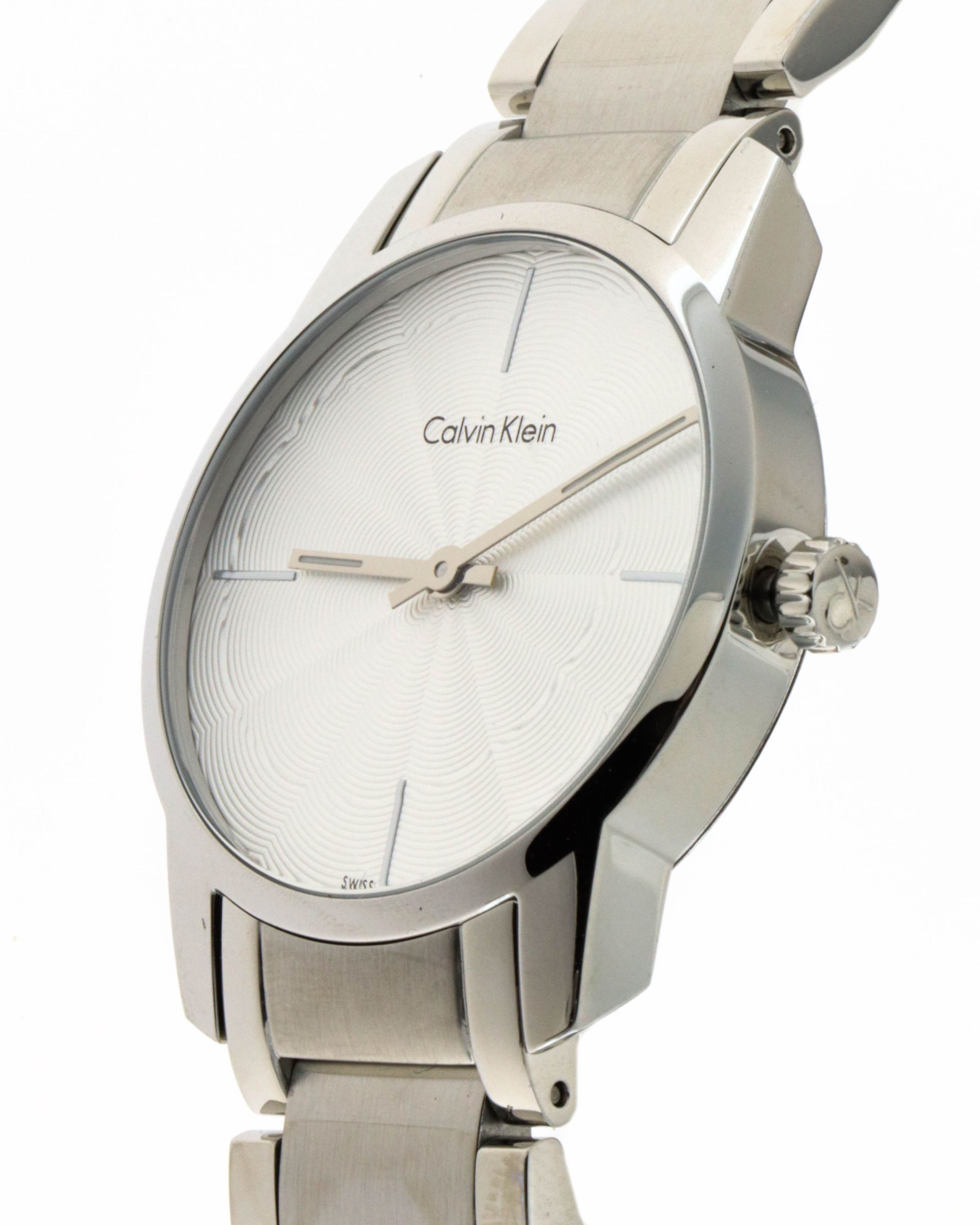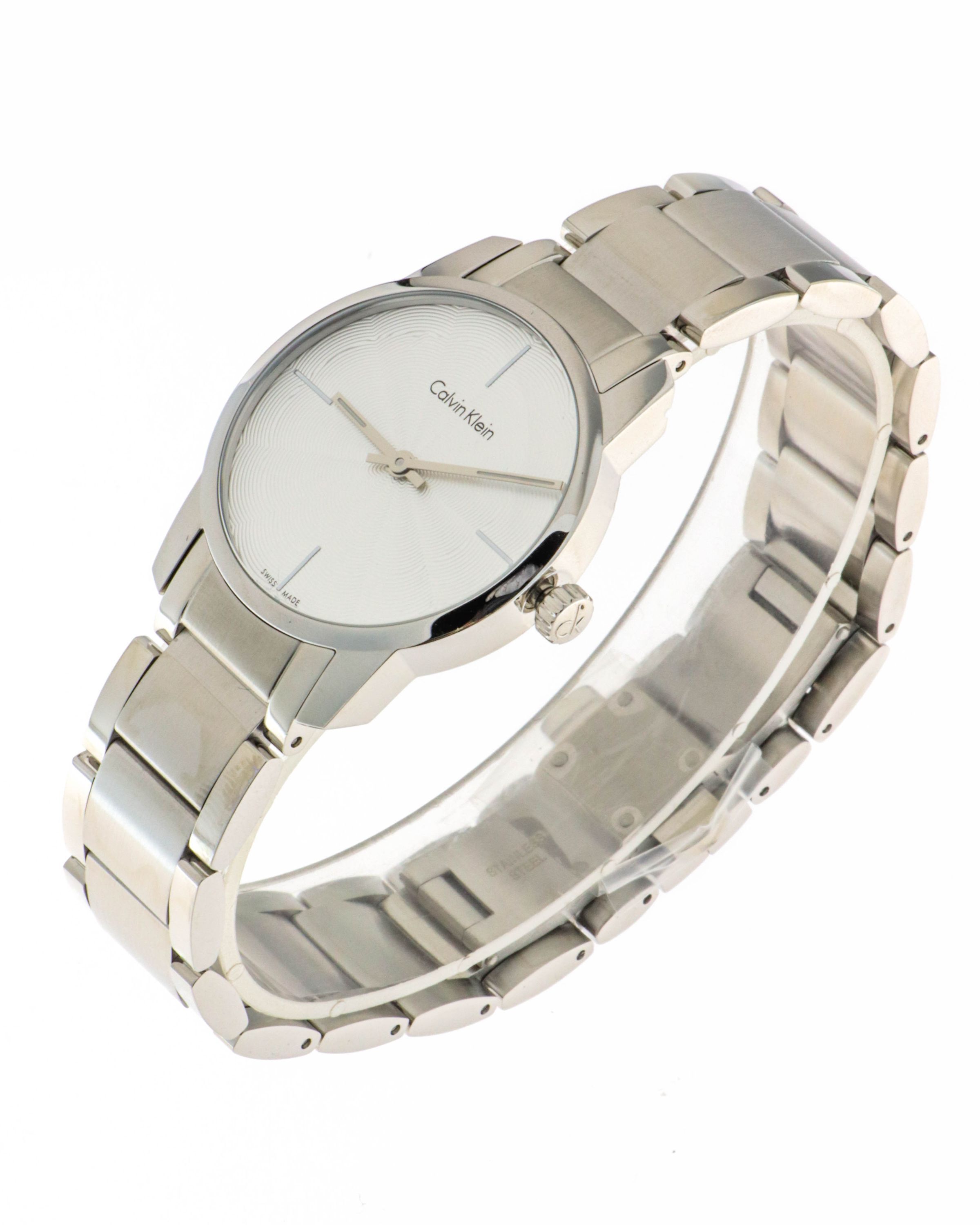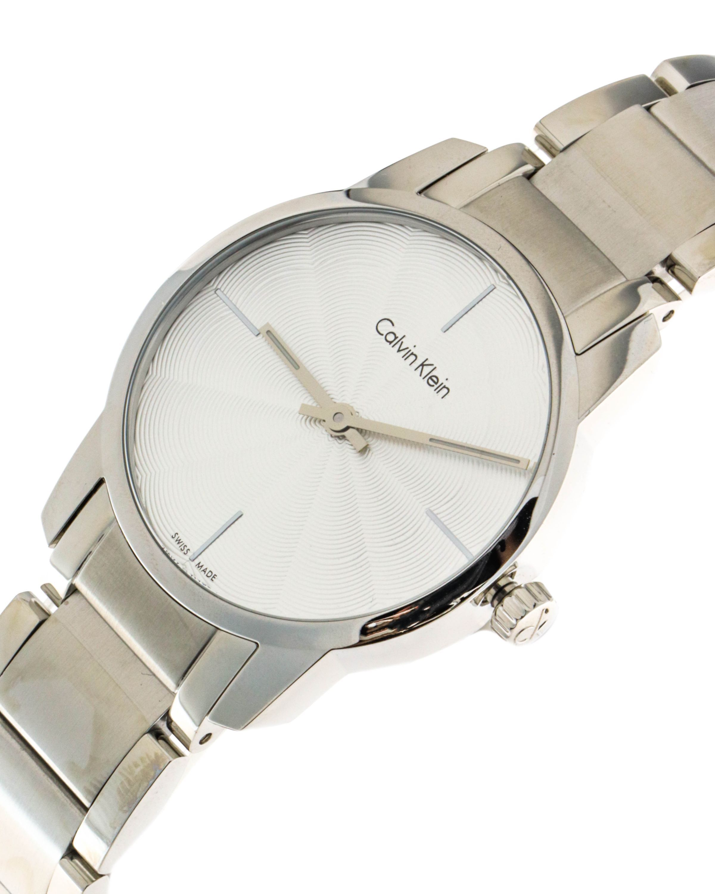 Marke: Calvin Klein Referenz: K2G23146 Geschlecht: Mann, Frau Ladezustand: Quarz Zifferblattfarbe: Silber Gehäusematerial: Stahl Armbandmaterial: Stahl Produktionsjahr: 2024 Bandfarbe: Silber Verschluss: Butterfly Verschluss Material: Stahl Gehäusedurchmesser: 31 mm Gehäusehöhe: - Wasserbeständigkei