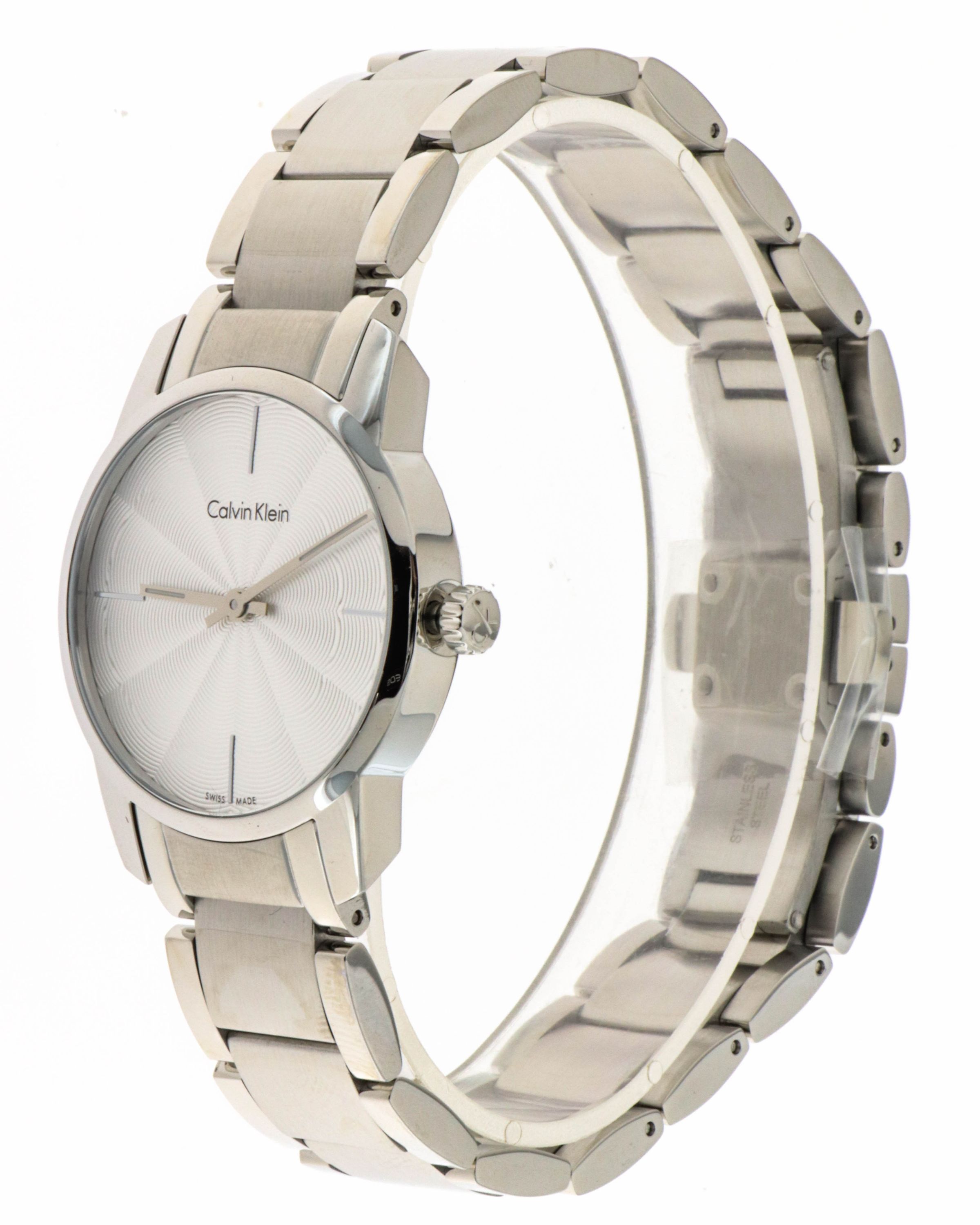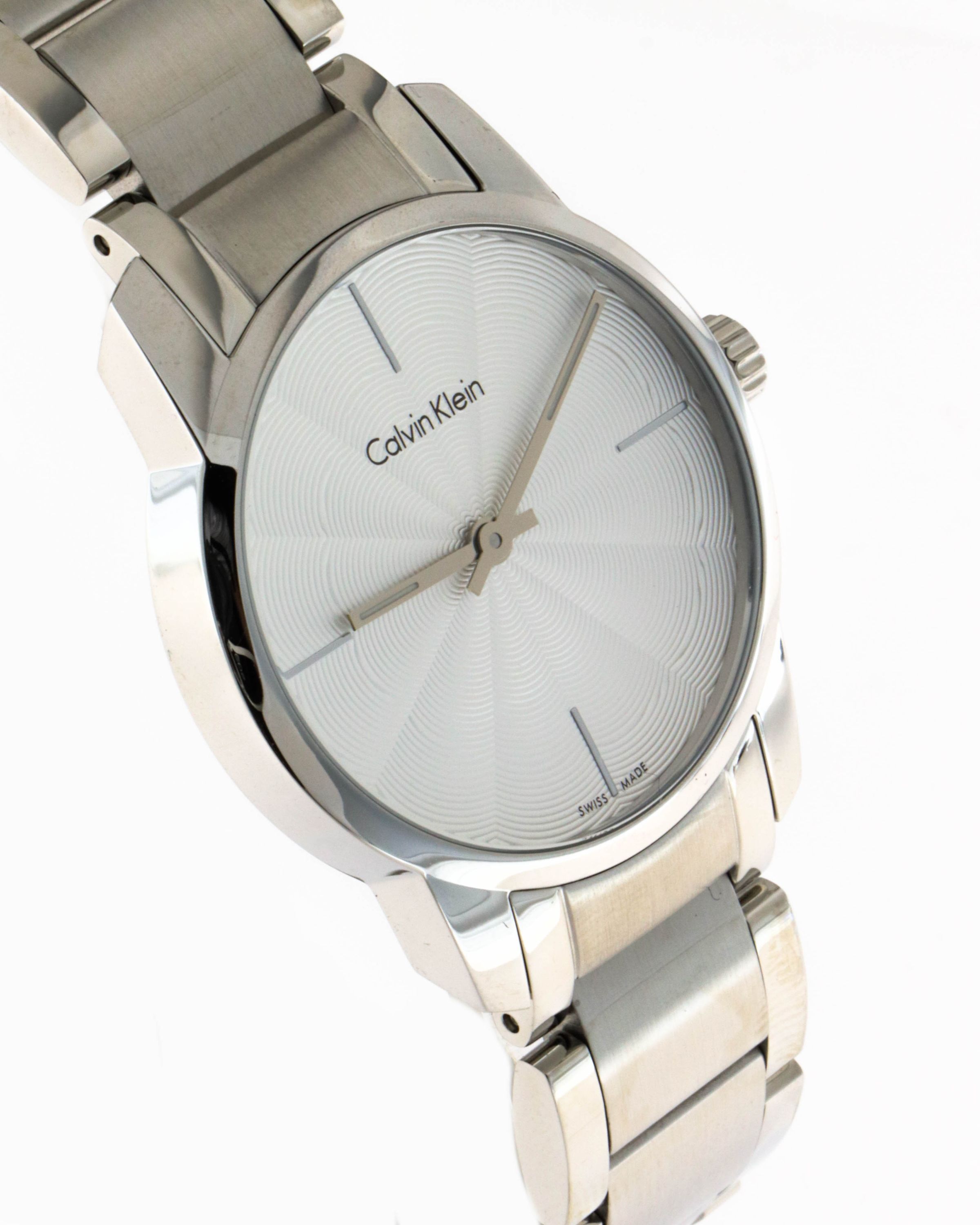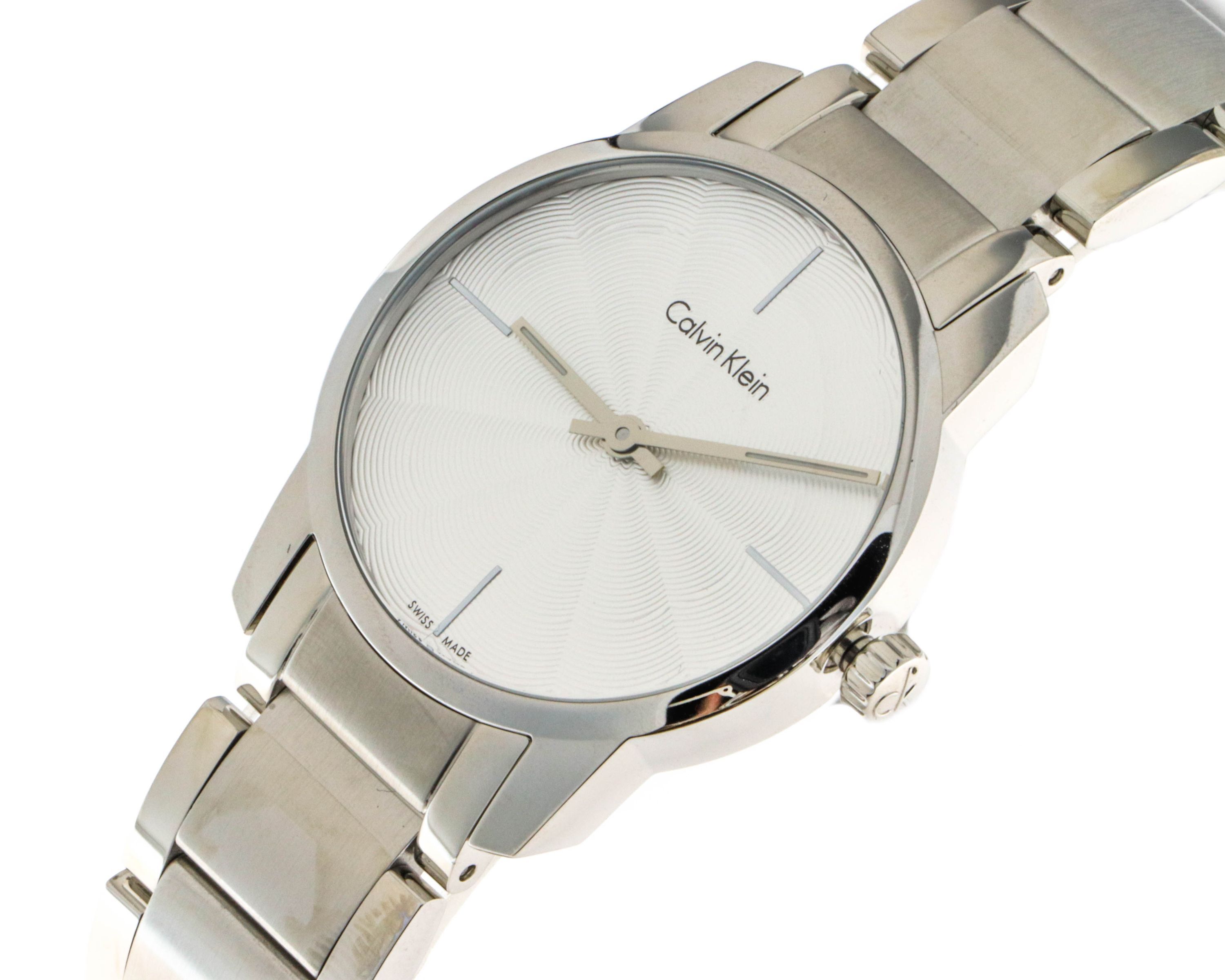 Marke: Calvin Klein Referenz: K2G23146 Geschlecht: Mann, Frau Ladezustand: Quarz Zifferblattfarbe: Silber Gehäusematerial: Stahl Armbandmaterial: Stahl Produktionsjahr: 2024 Bandfarbe: Silber Verschluss: Butterfly Verschluss Material: Stahl Gehäusedurchmesser: 31 mm Gehäusehöhe: - Wasserbeständigkei