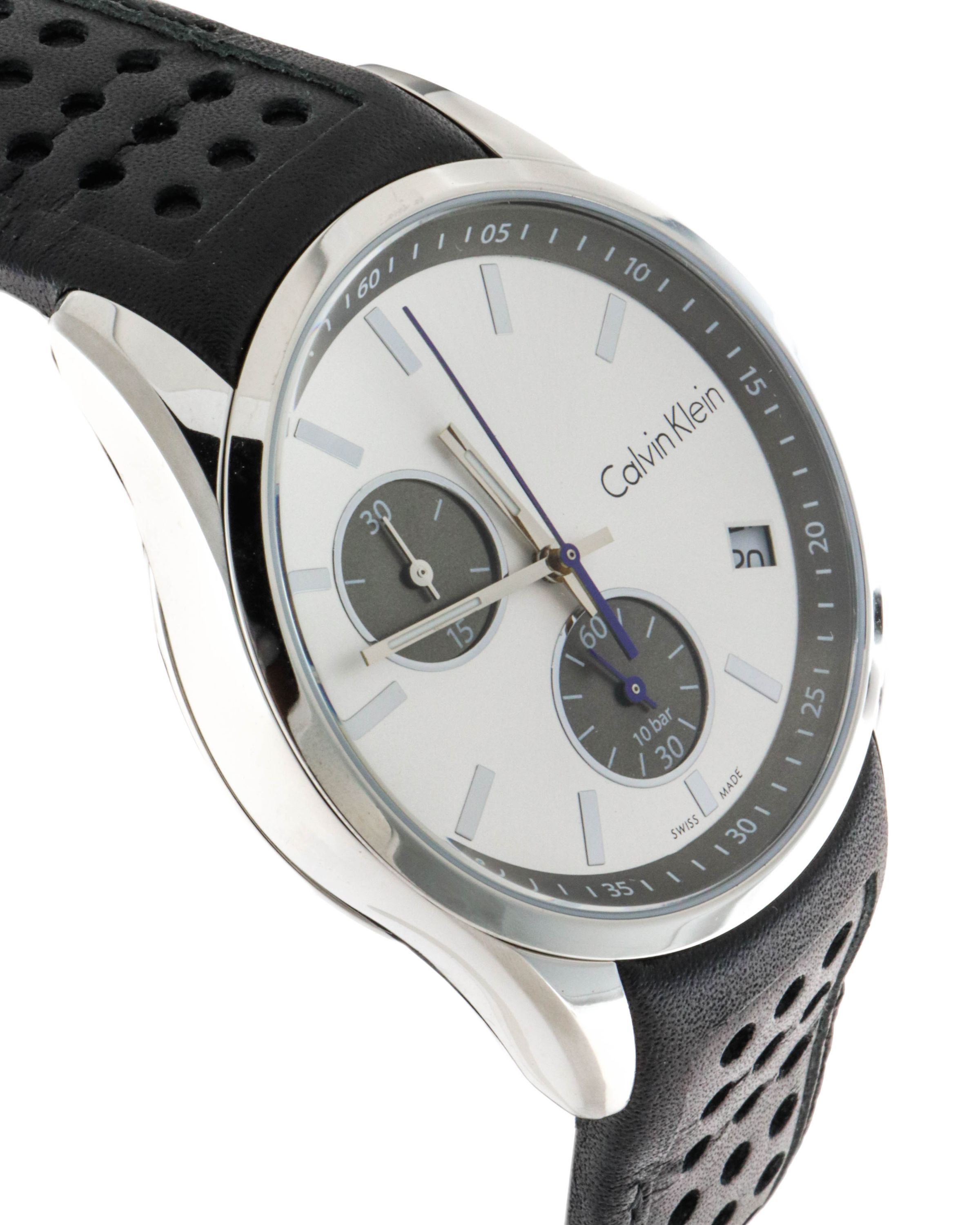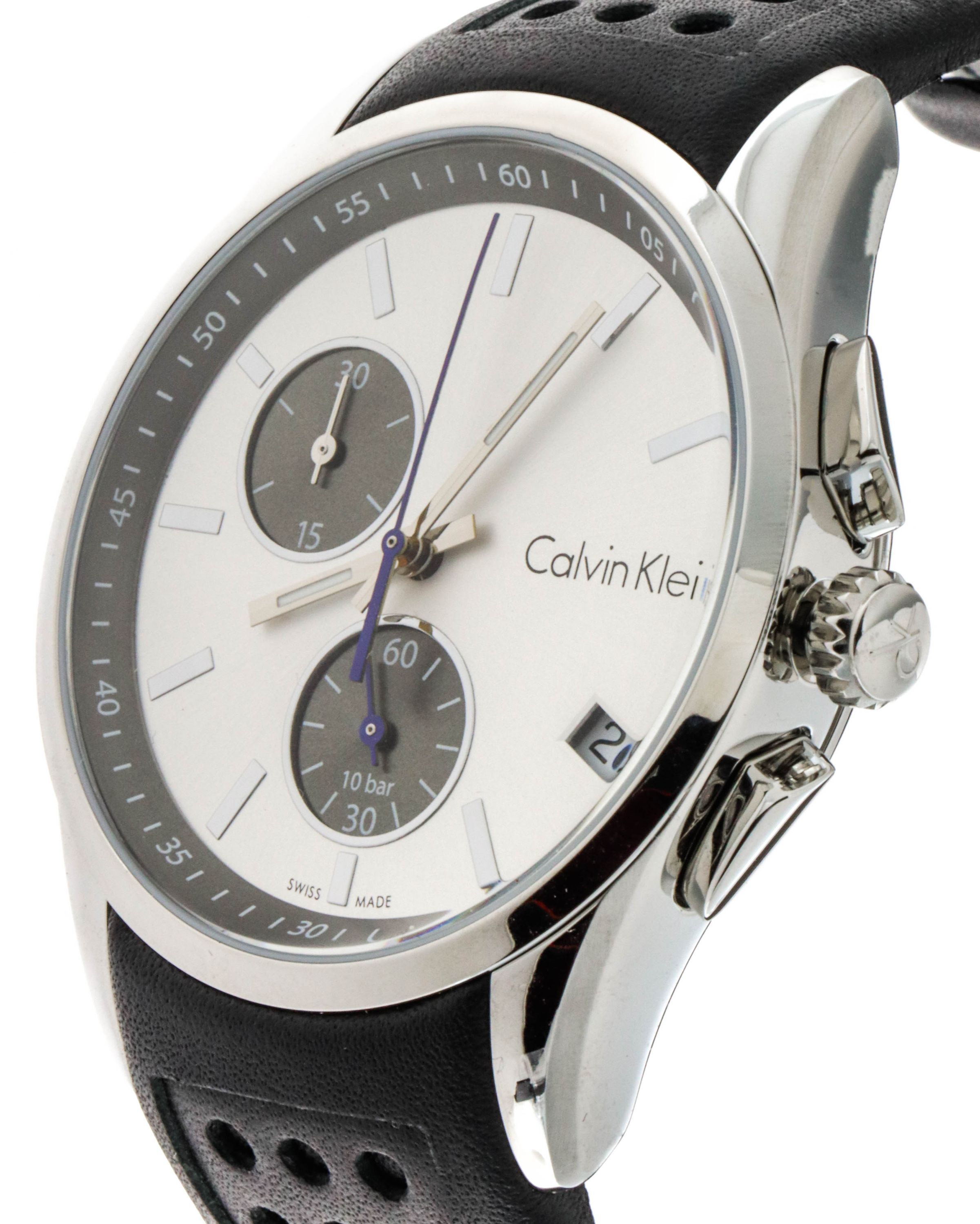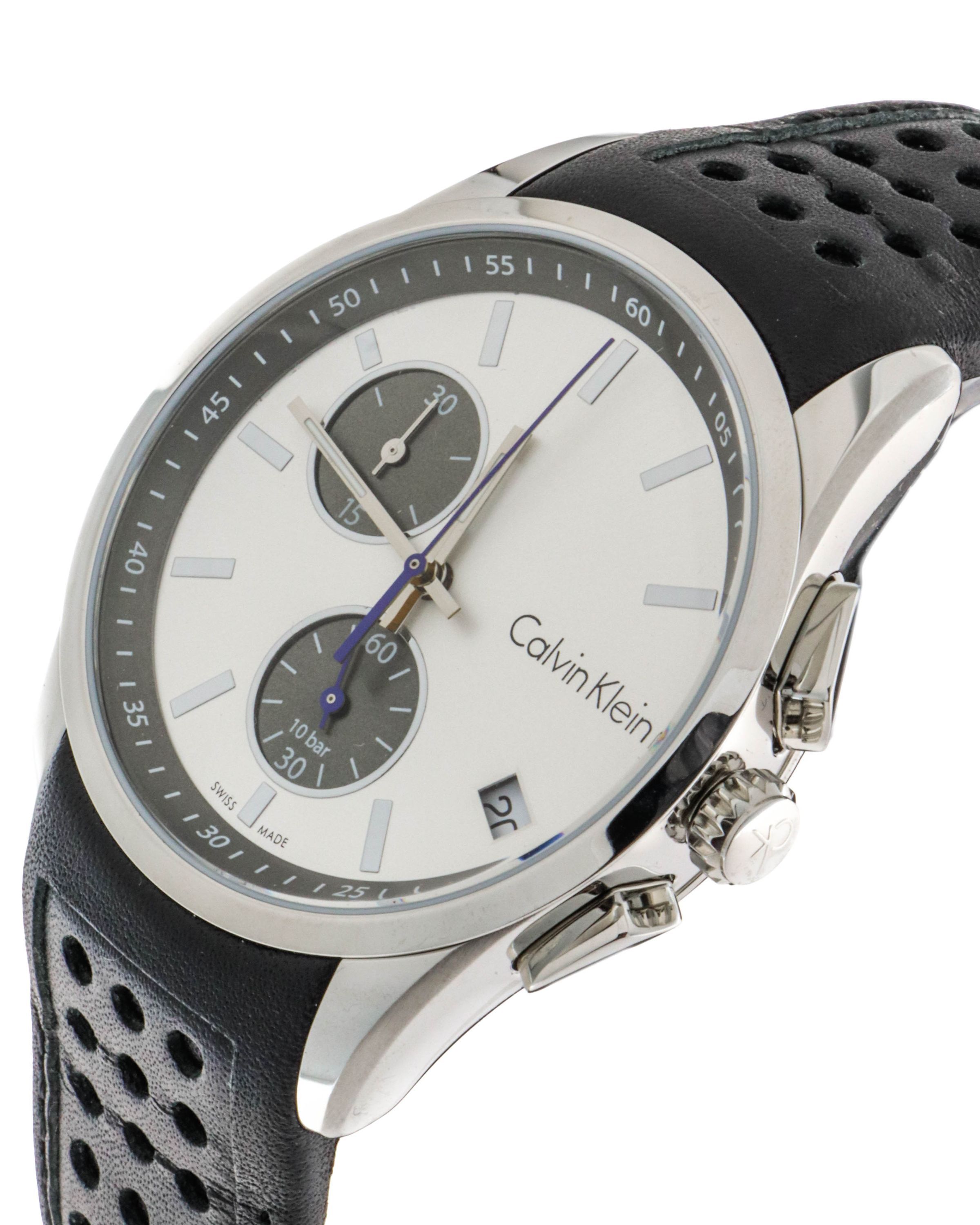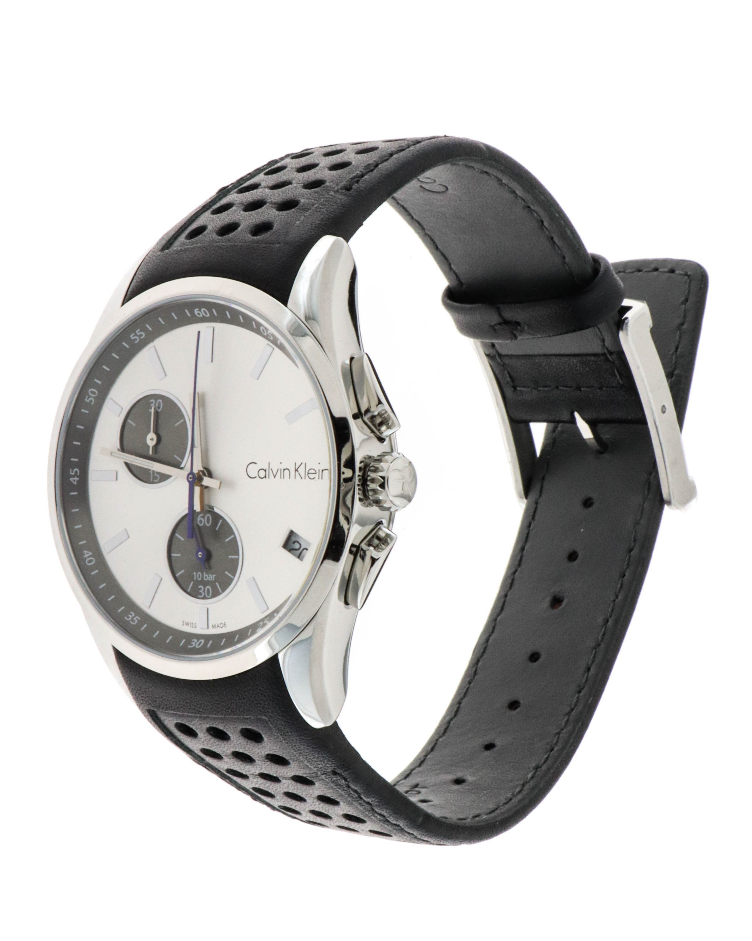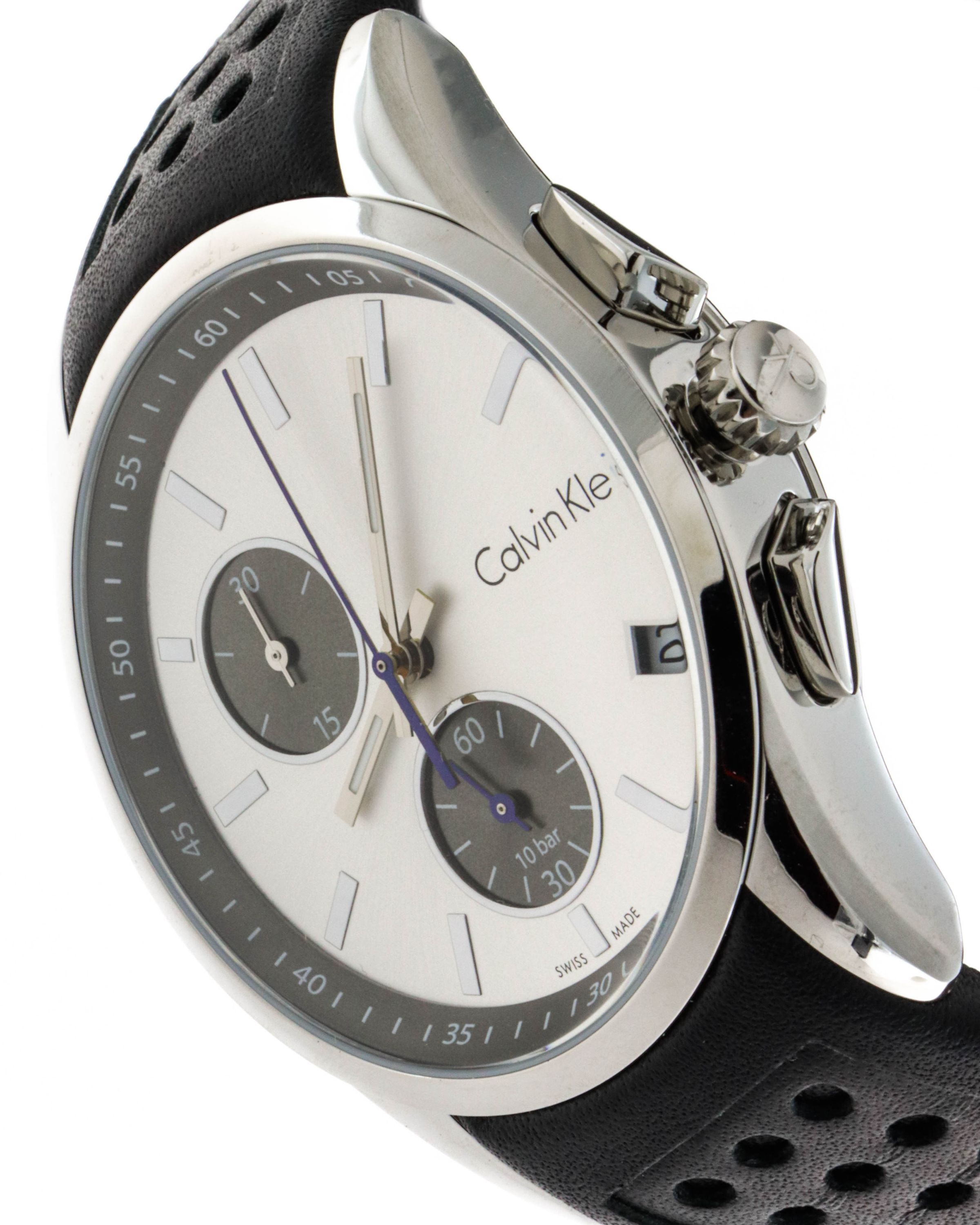 Marke: Calvin Klein Referenz: K5A371C6 Geschlecht: Mann, Frau Ladezustand: Quarz Zifferblattfarbe: Silber Gehäusematerial: Stahl Bandmaterial: Leder Produktionsjahr: 2024 Bandfarbe: Schwarz Verschluss: Widerhaken Verschlussmaterial: Stahl Gehäusedurchmesser: 41 mm Gehäusehöhe: - Wasserbeständigkeit: