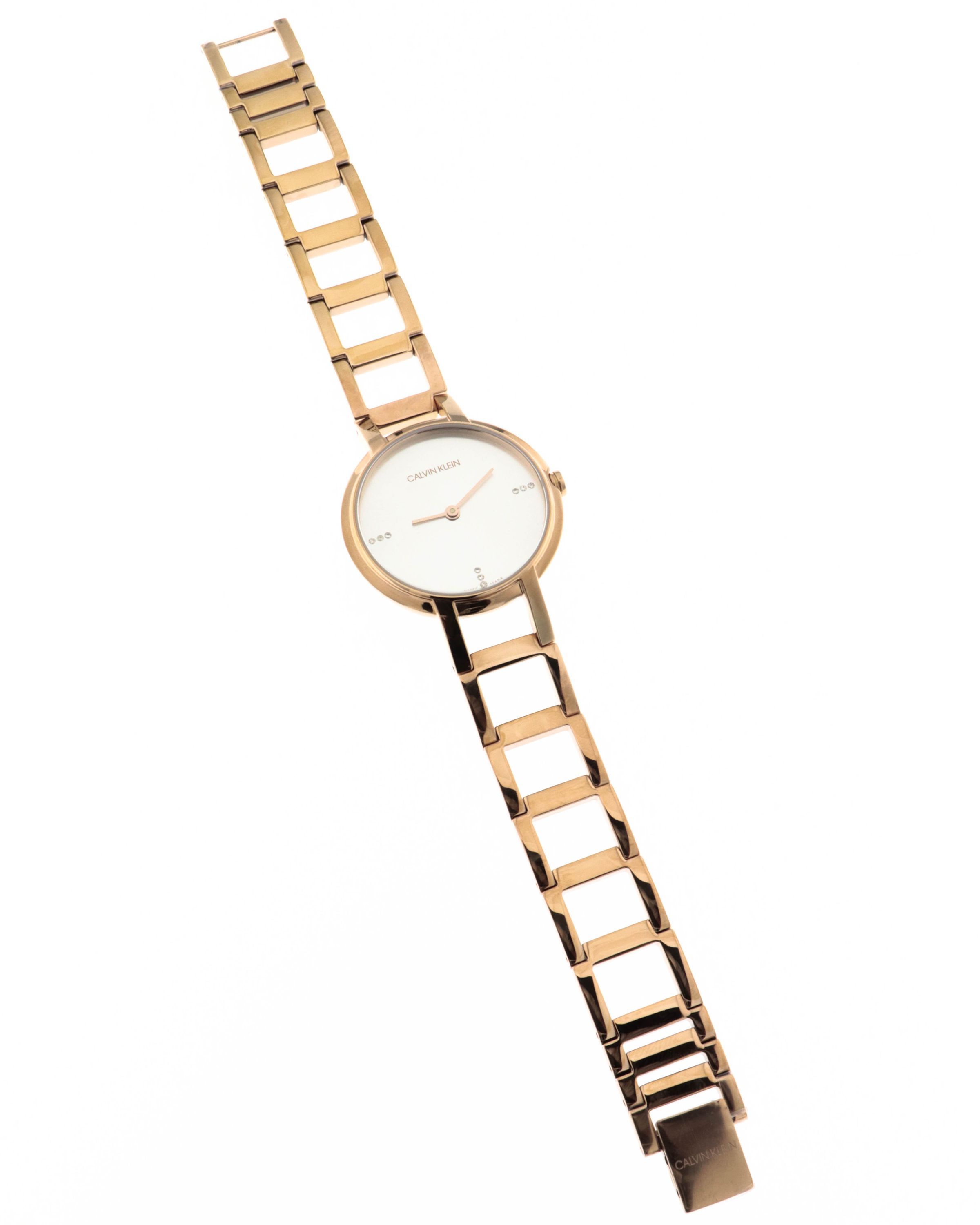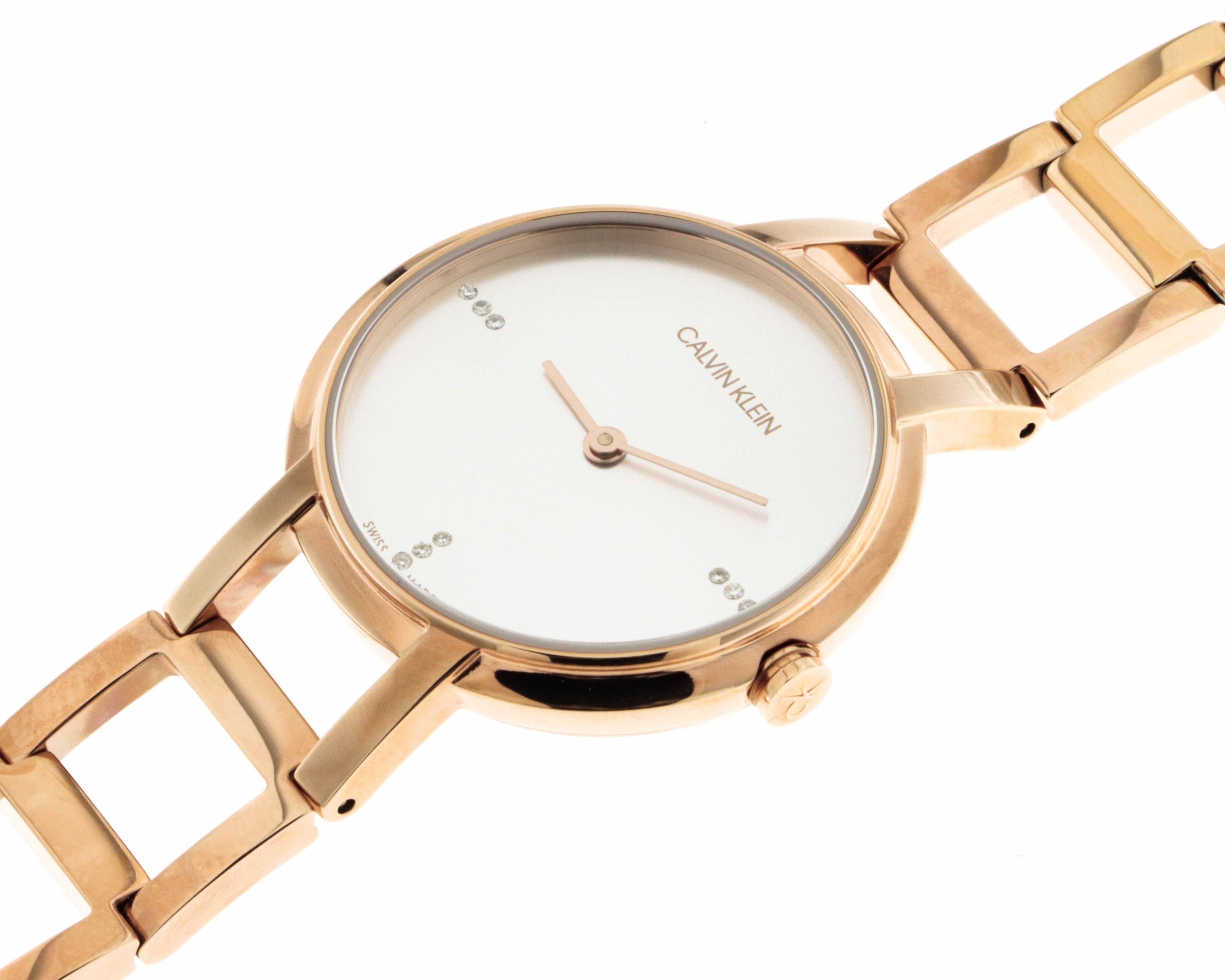 Marke: Calvin Klein Referenz: K8N2364W Geschlecht: Mann, Frau Ladezustand: Quarz Zifferblattfarbe: Silber mit Steinen Gehäusematerial: Stahl Armbandmaterial: Stahl Produktionsjahr: 2024 Armbandfarbe: Roségold Verschluss: Schmuckschließe Verschlussmaterial: Stahl Gehäusedurchmesser: 32 mm Gehäusehöhe