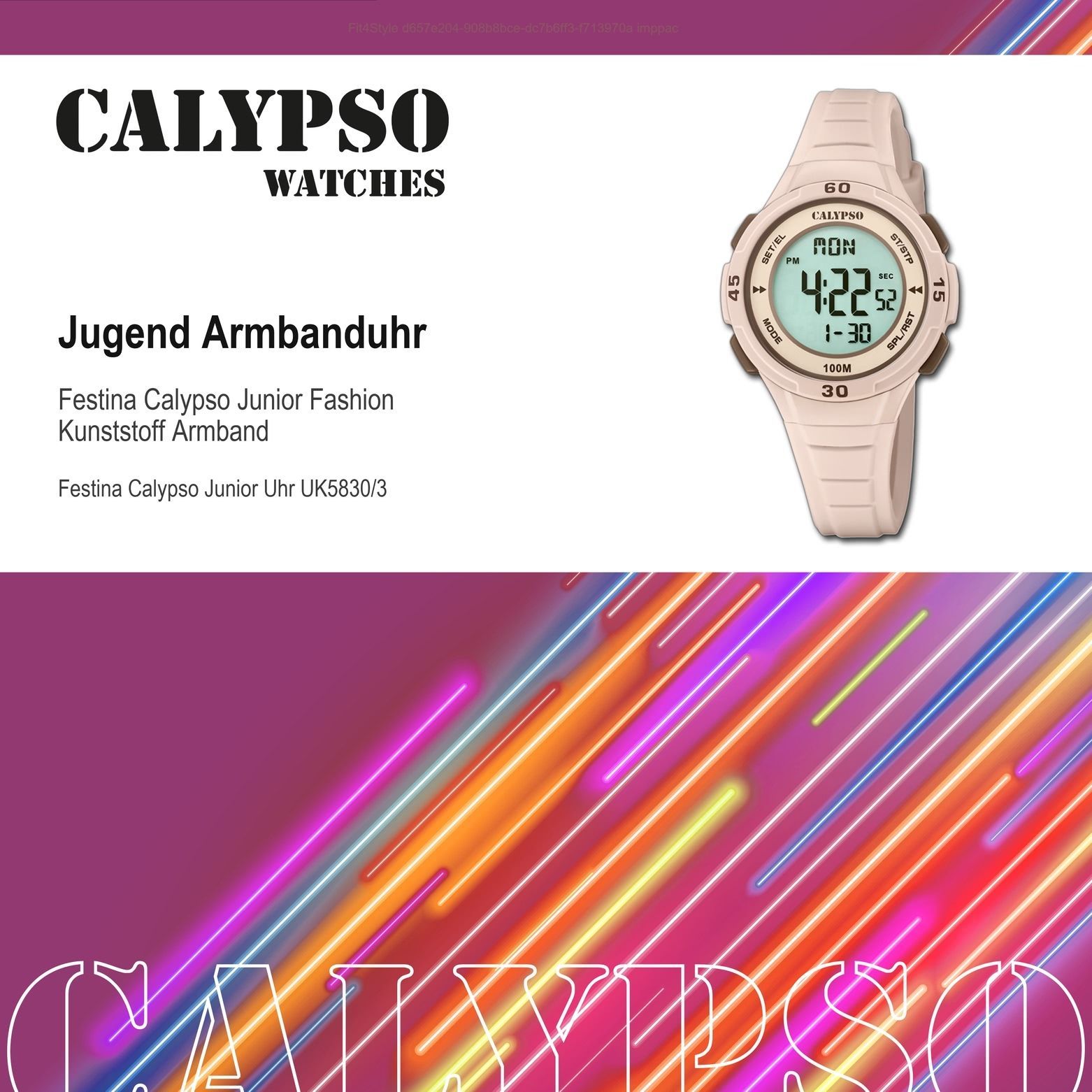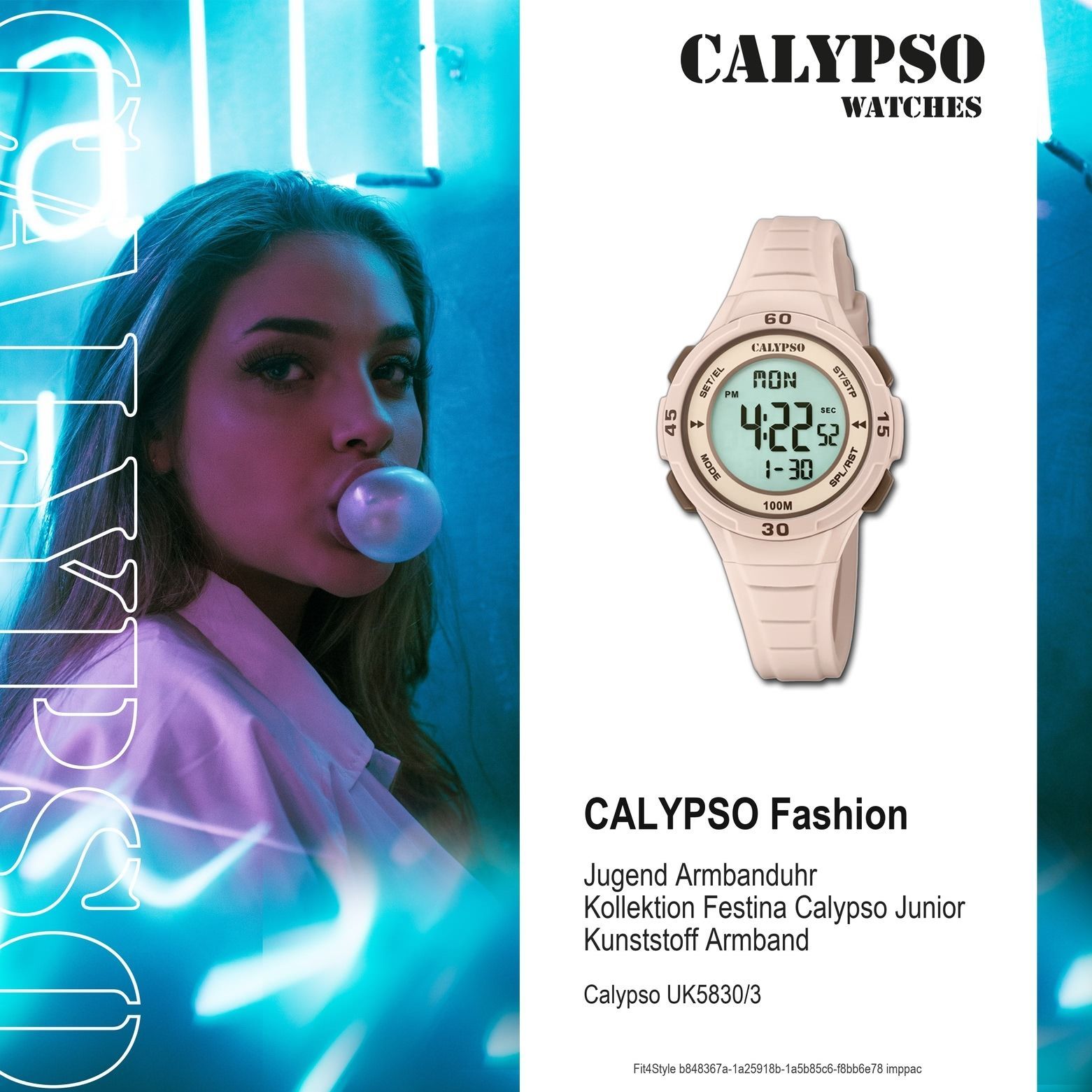 Calypso Jugenduhr Kunststoff rosa Calypso Junior Armbanduhr UK5830 3 Diese einzigartige Uhr für Jugend aus der aktuellen Calypso Junior Kollektion garantiert hohen Tragekomfort durch das hochwertige Kunststoff-Armband in rosa. Die Armbanduhr mit digitaler Anzeige und präzisem Armbanduhr ist ein zuve