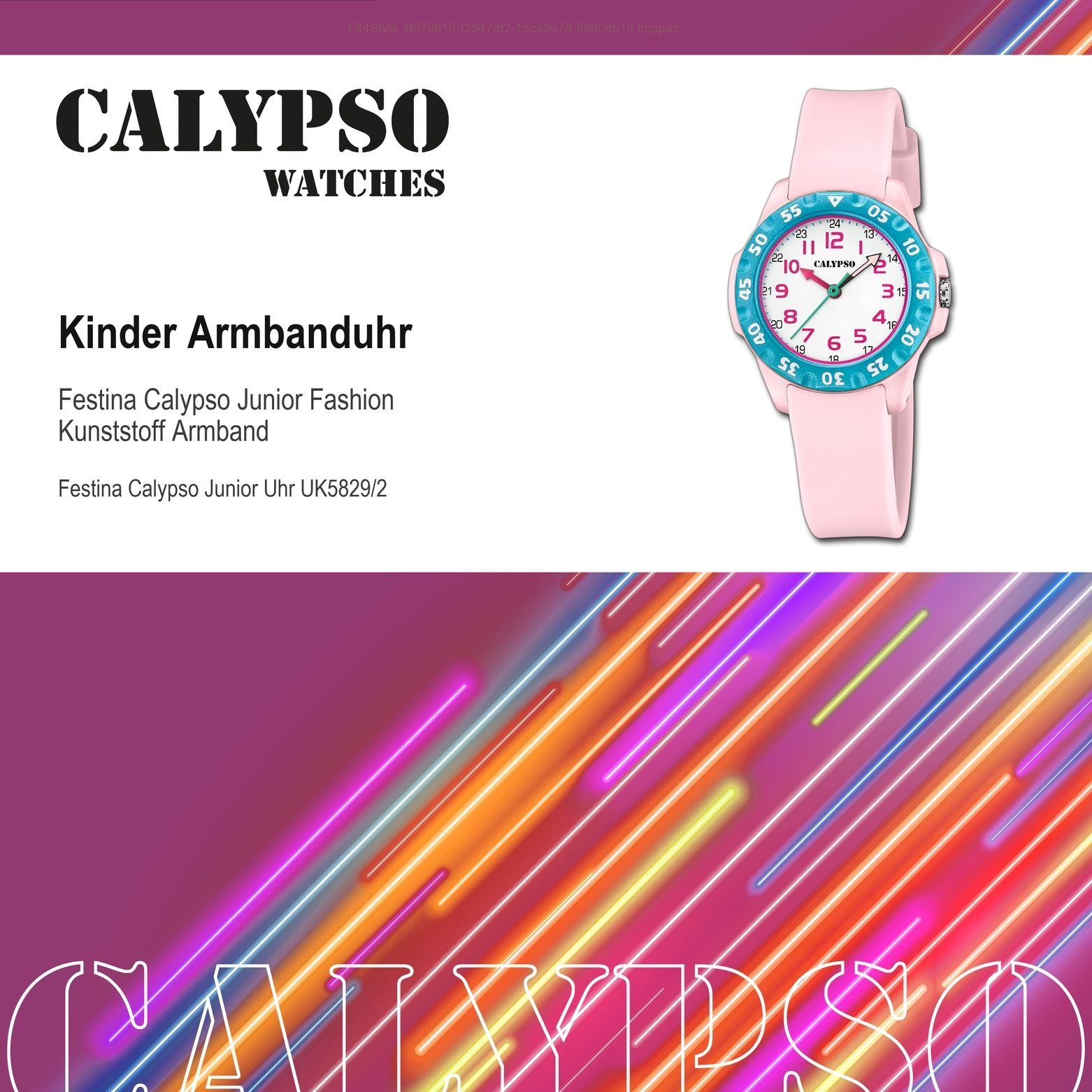Calypso Kinderuhr Kunststoff rosa Calypso Junior Armbanduhr UK5829 2 Diese einzigartige Uhr für Kinder aus der aktuellen Calypso Junior Kollektion garantiert hohen Tragekomfort durch das hochwertige Kunststoff-Armband in rosa. Die Armbanduhr mit analoger Anzeige und präzisem Armbanduhr ist ein zuver