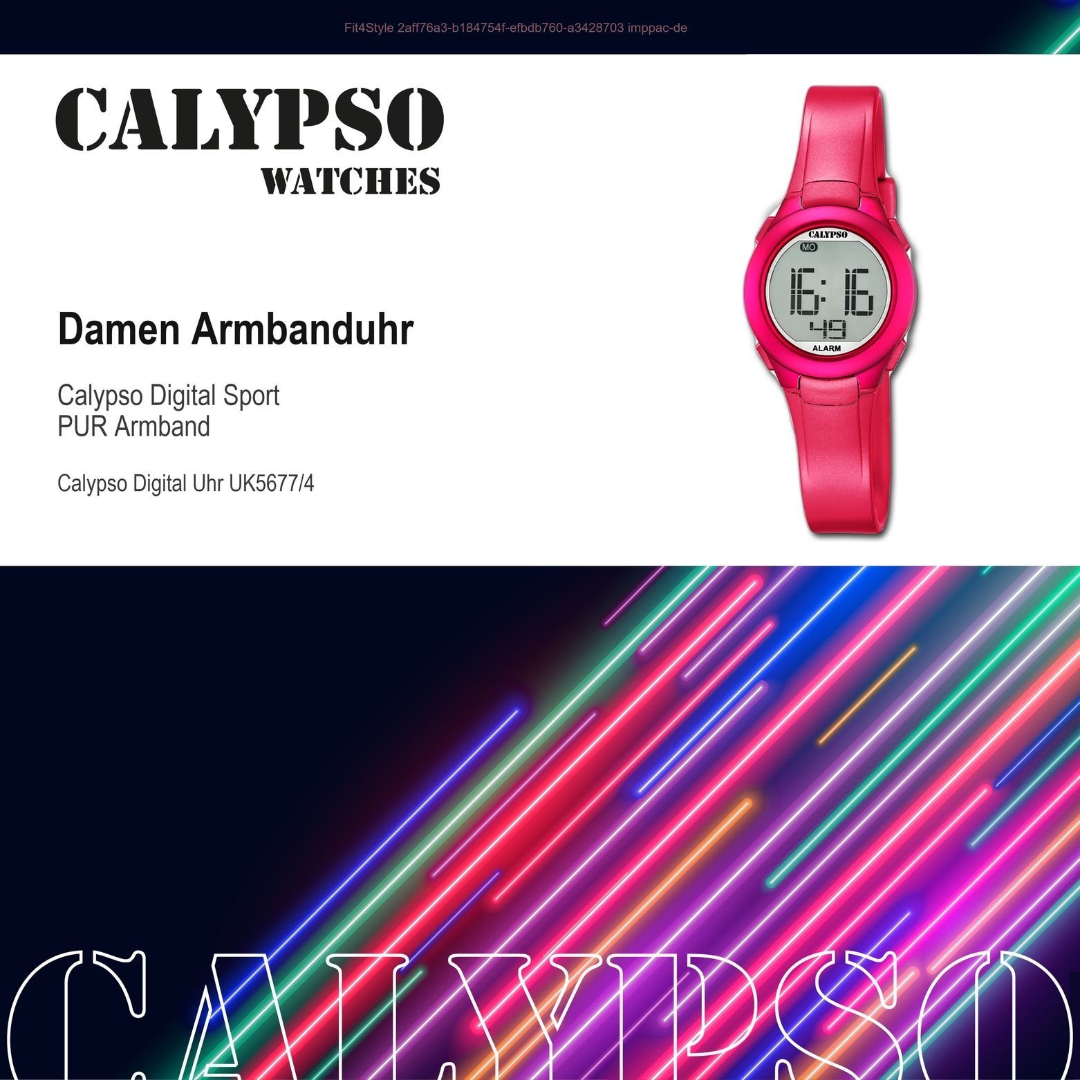 Calypso Kunststoff PUR Damen Uhr K5677/4 Armbanduhr pink Digital UK5677/4