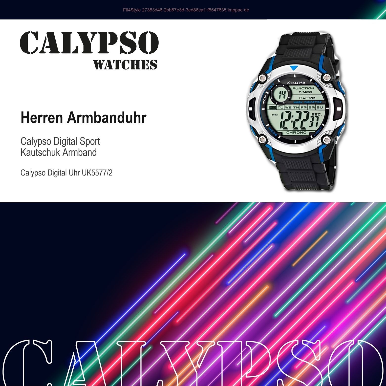 Calypso Kunststoff PUR Herren Uhr K5577/2 Armbanduhr schwarz Digital UK5577/2