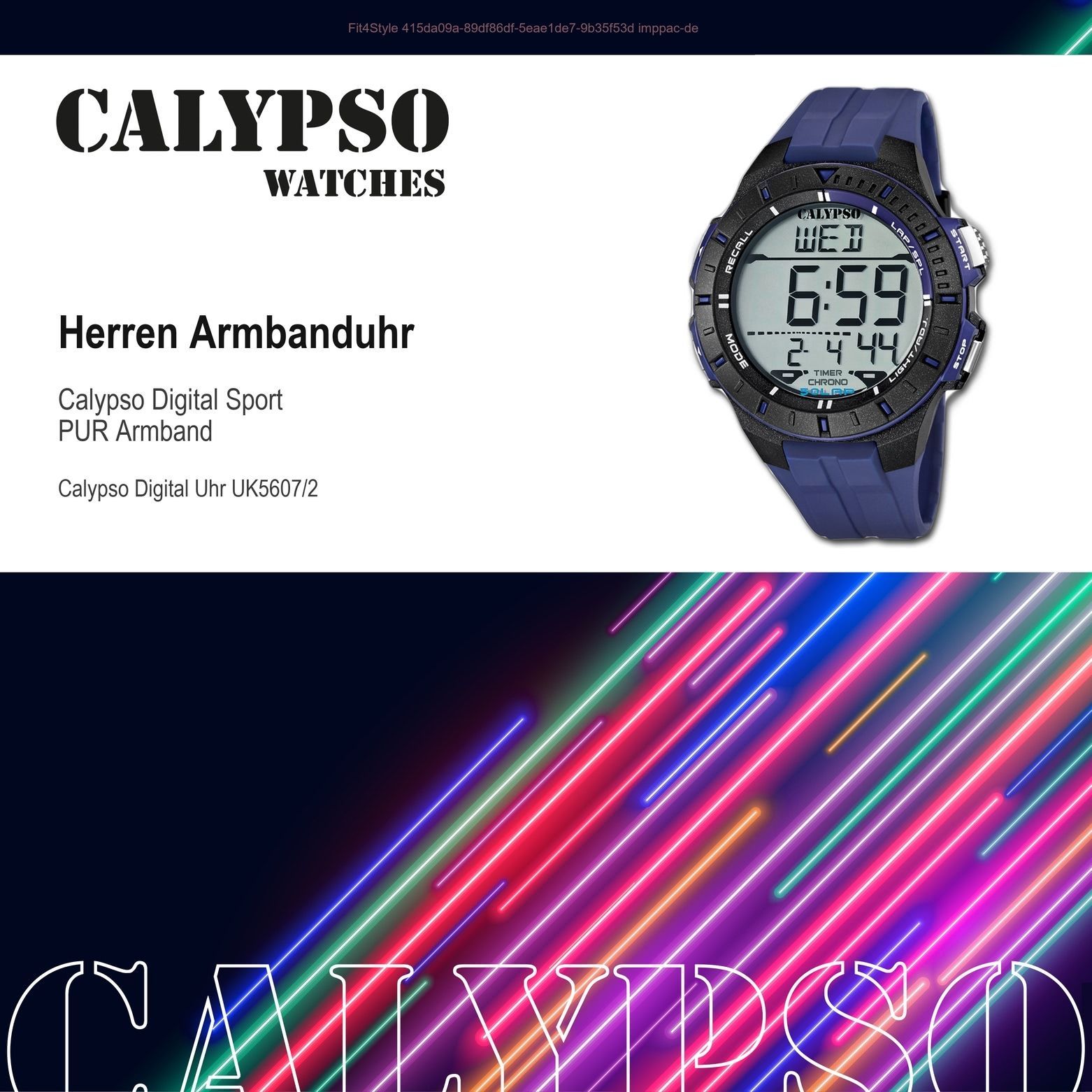 Calypso Kunststoff PUR Herren Uhr K5607/2 Armbanduhr blau Digital UK5607/2