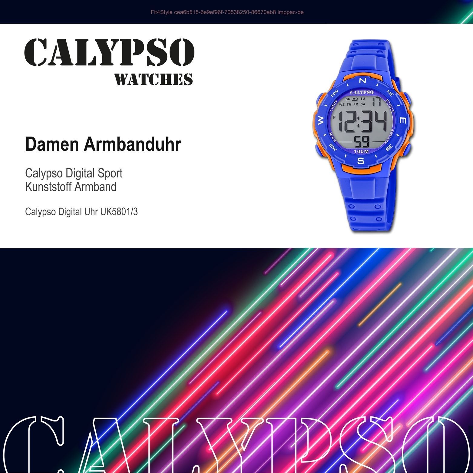 Calypso Kunststoff Unisex Uhr K5801/3 Digital Sport Armbanduhr blau UK5801/3