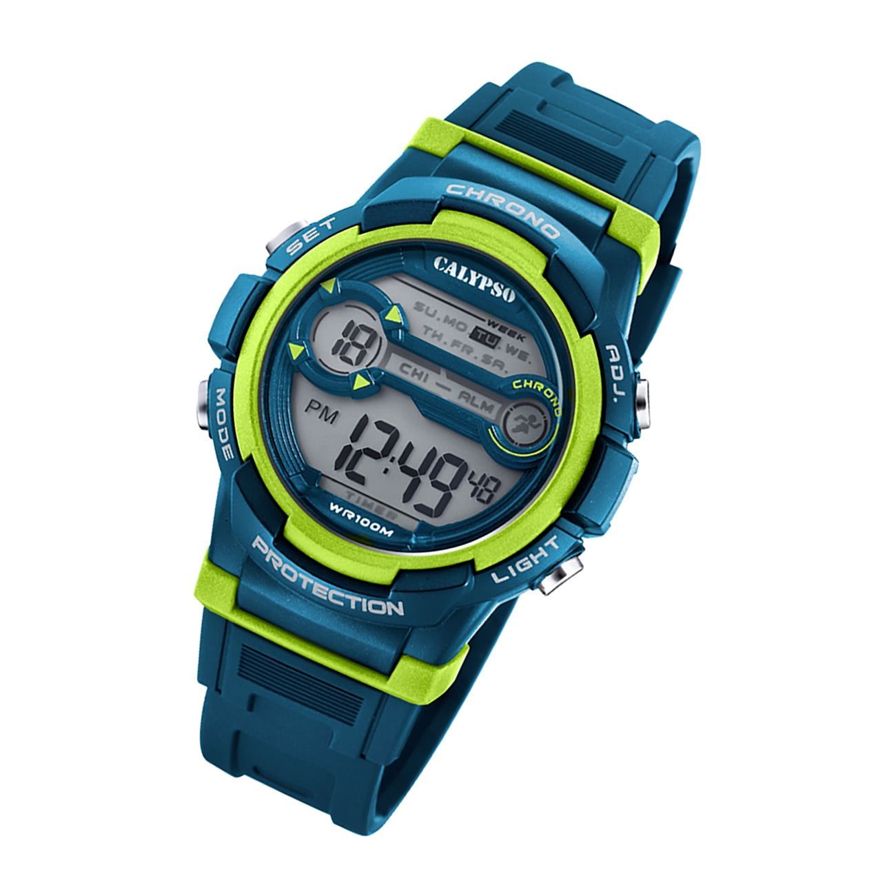 Calypso PU Jugend Uhr K5808/3 Digital Armbanduhr dunkelblau hellgrün UK5808/3
