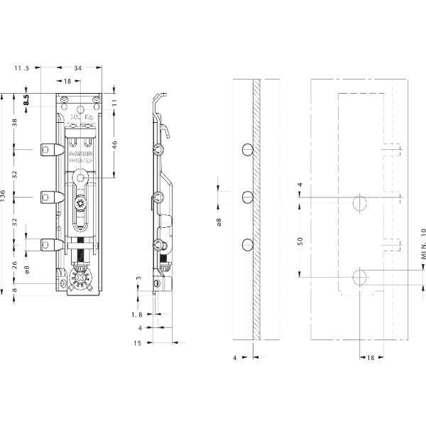 CAMAR Schrankaufhänger 817 rechts H 18mm T 25mm Stahl verzinkt/Zamak