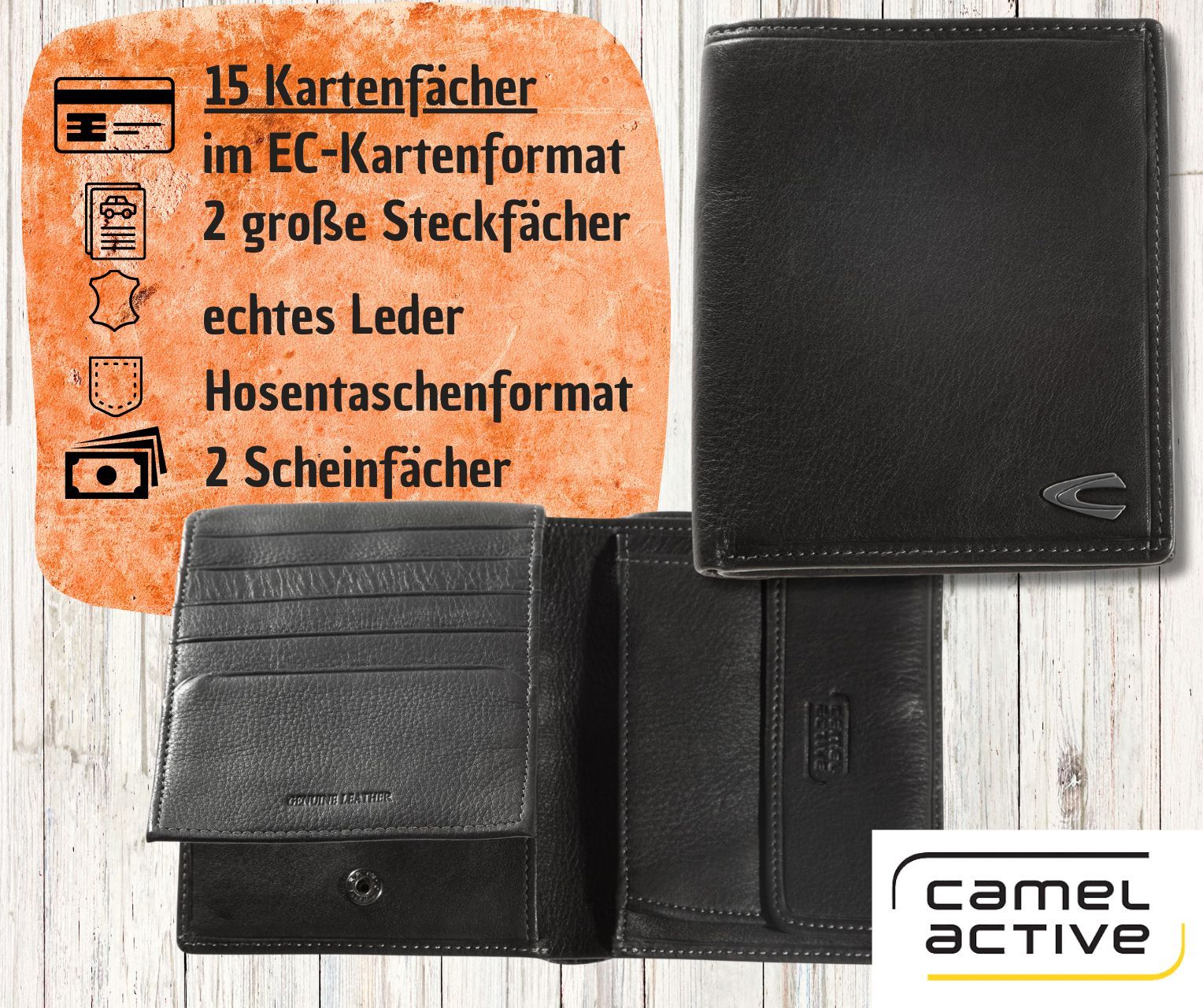 camel active camel active Herrenbörse Brieftasche Ledergeldbörse hochformat schwarz black vegas