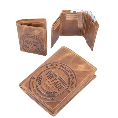• Vintage Kombibörse Herrenbörse braun Leder Hochformat mit RFID-Schutz