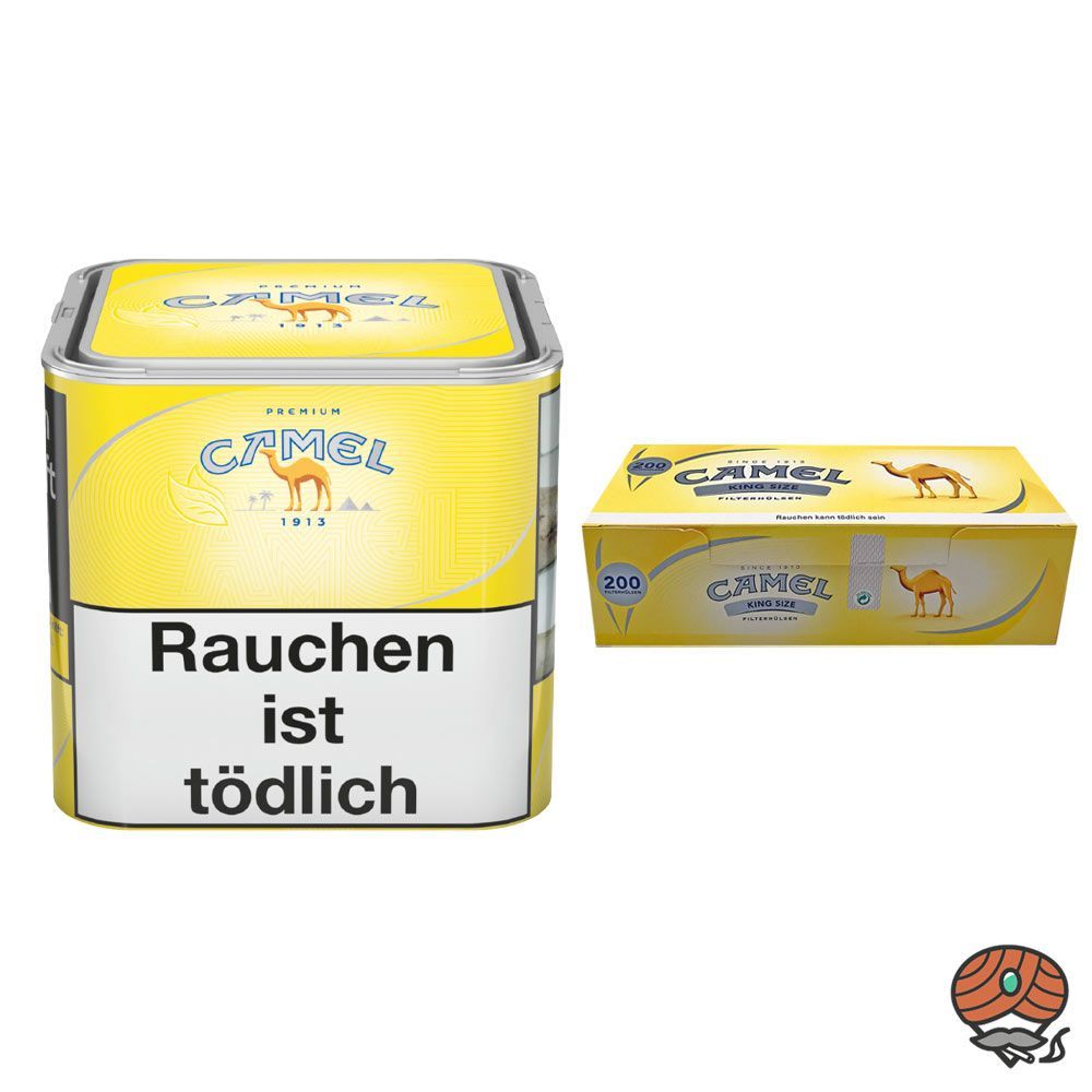 Camel Yellow Gelb Feinschnitttabak Tabak Dose + 200 Camel King Size Filterhülsen Tabak: Camel Feinschnitt Tabak eignet sich optimal zum Stopfen mit der Maschine und zum Drehen von Zigaretten per Hand oder mit der Maschine. Der Tabak besteht aus dunklem Feinschnitttabak = American Blend, bestehend au