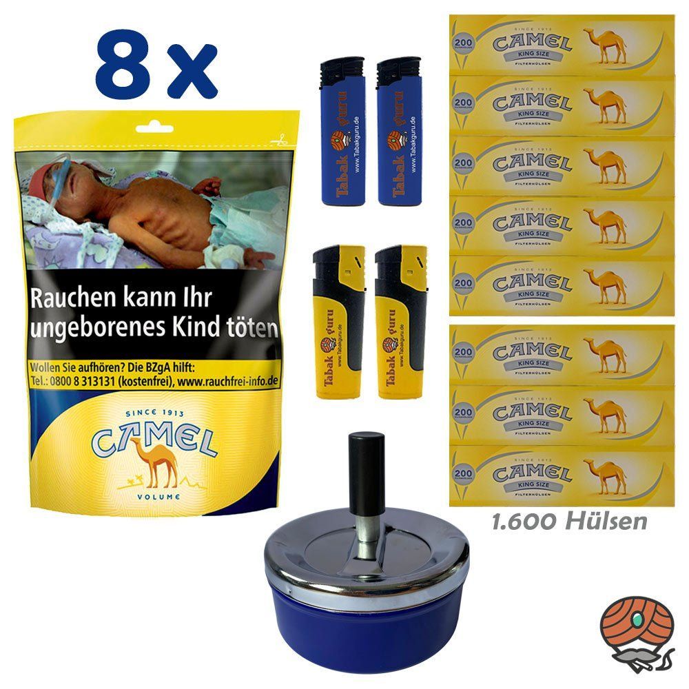 Camel Volumentabak Beutel 8x 96g + 1600 Hülsen + Drehascher + Feuerzeuge