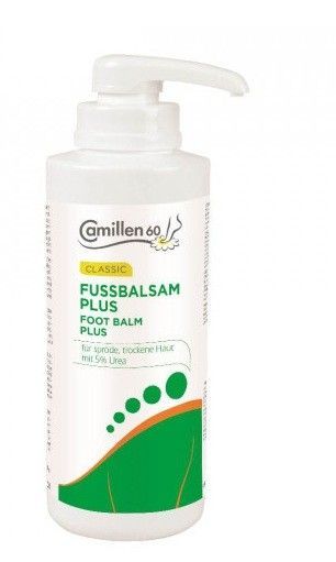 Camillen 60 - FUSSBALSAM PLUS 500ml - mit Spender - 5% Harnstoff (Urea) Mit seinem höheren Fettgehalt und 5% Harnstoff (Urea) ist Fussbalsam Plus besonders für spröde, trockene Haut geeignet. Er wirkt belebend und angenehm frisch auf beanspruchte Füße. Die Haut wird weich, geschmeidig und wird vor Wundscheuern geschützt.