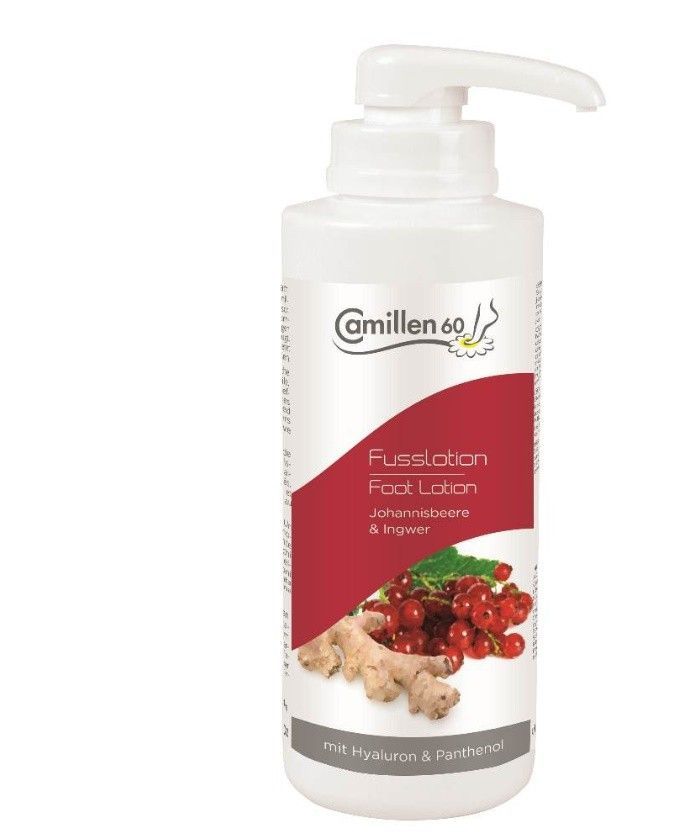Camillen 60 - FUSSLOTION JOHANNISBEERE & INGWER 500ml - mit Spender Neue Flasche mit integrierter Pumpe für die komfortable Anwendung in der Kabine. Besonders fruchtig-frischer Duft von Johannisbeeren zusammen mit leicht wärmend-anregendem Ingwerextrakt.