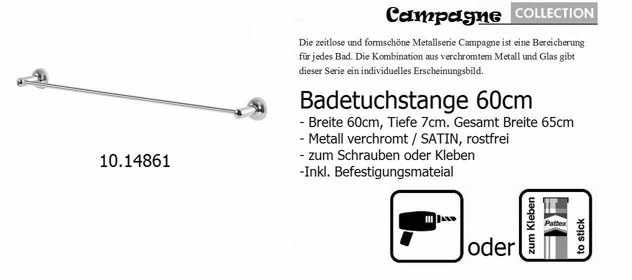 Campagne Satin Badtuchstange Handtuchhalter 60cm. Matt Gebürstet