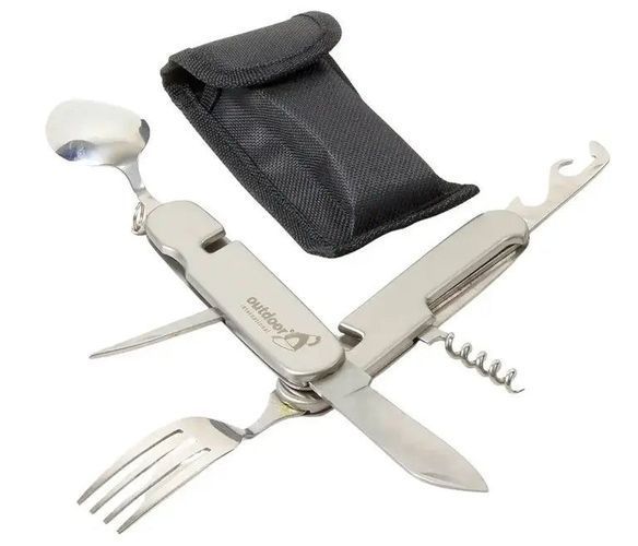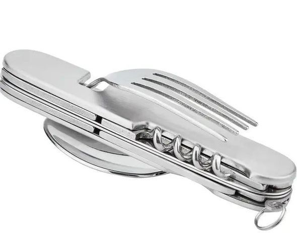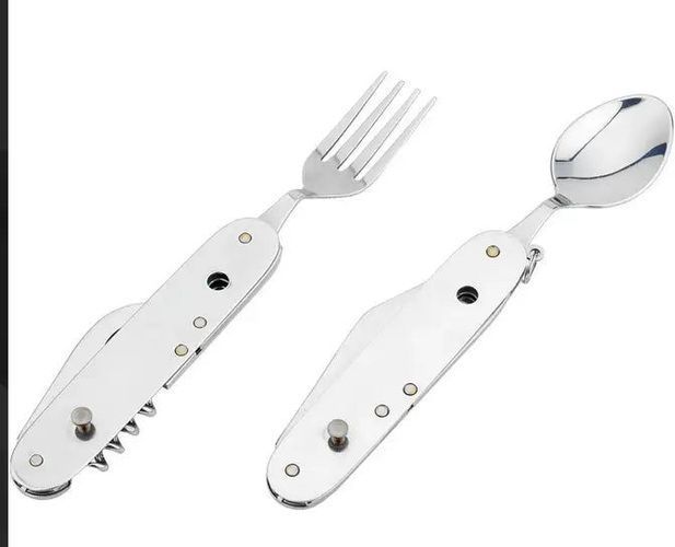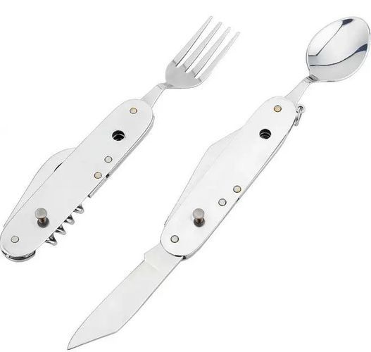Camping Besteck im Taschenmesser Format klein leicht praktisch. Messer Gabel Löffel