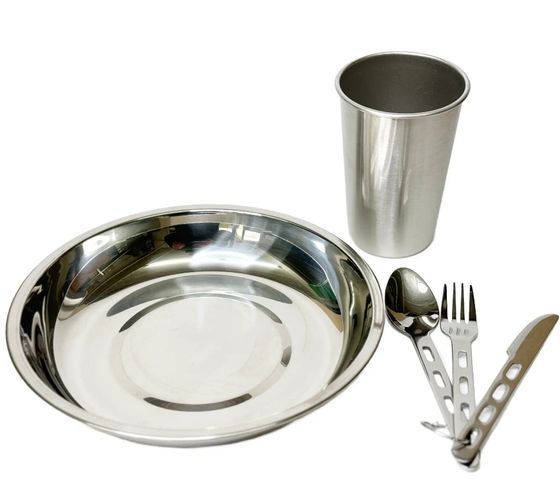 Camping Essbesteck Becher tiefer Teller 22 cm Besteck Edelstahl